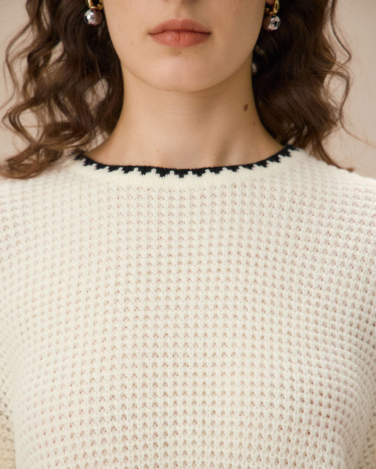 Ophélie Süslenmiş Kablo Örgülü Kısa Tiftik Kazak
