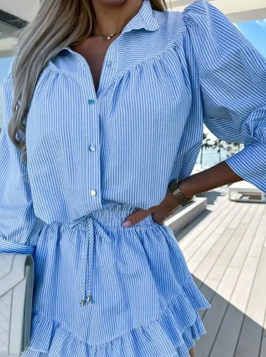 Çizgili Gömlek ve Fırfır Etekli Şort Takım