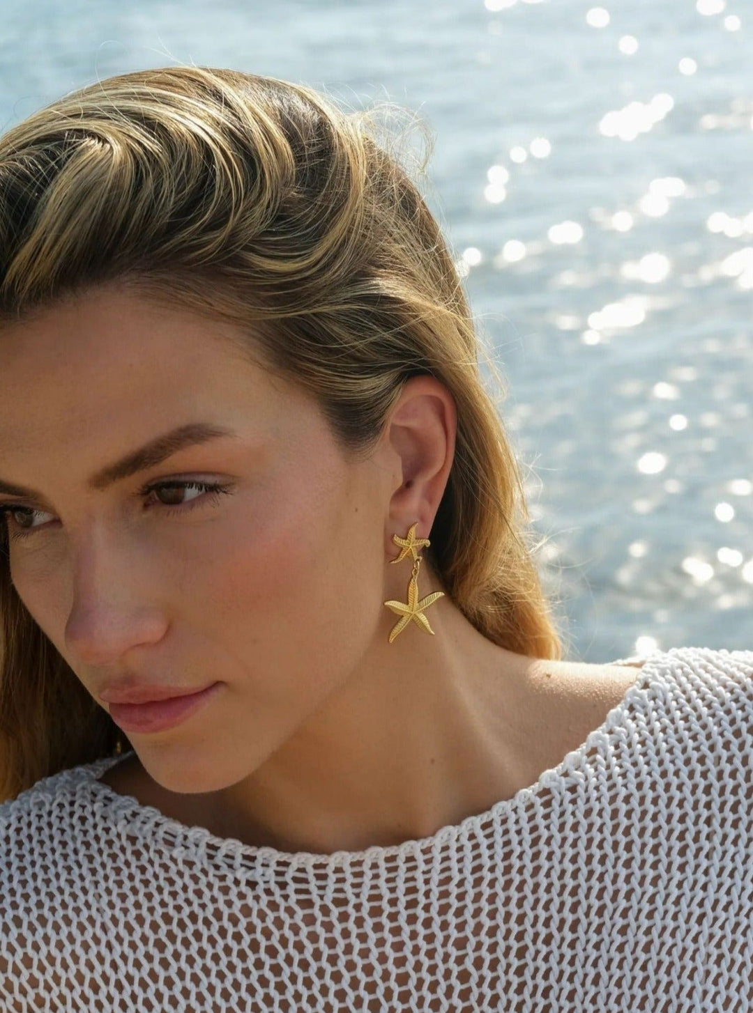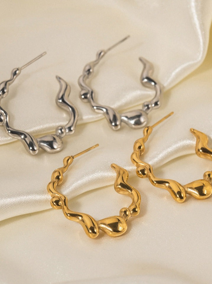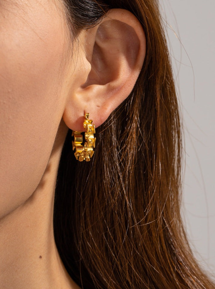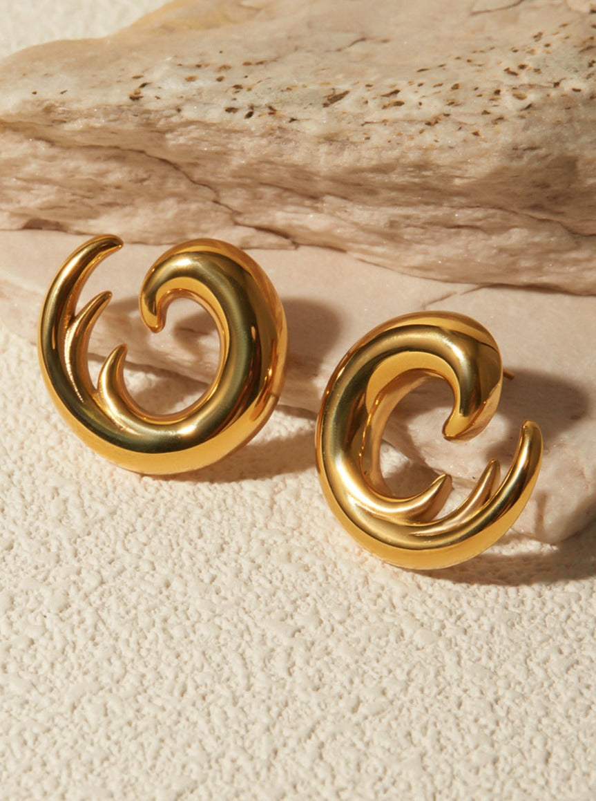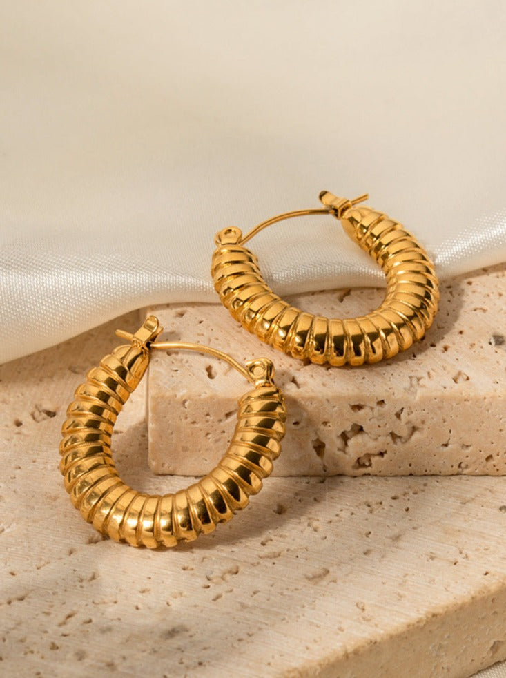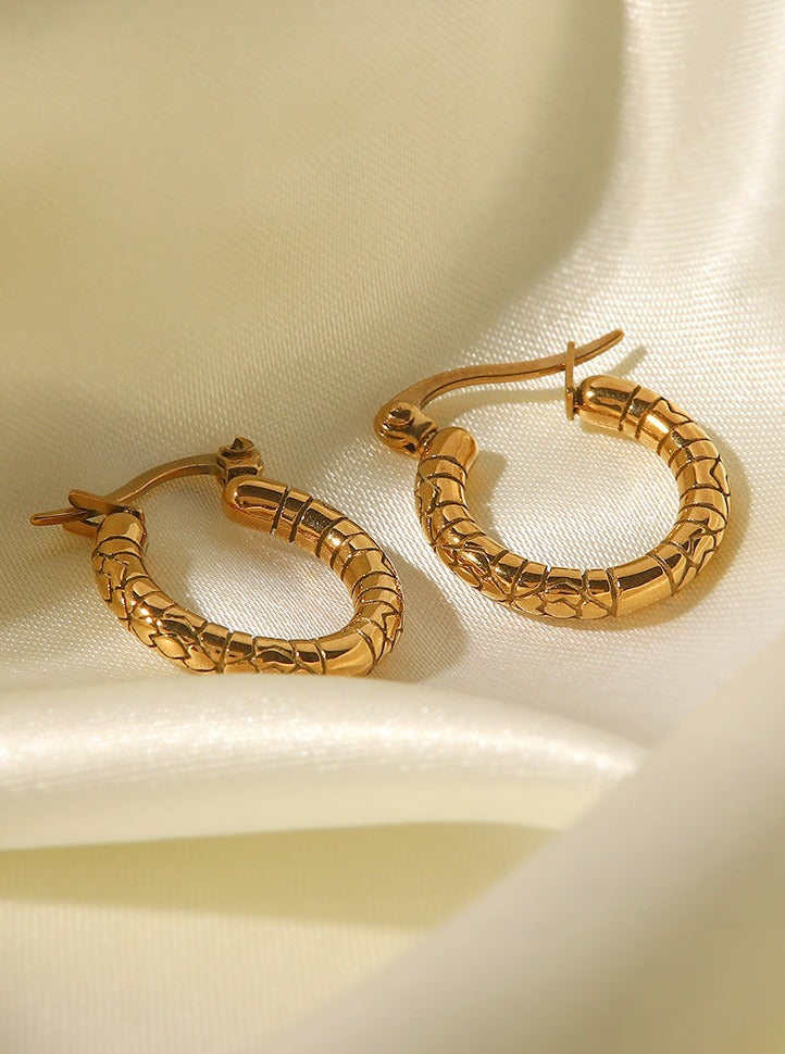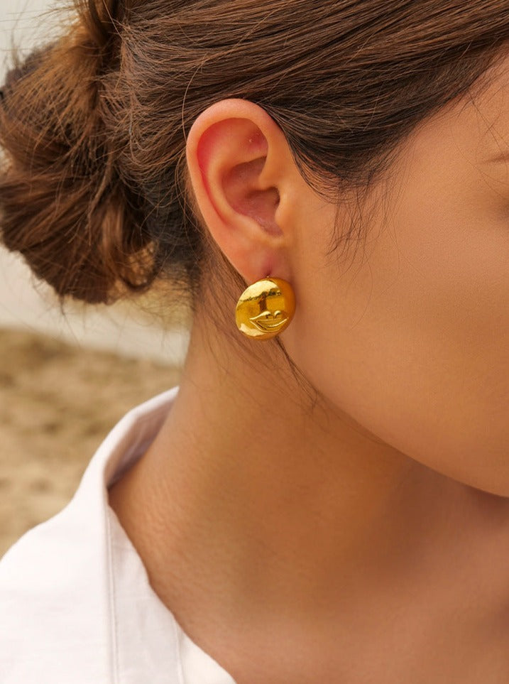 Altın Kaplama Titanyum Çelik Daire Dokulu Küpe