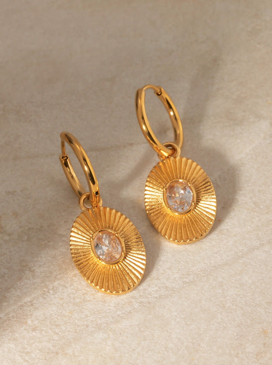 Beyaz Pırlanta Taşlı 18 Ayar Altın Kaplama Oval Küpe