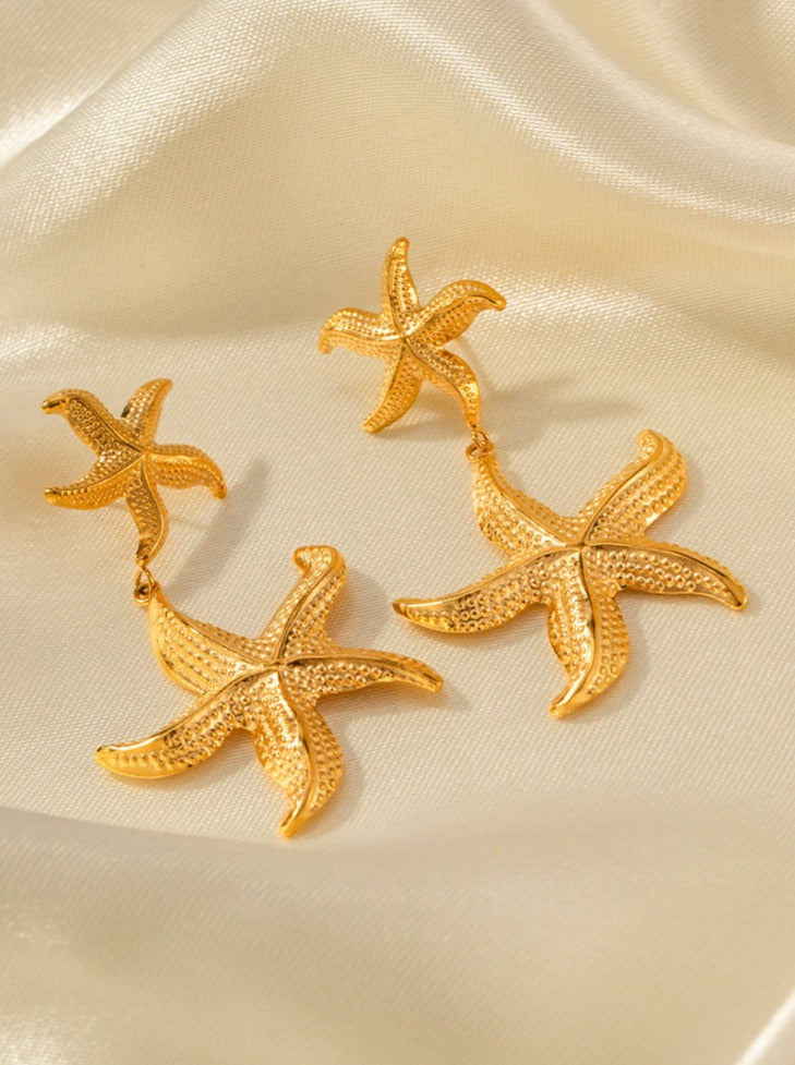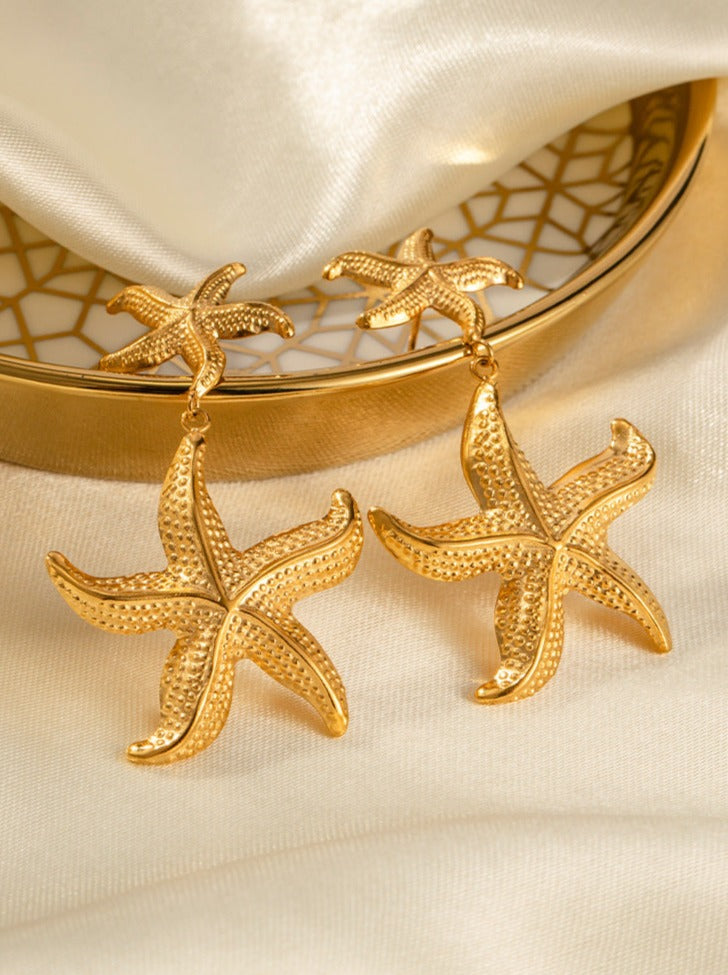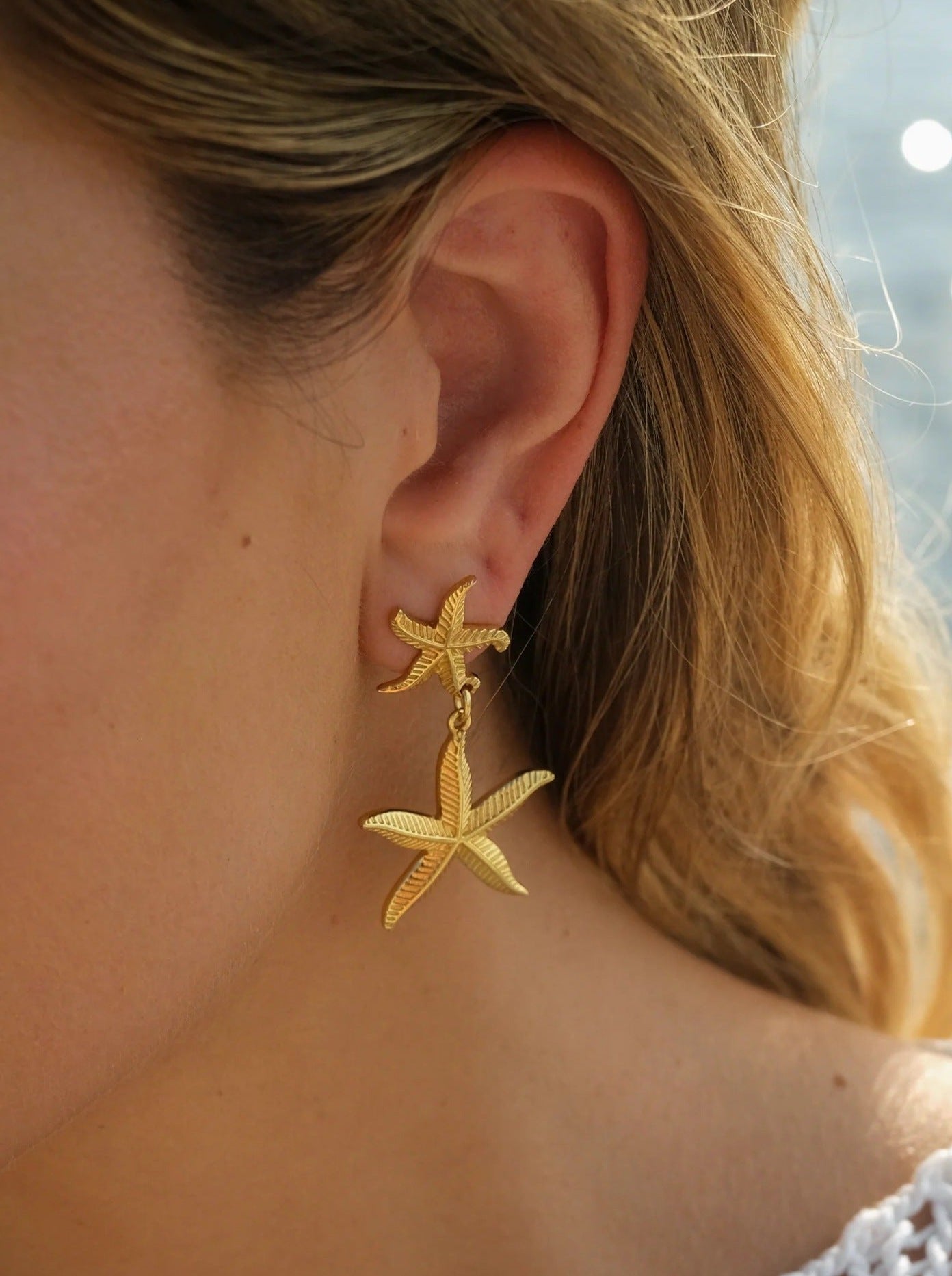 18 Ayar Altın Kaplama Denizyıldızı Küpe