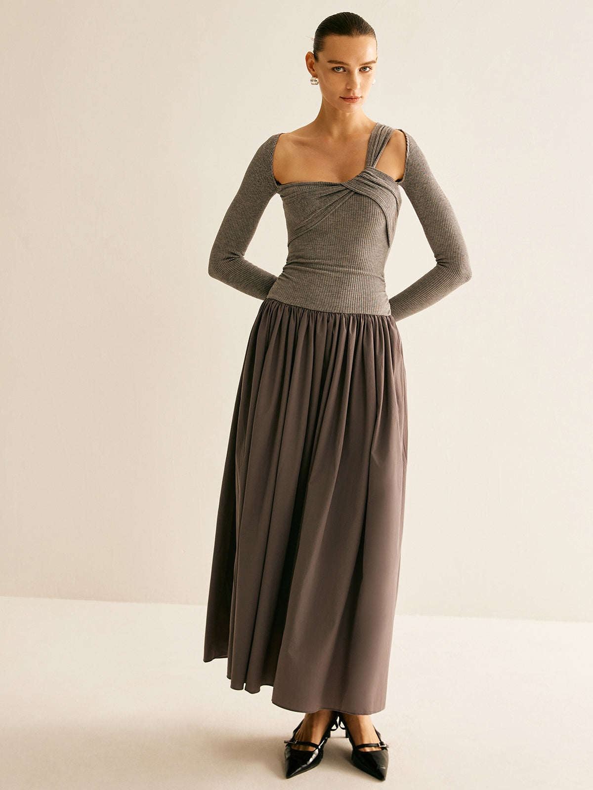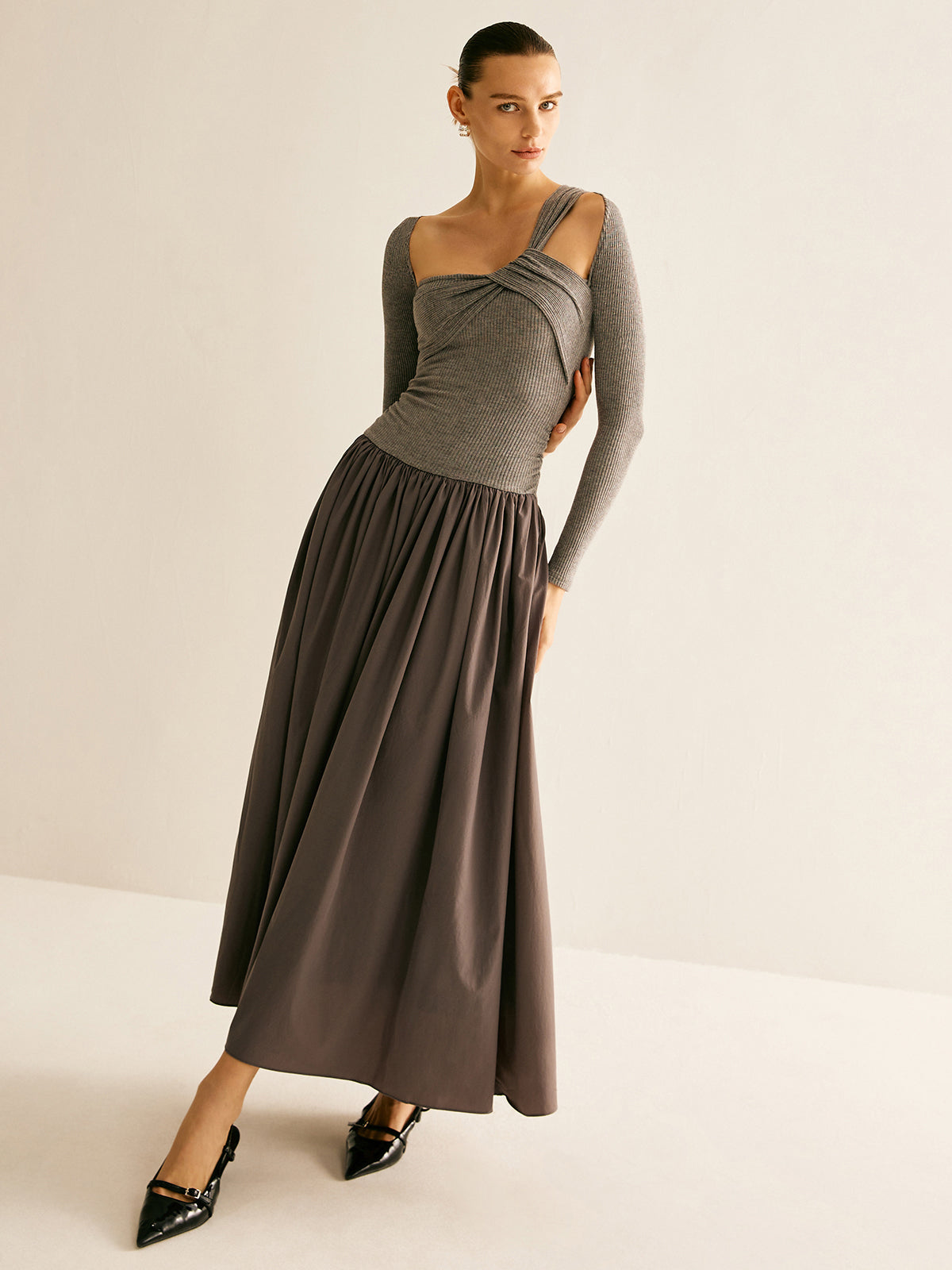 Asimetrik Şık Pileli Elbise