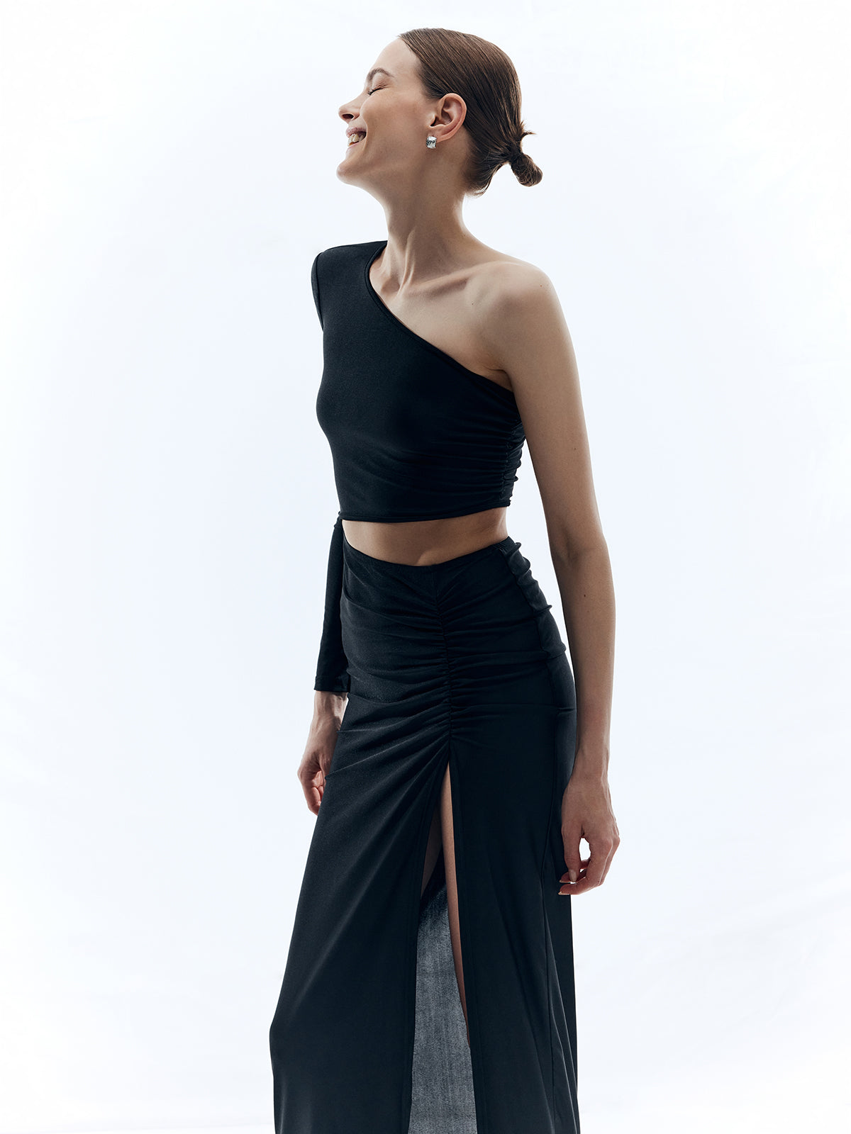 Asimetrik Kesimli Yırtmaçlı Elbise