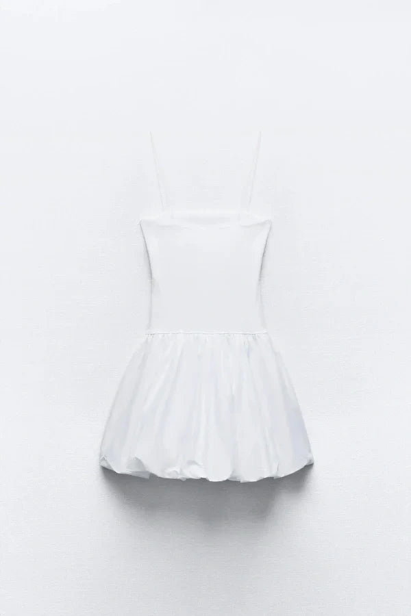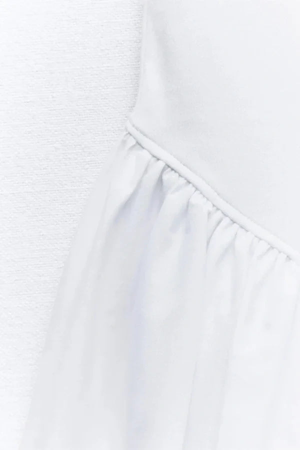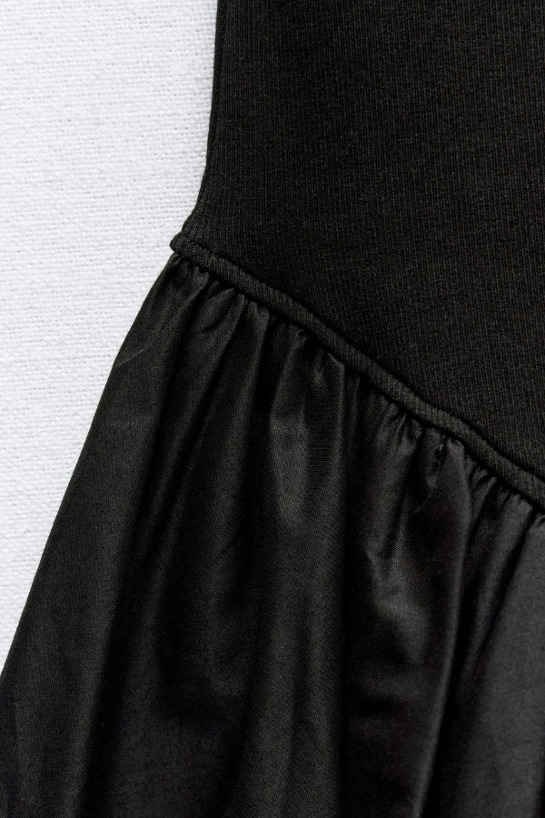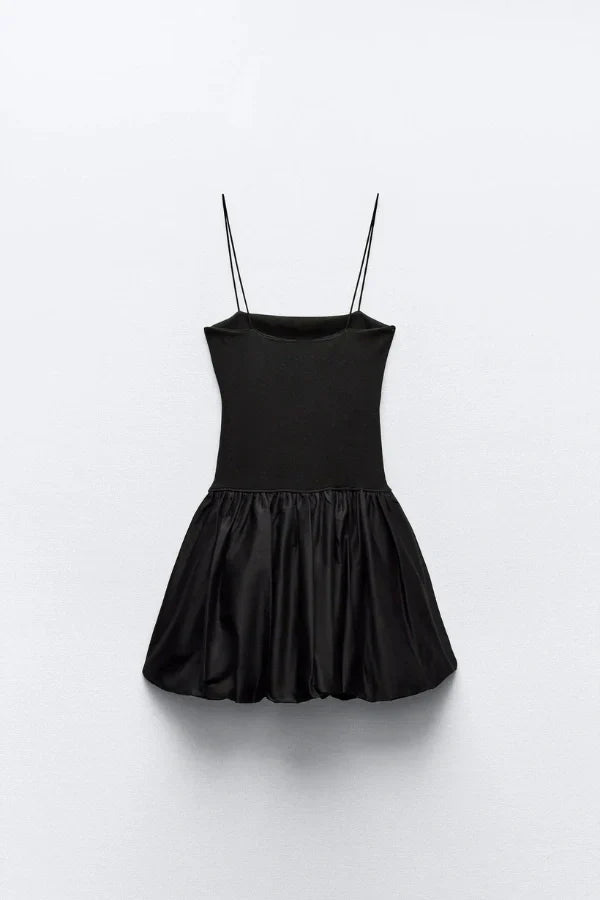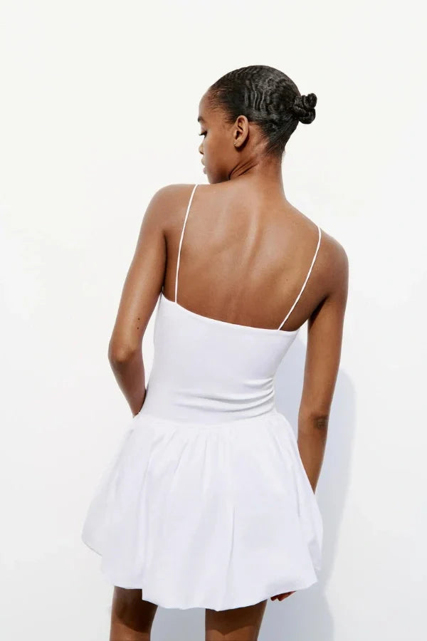 Kontrast Büstiyerli ve Fiyonklu Zarif Omuzları Açık Mini Elbise