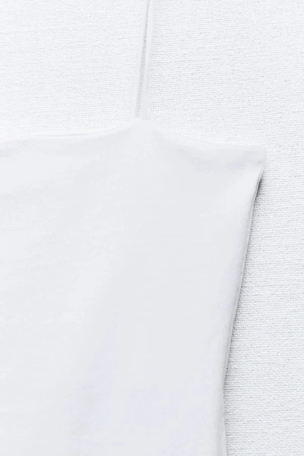 Inès Beyaz Kristal Süslemeli Midi Elbise