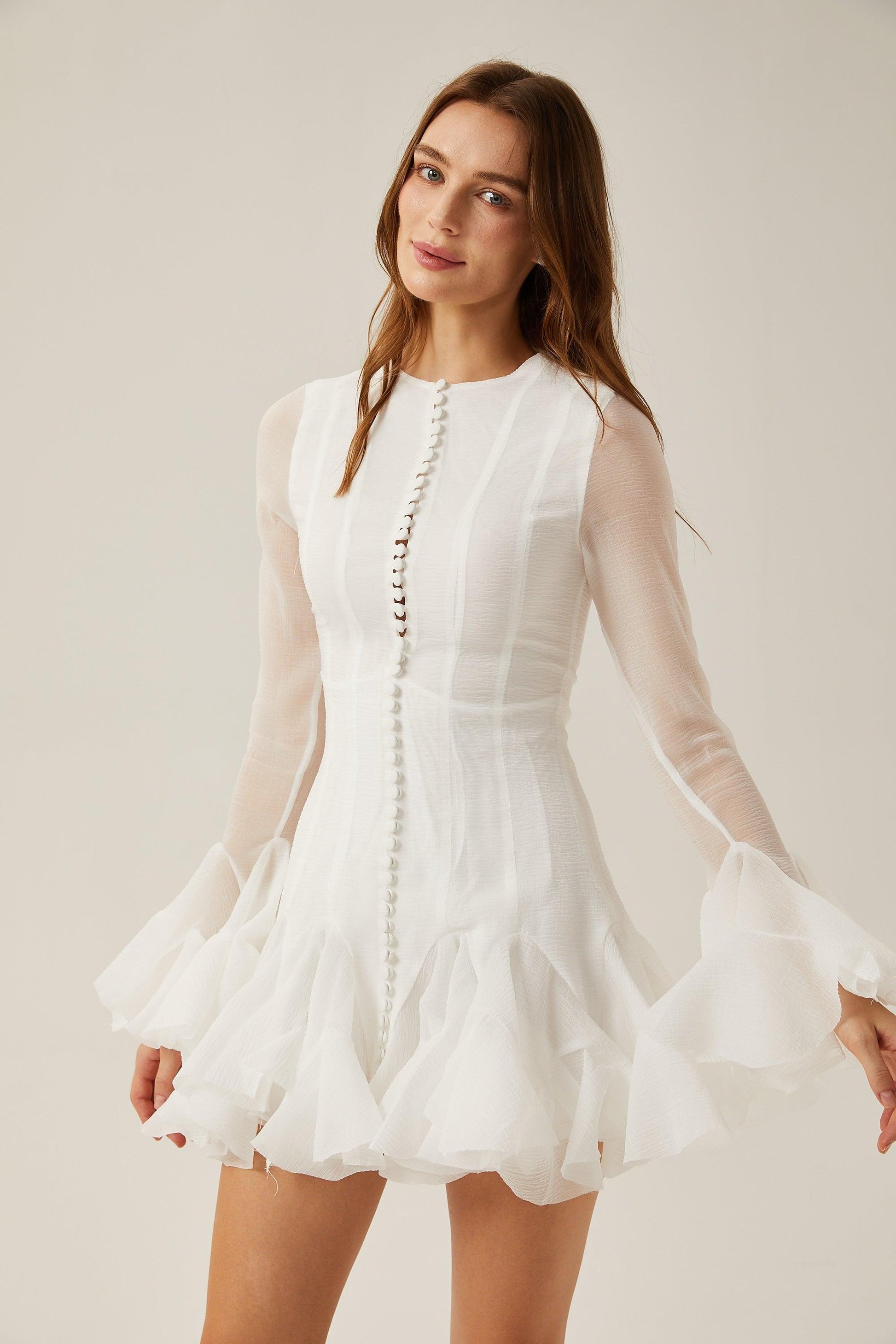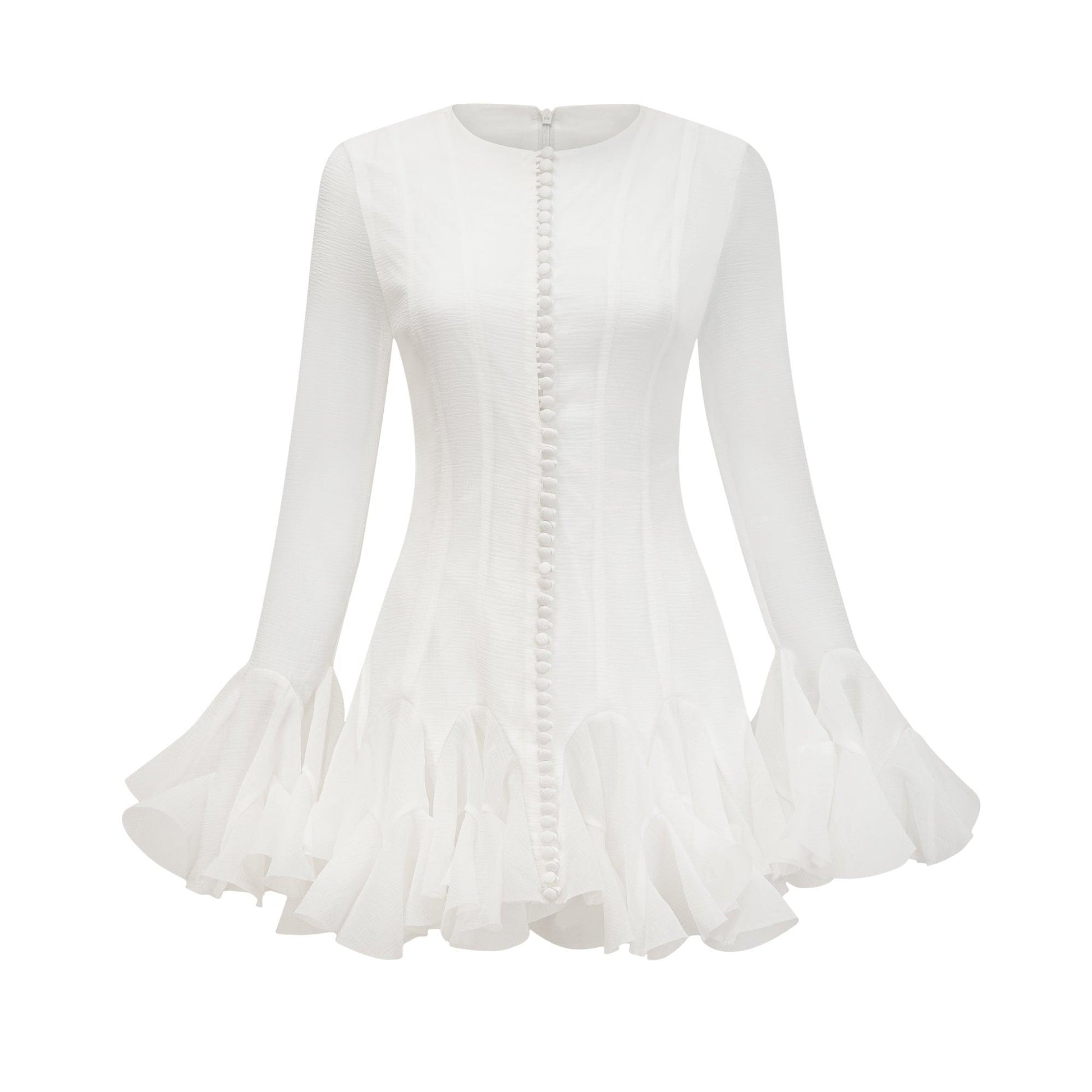 Aurora Fırfır Detaylı Beyaz Mini Elbise