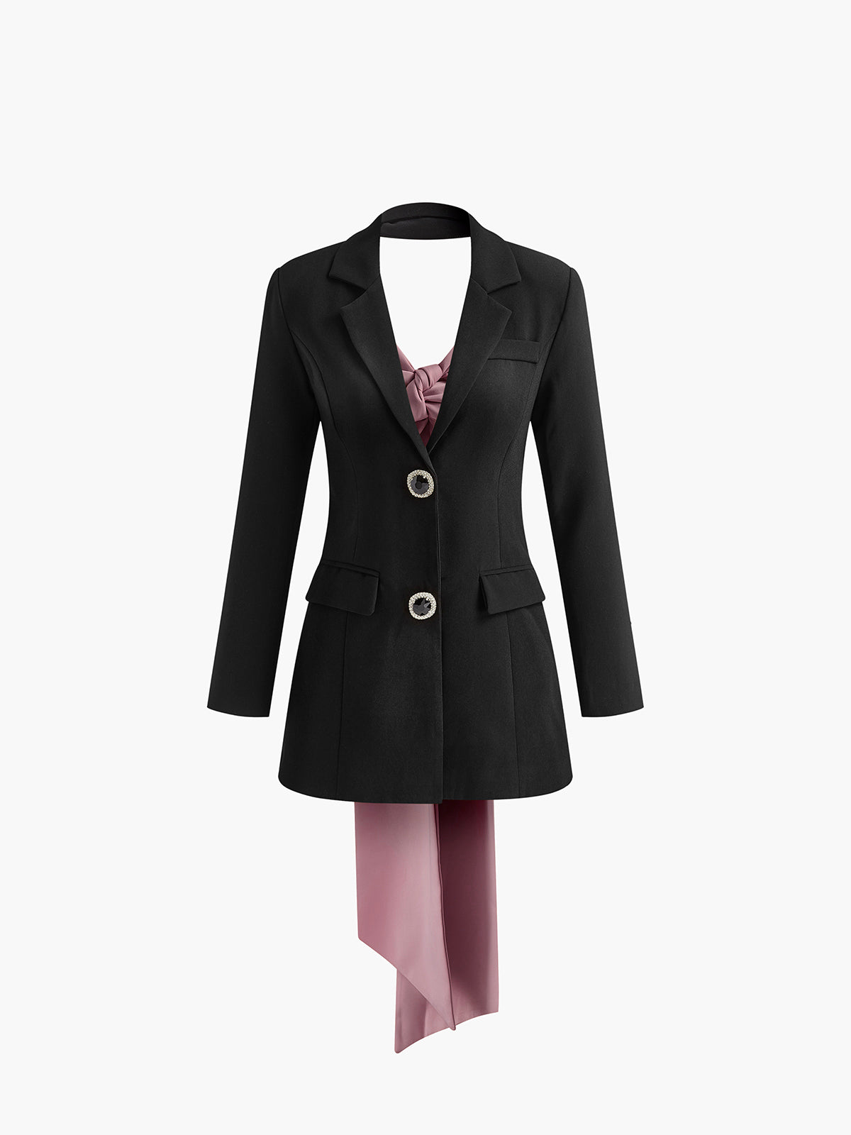 Sırt Açık Düğme Fiyonk Kısa Elbise