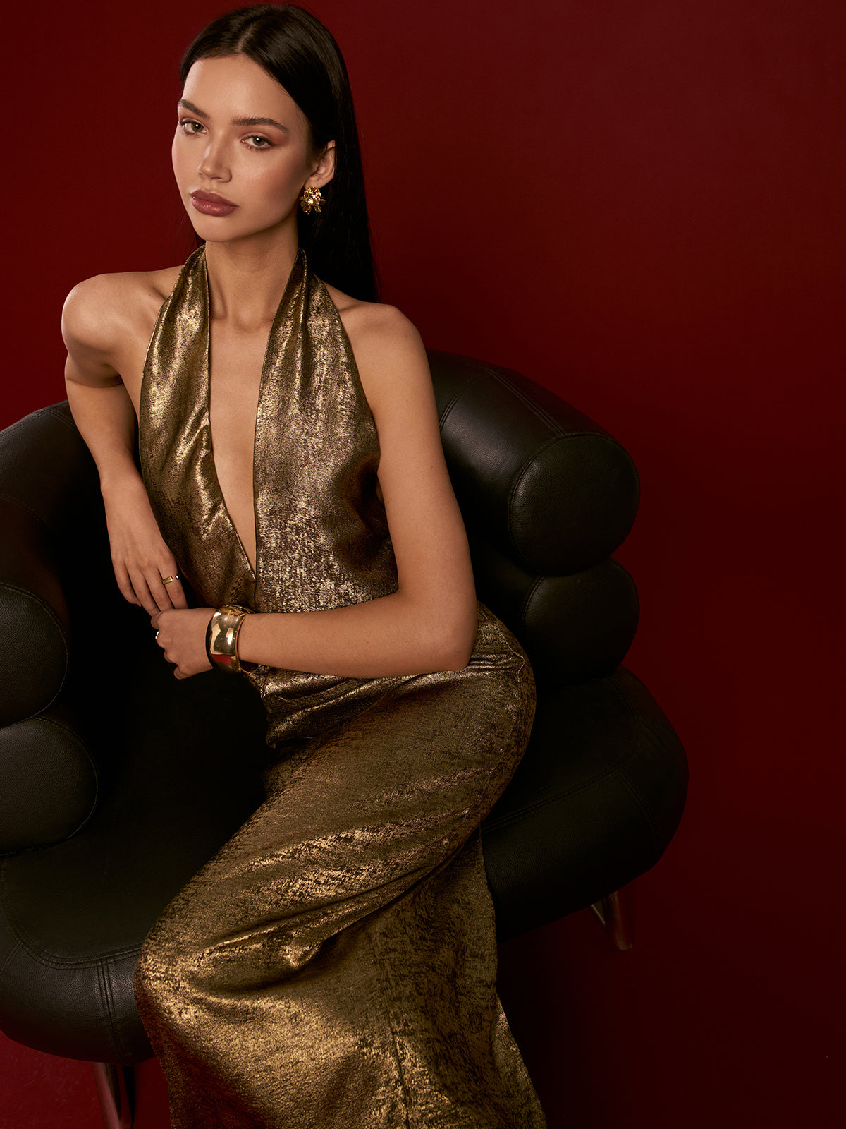 Elbiselerimiz, çağdaş tasarım unsurlarıyla klasik güzellik kavramını yeniden tanımlıyor. Zarif, vücuda oturan siluet, zarif bir görünüm yaratarak sizi gecenin parlayan yıldızı yapar. İster bir galaya, ister bir düğüne veya resmi bir akşam yemeğine katılın, bu elbise zahmetsizce göz alıcı bir görünüm için tercihiniz olacak.