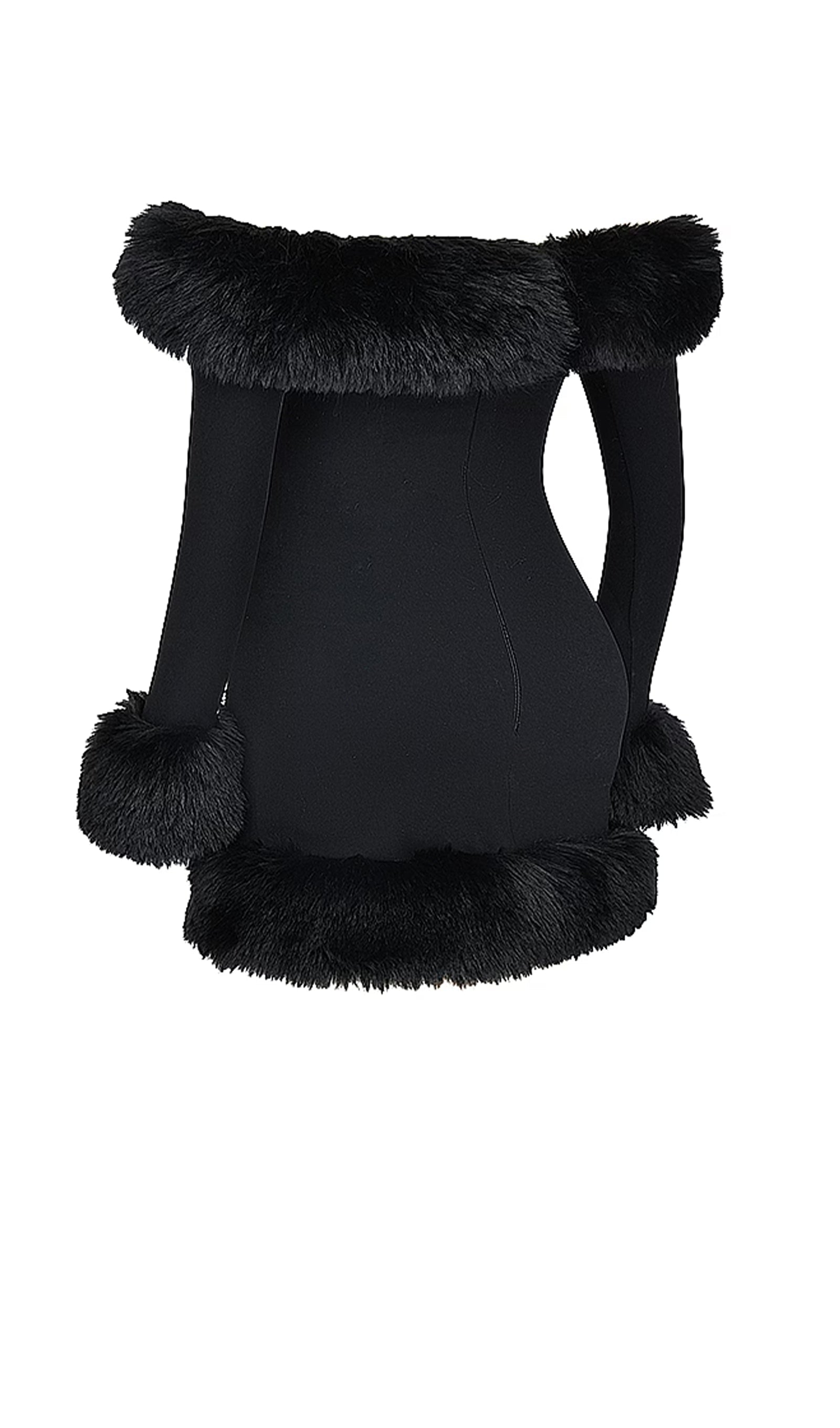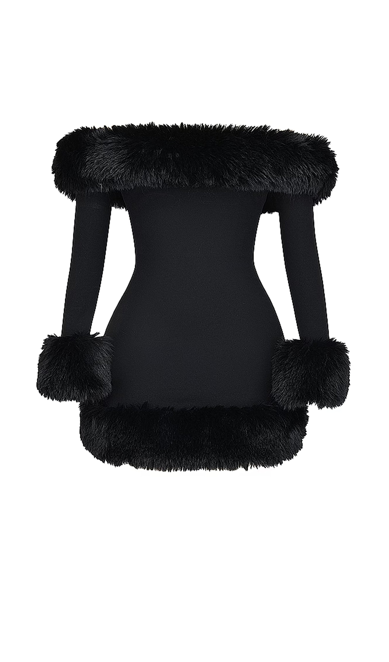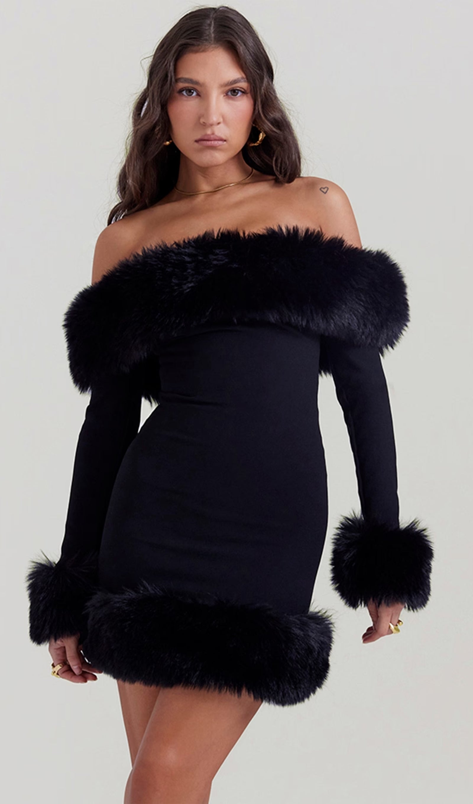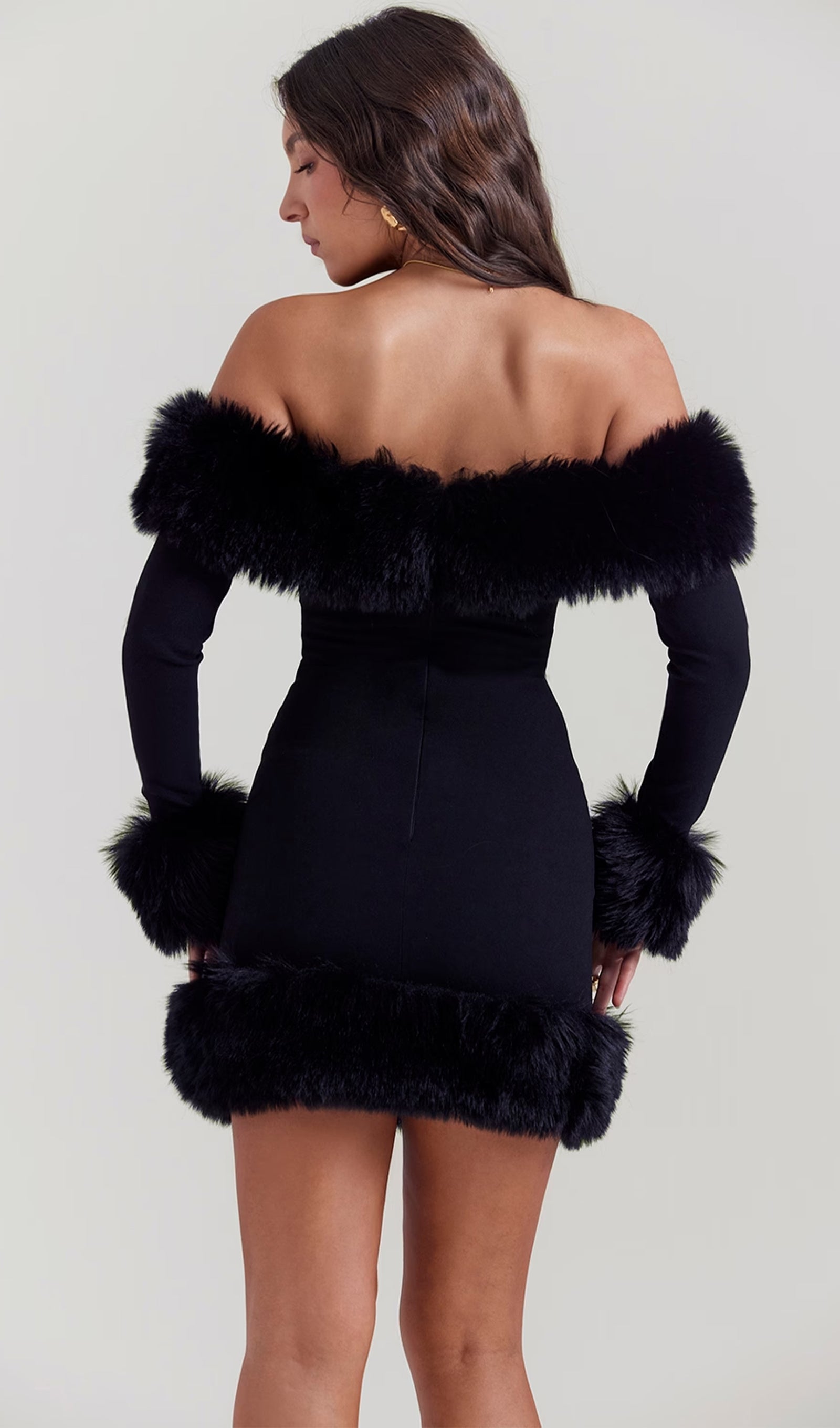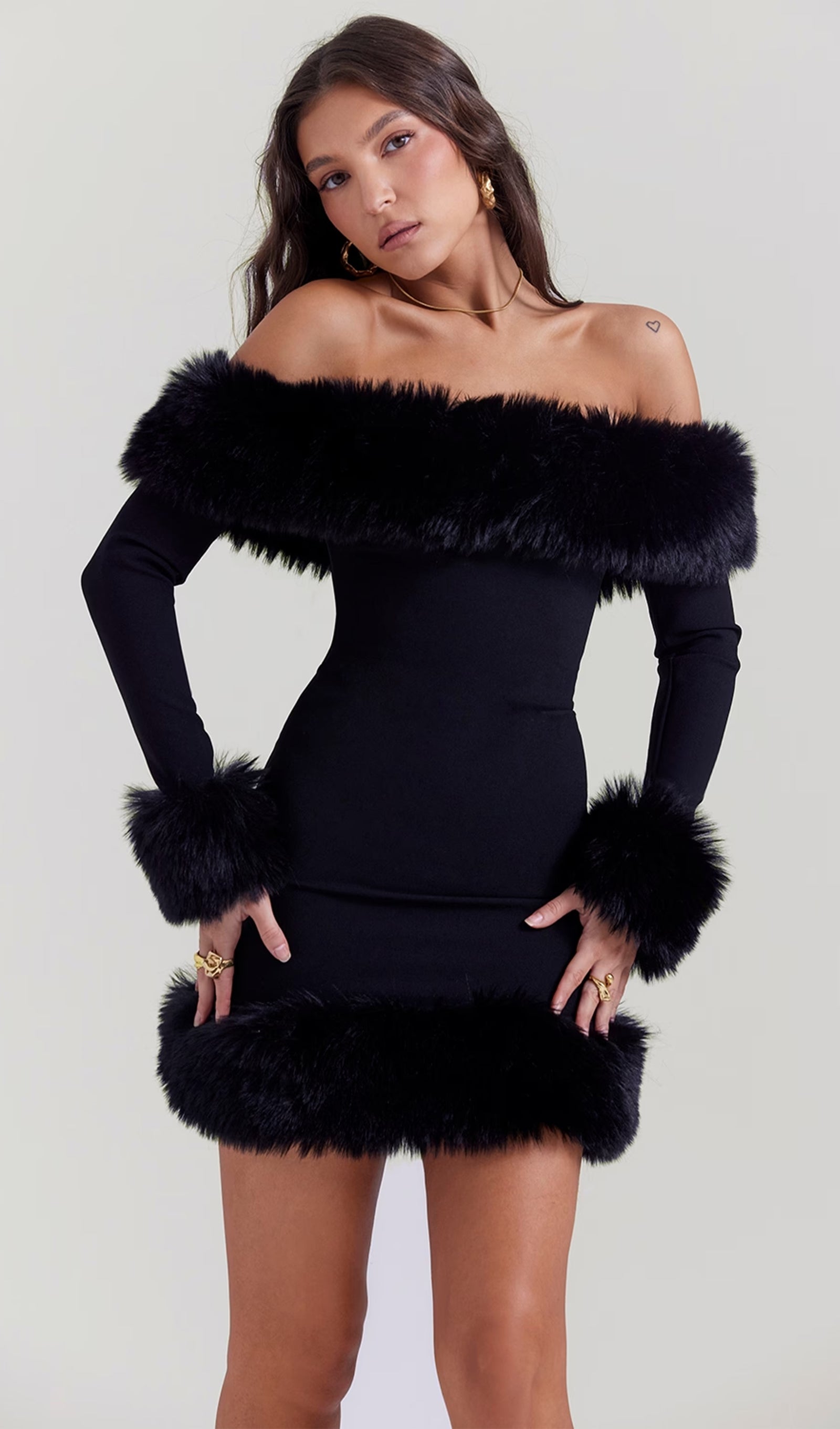 Madeleine Etek Kürk Detay Omuzları Açık Elbise