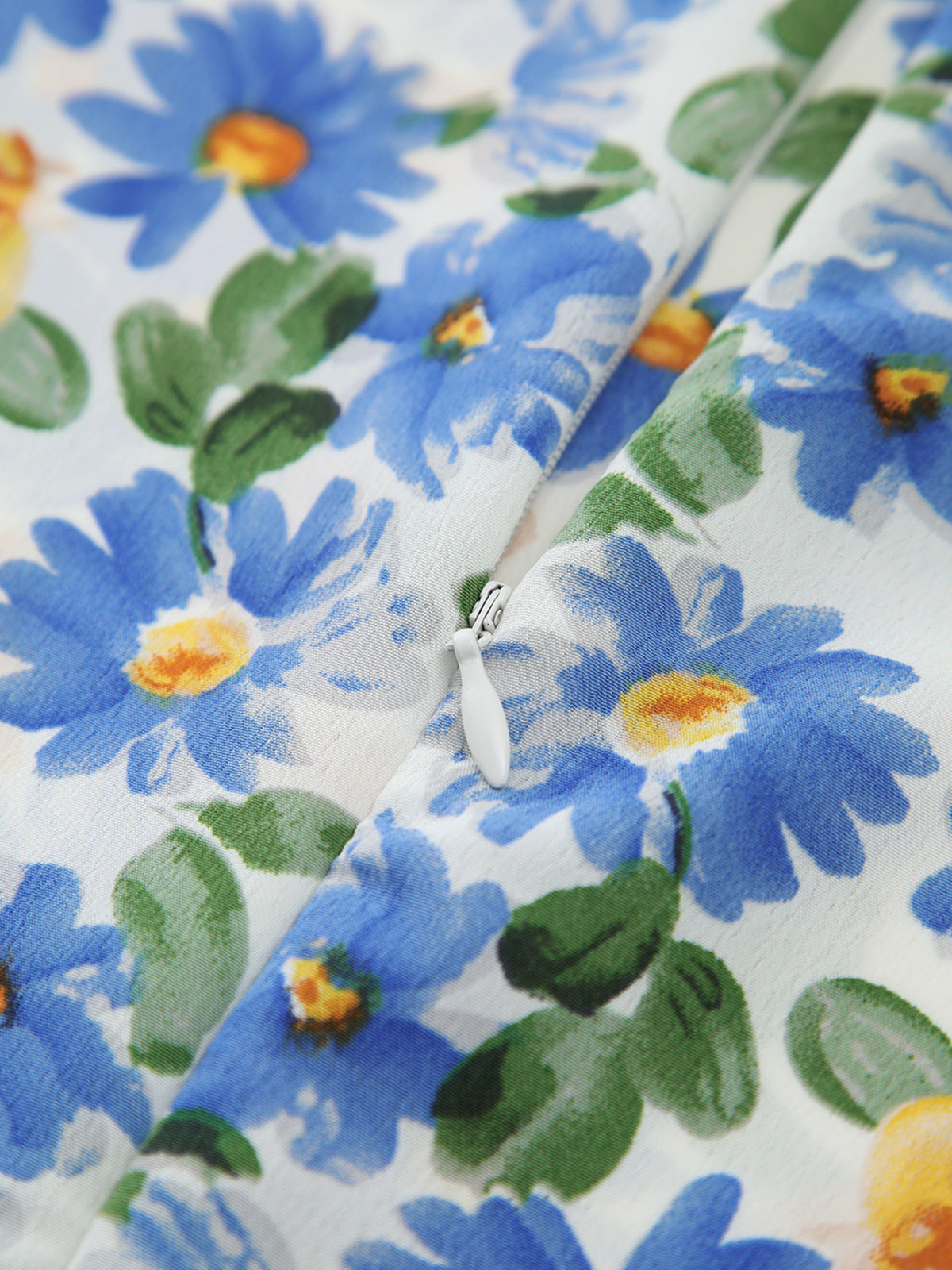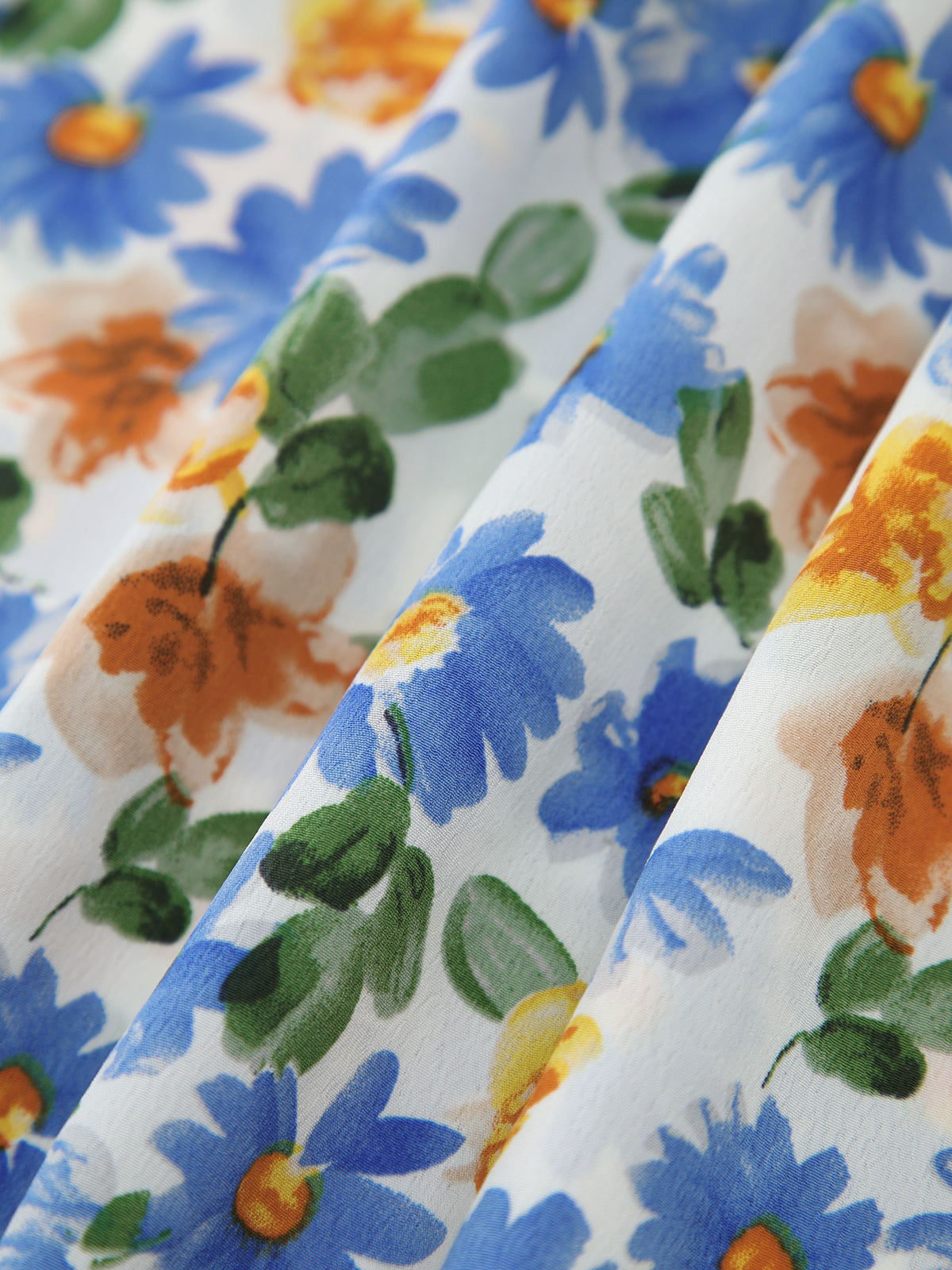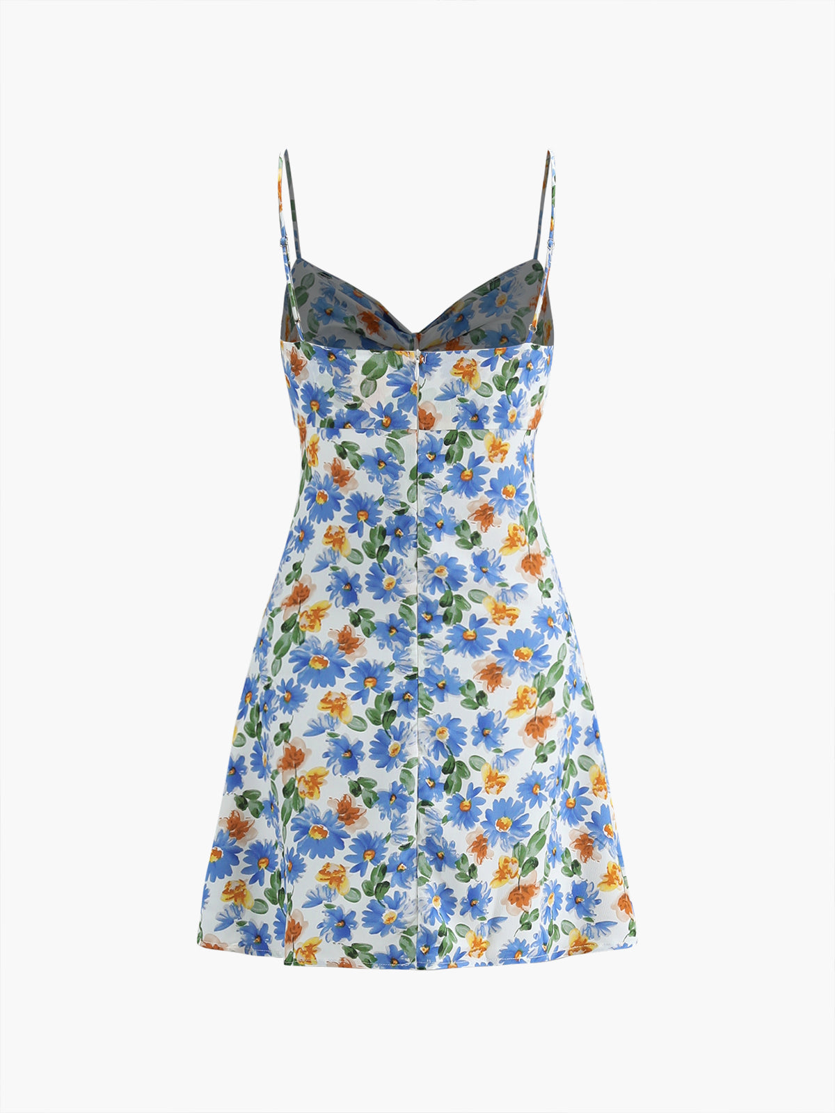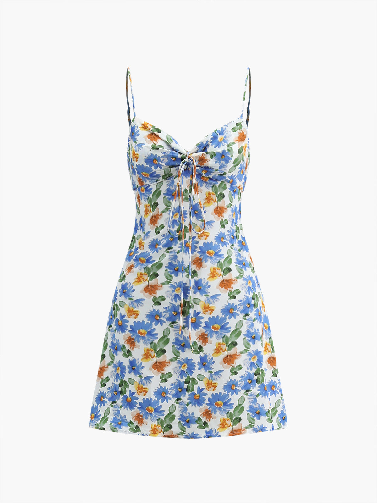 Boho Çiçek Desenli Cami Düğümlü Kısa Elbise