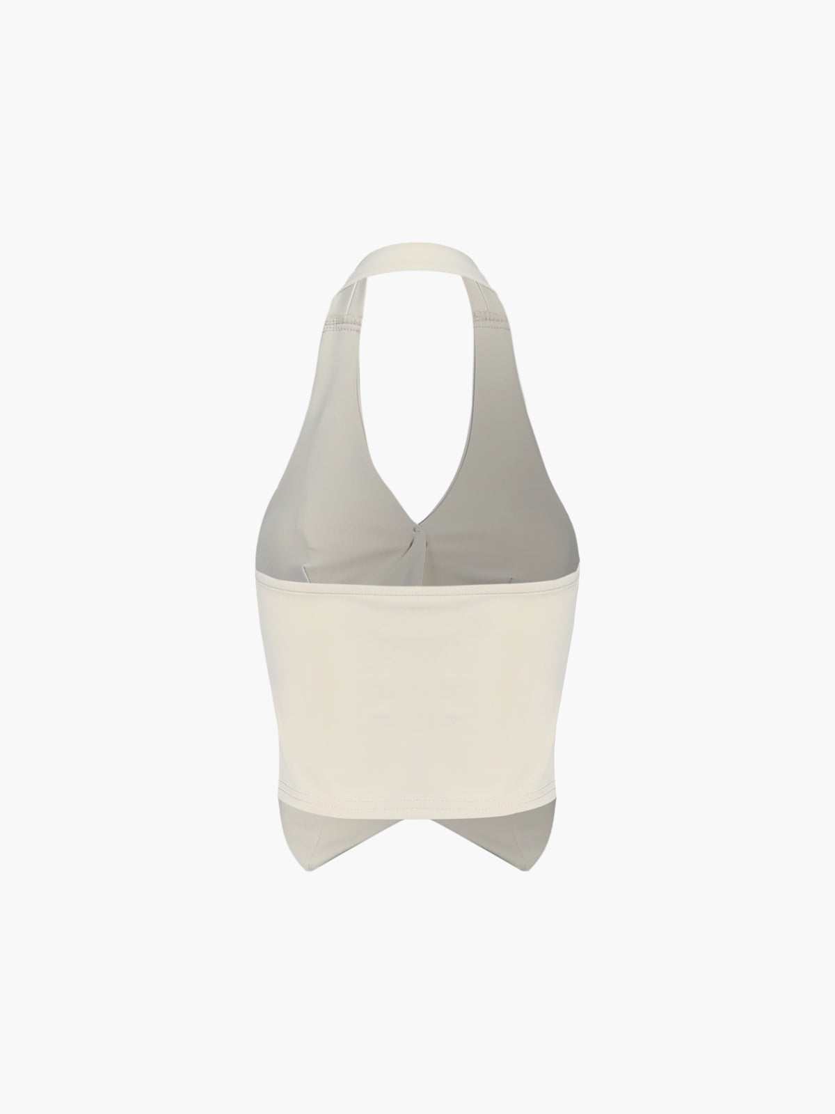 Önü Düğmeli Boyundan Bağlamalı Sırtı Açık Yelek Etekli Takım