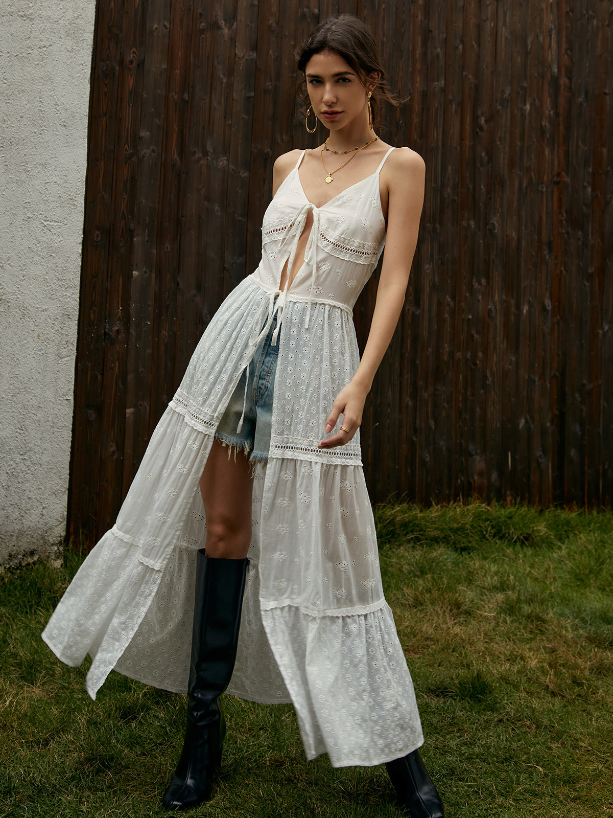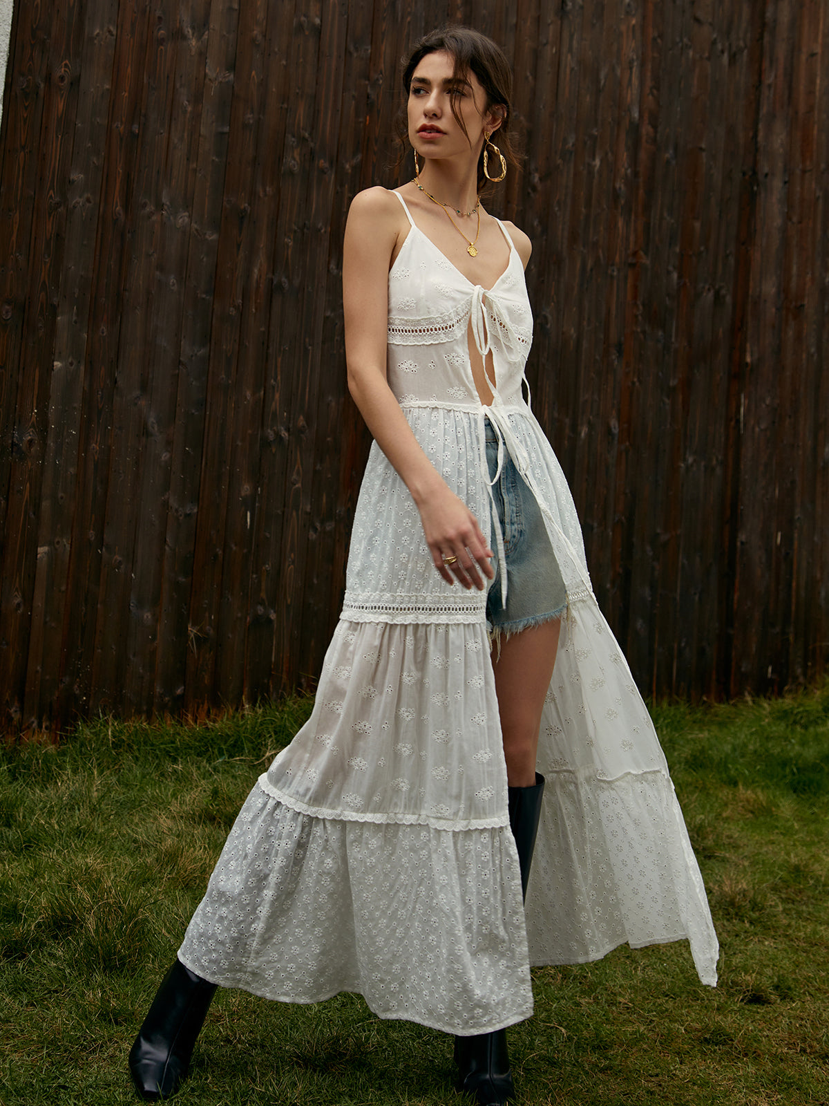 Pamuk Karışımlı Çiçekli Önden Bağlamalı Cami Elbise