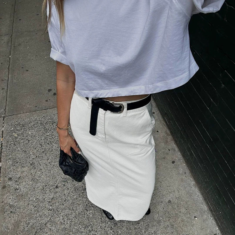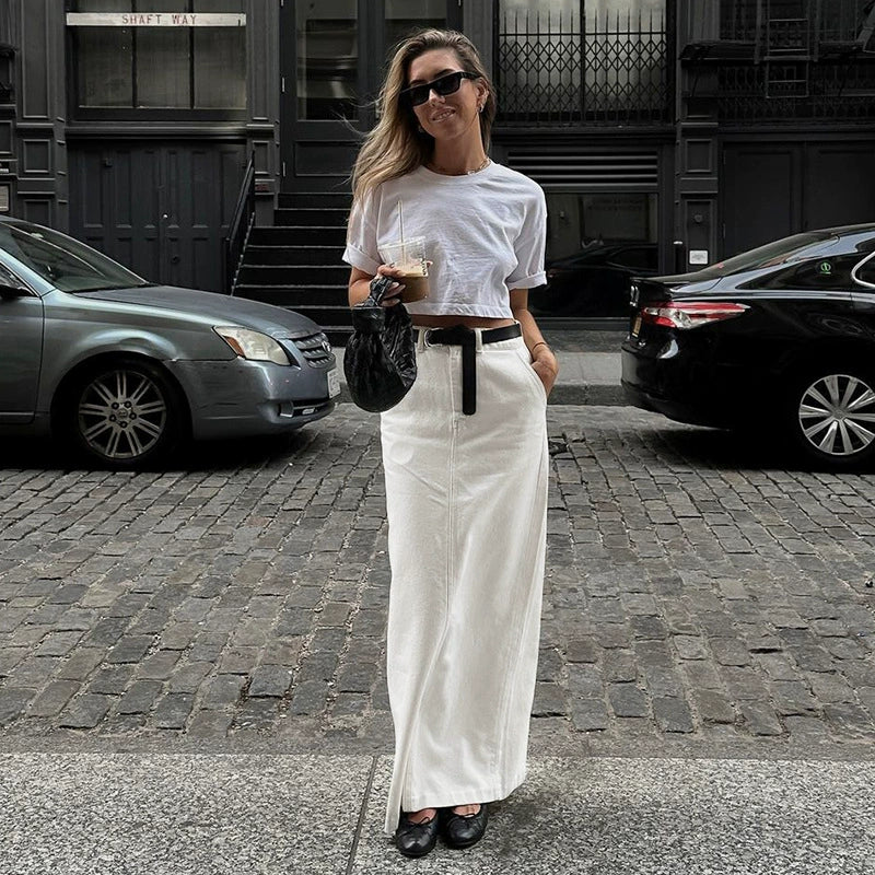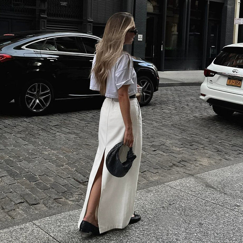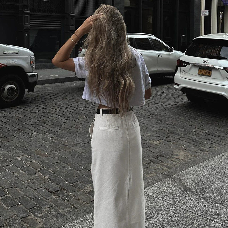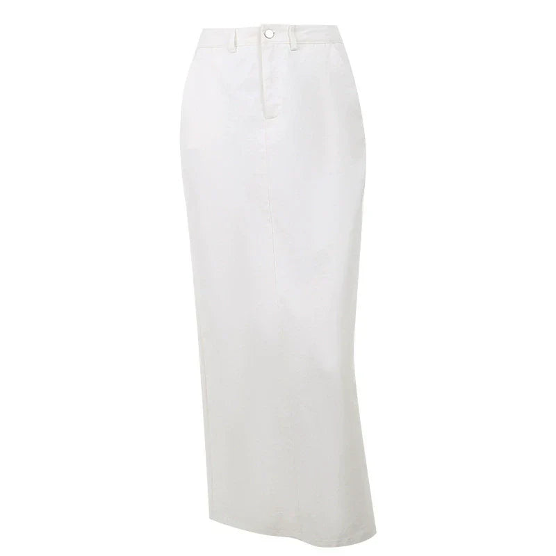 Destin Yırtmaçlı Maksi Etek Beyaz
