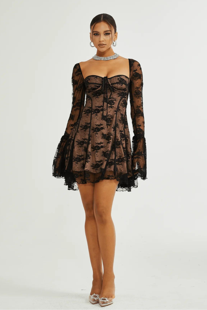 Eleanor Dantelli İspanyol Kol Mini Elbise