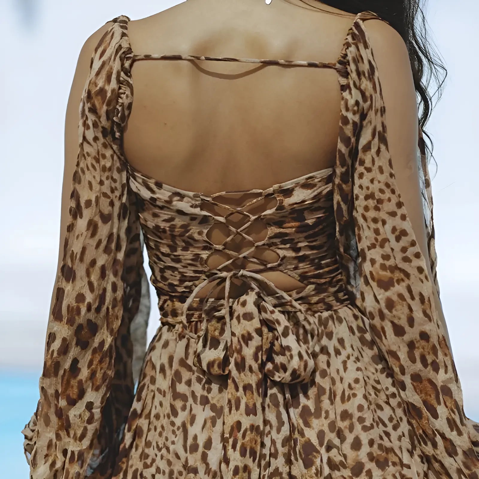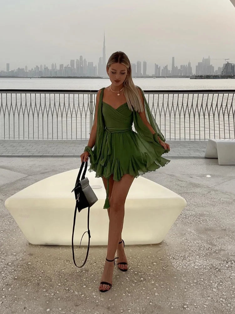 Uzun Kol Detaylı Volanlı Mini Elbise