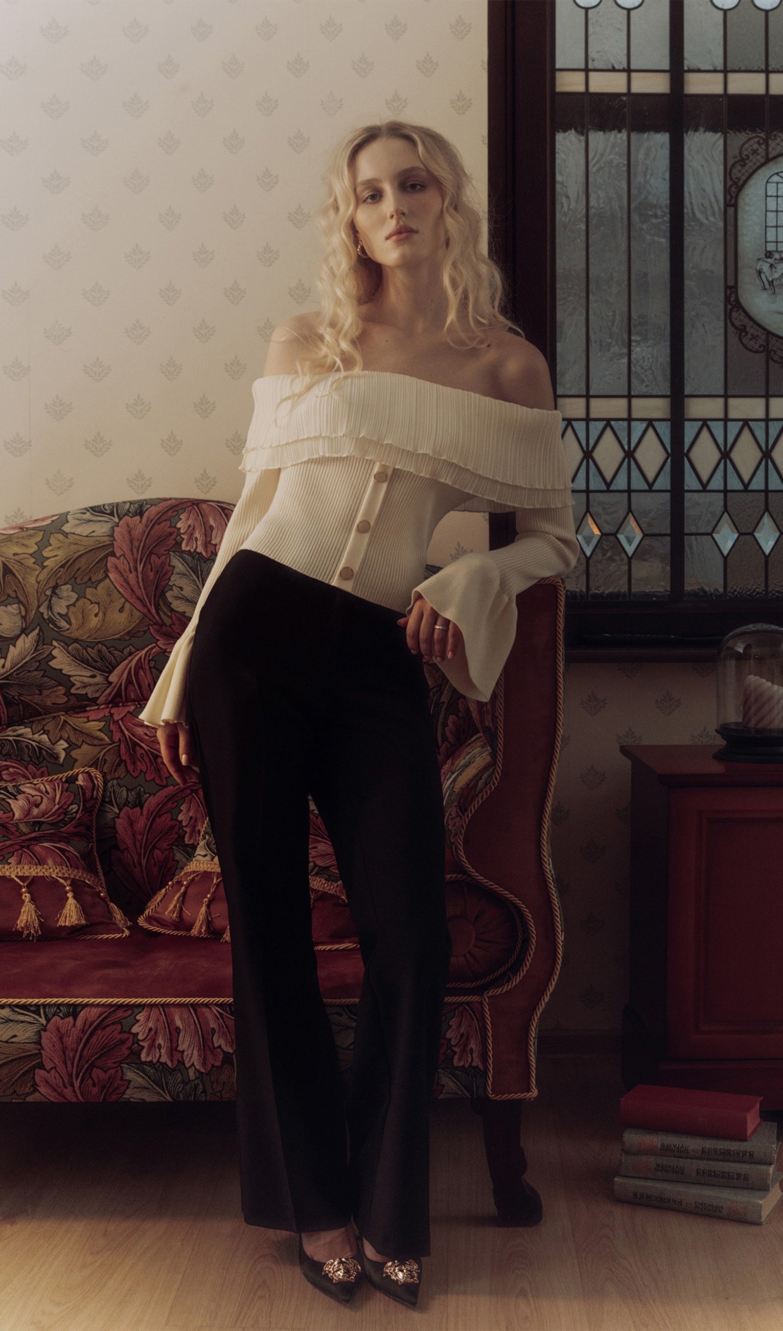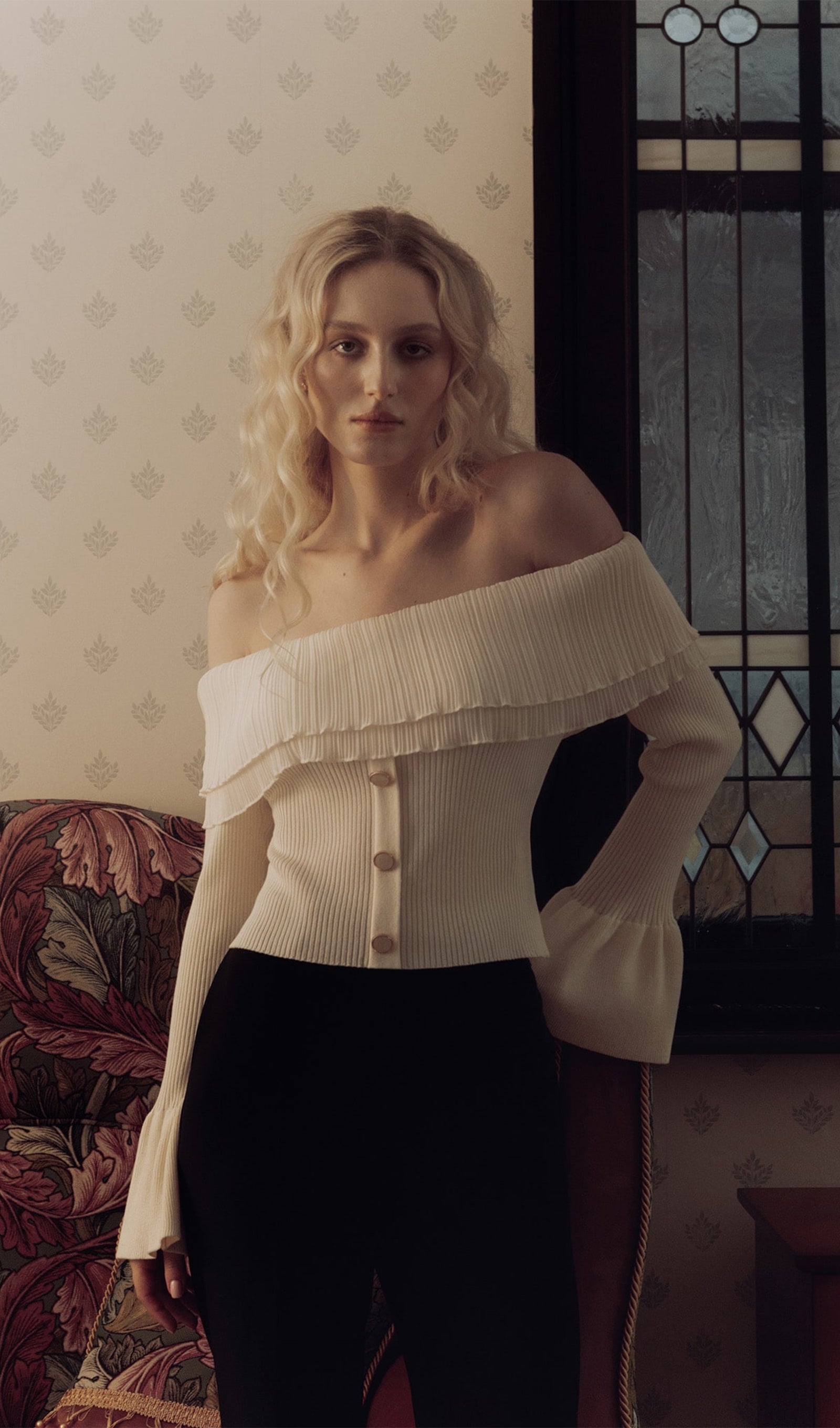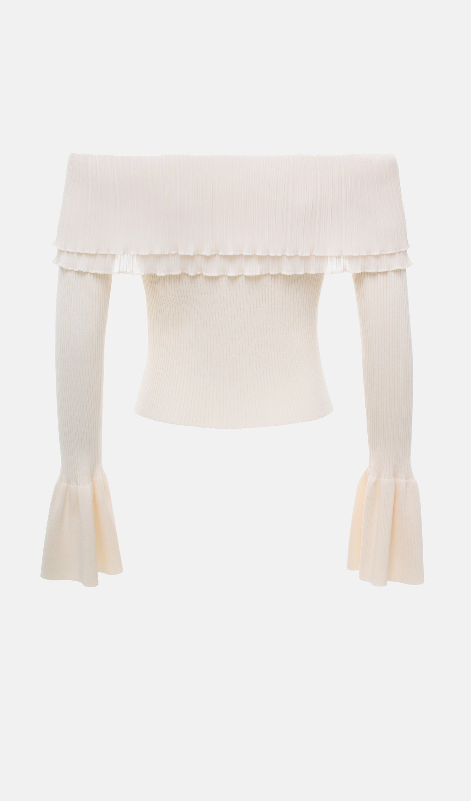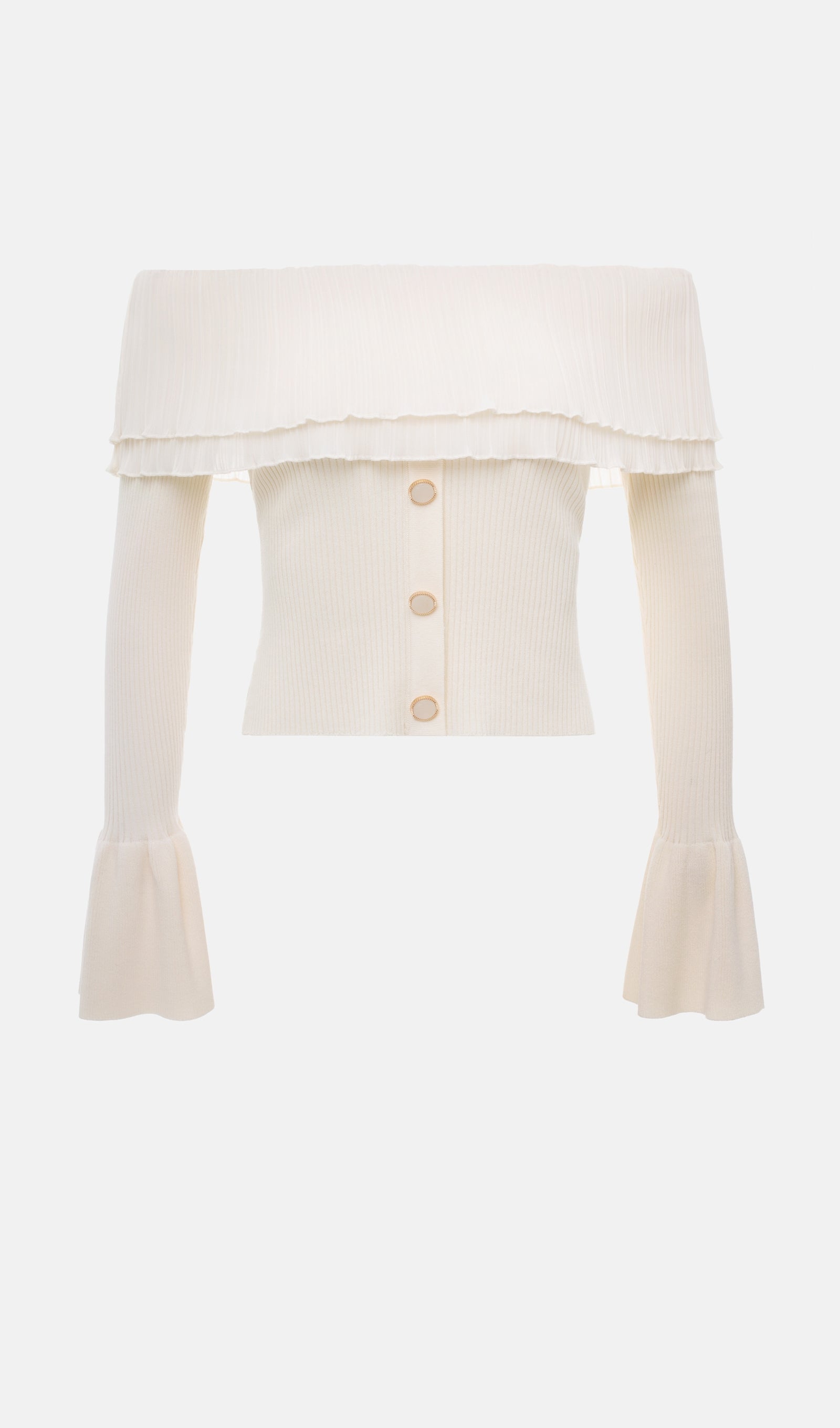 Flier Starplez Fırfır Düğme Detay Üst - Krem