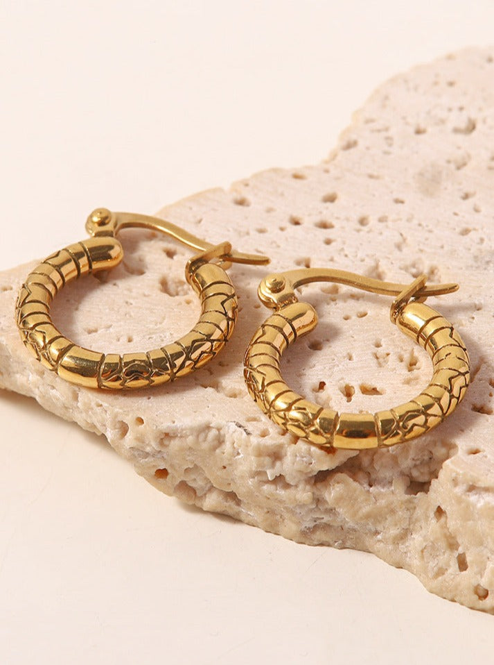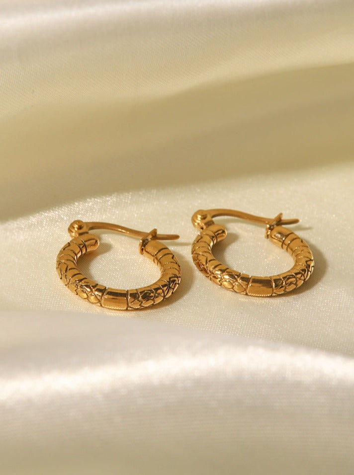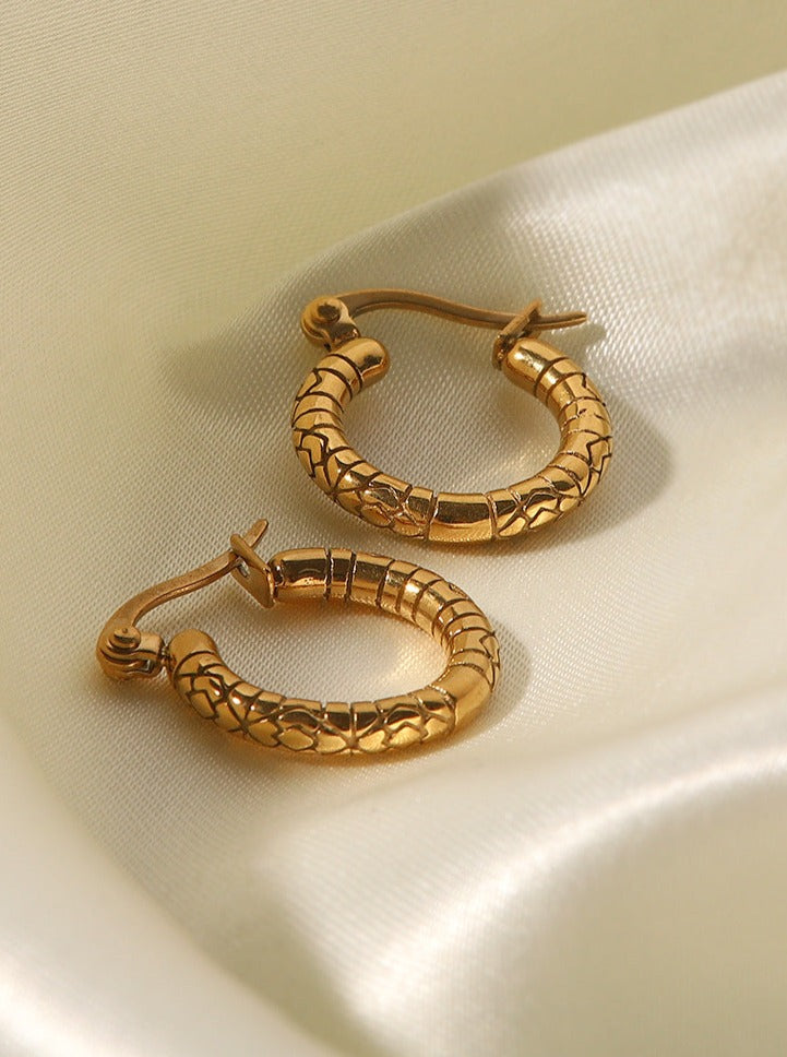Altın Kaplama Titanyum Çelik Daire Dokulu Küpe