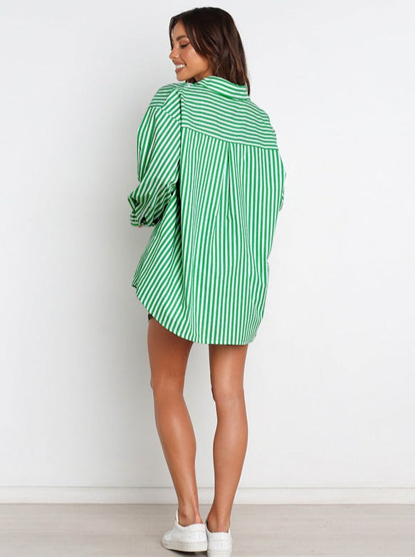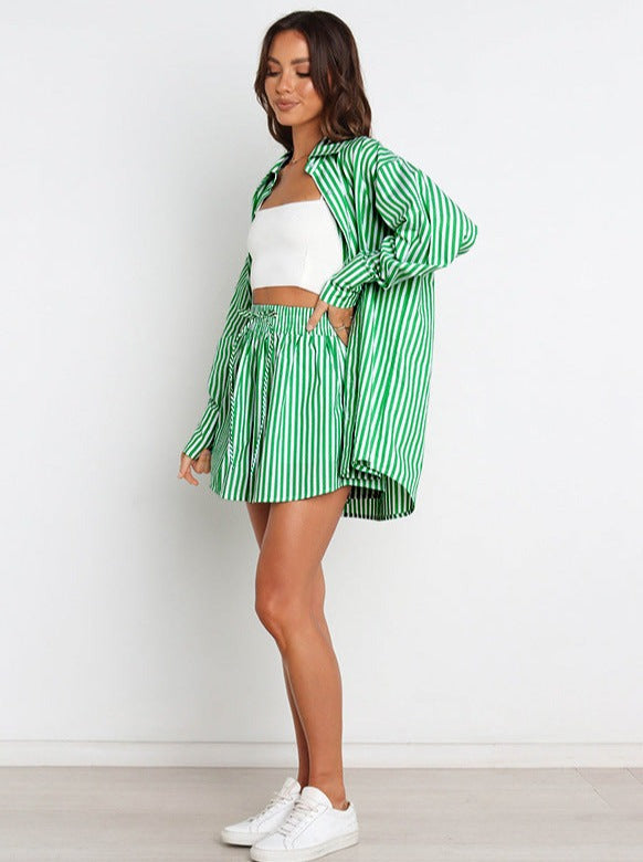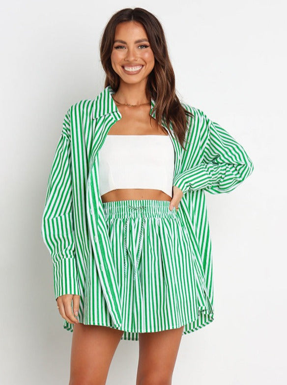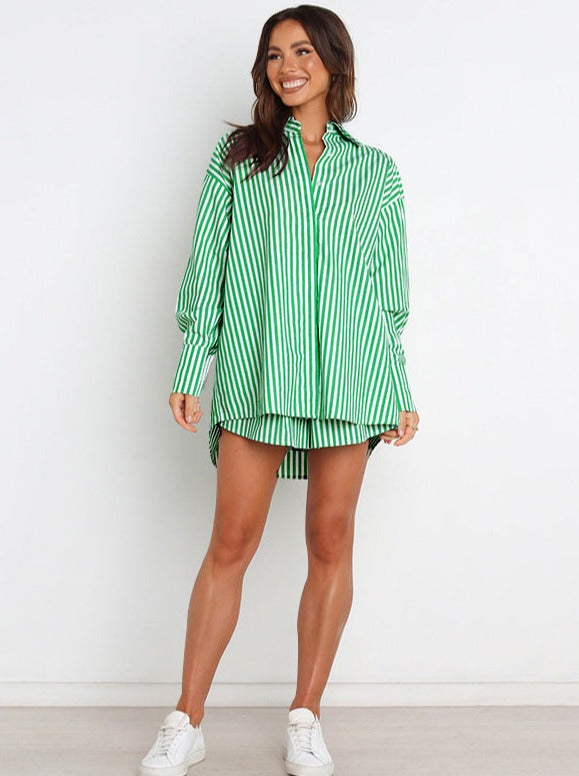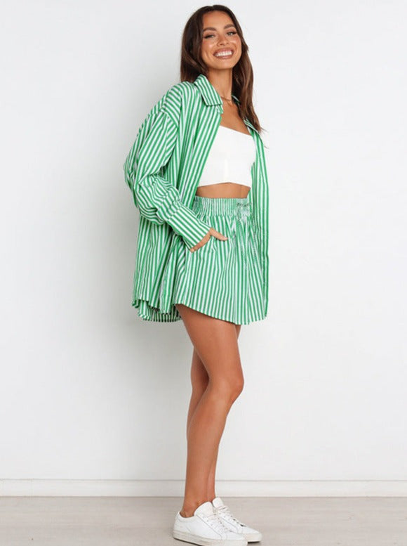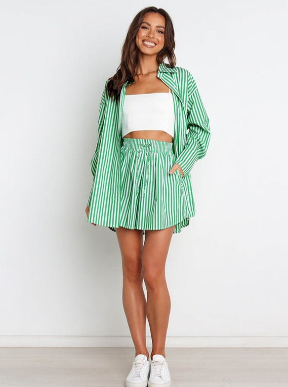 Yeşil Çizgili Uzun Kollu ve Şortlu Takım