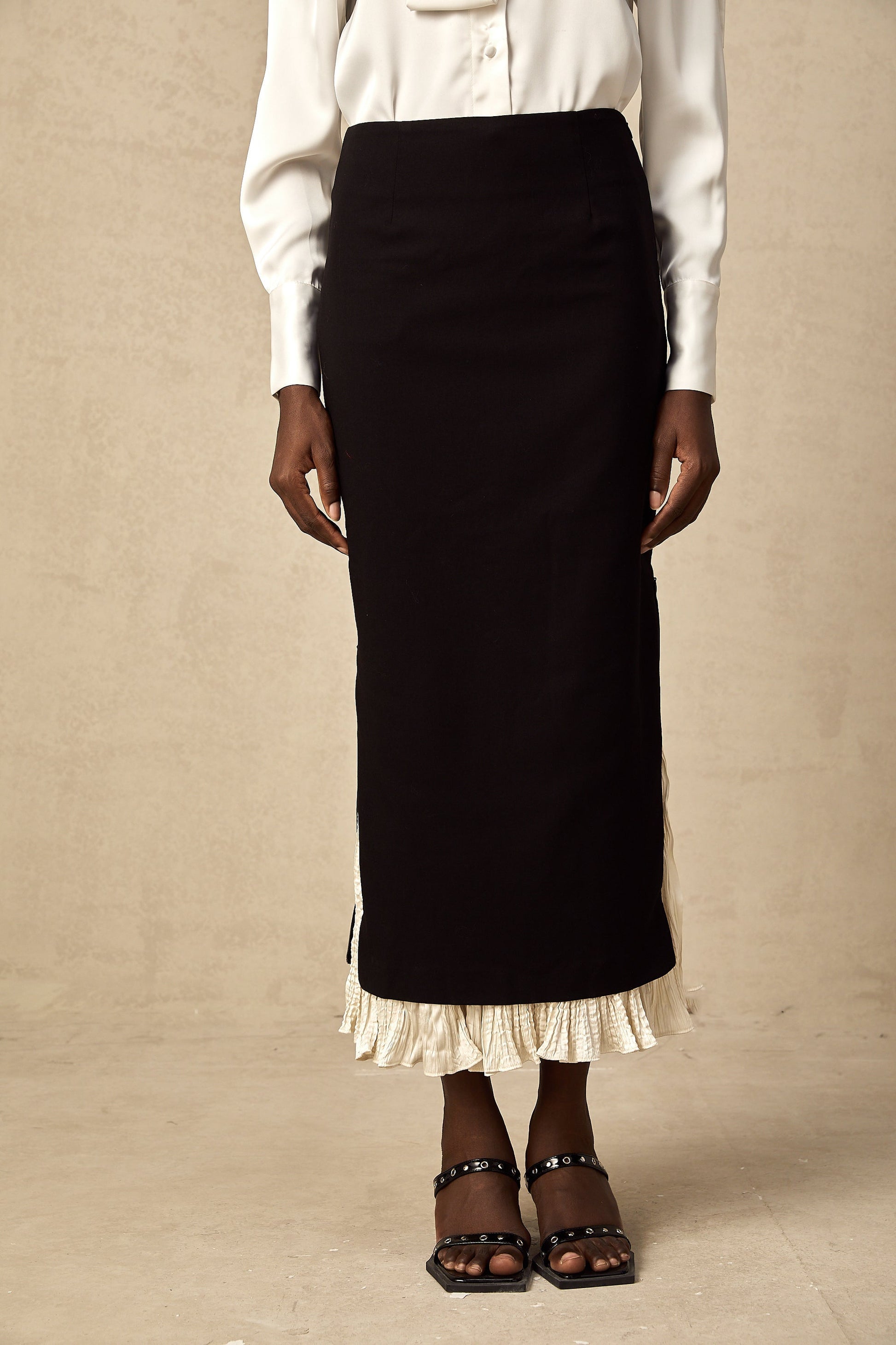 Héloïse Renk Bloklu Panelli Midi Etek