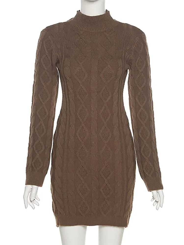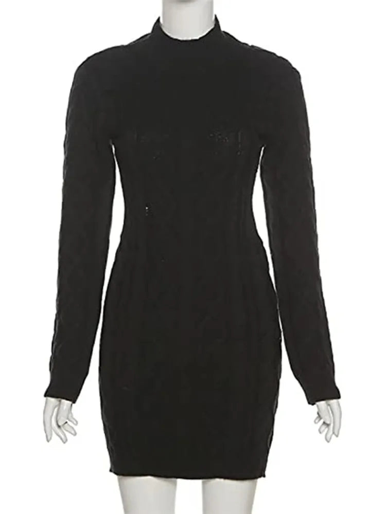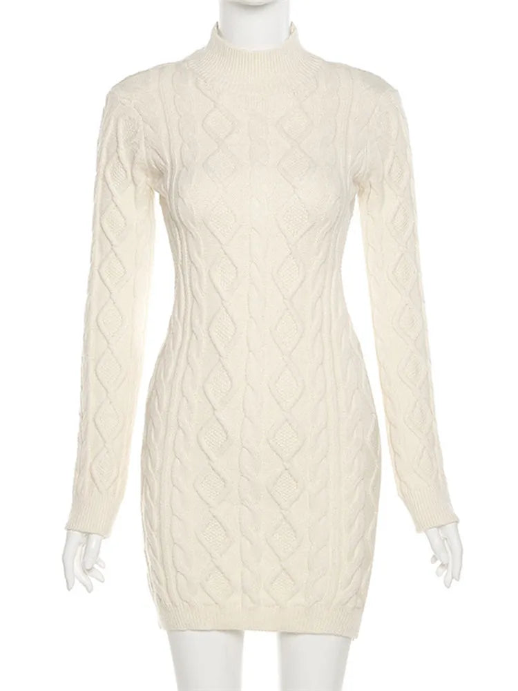 Balıkçı Yaka Sırt Detay Örme Mini Elbise