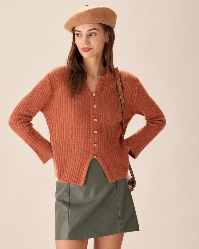 Karamel Düğmeli Dar Yırtmaçlı Hırka