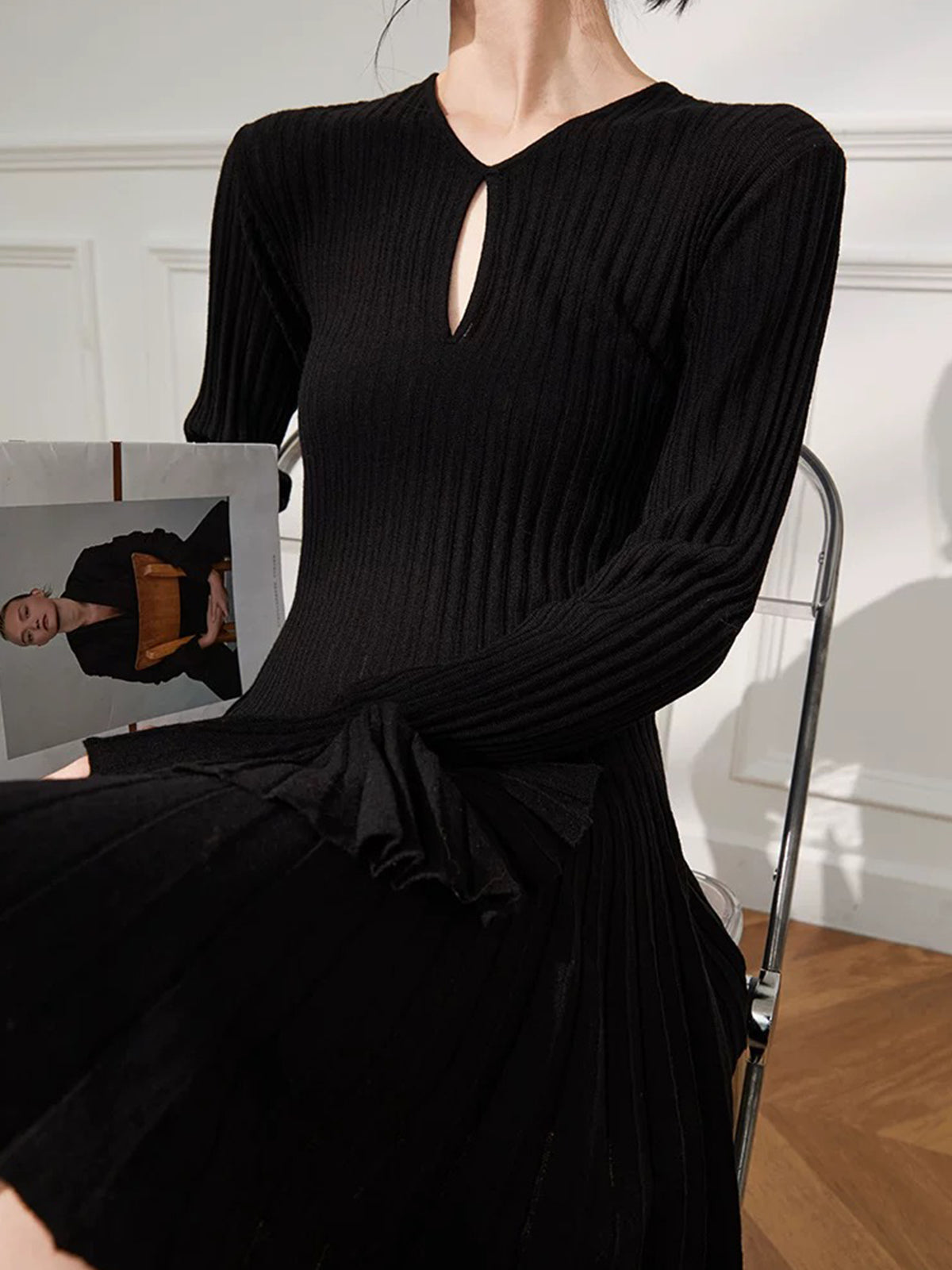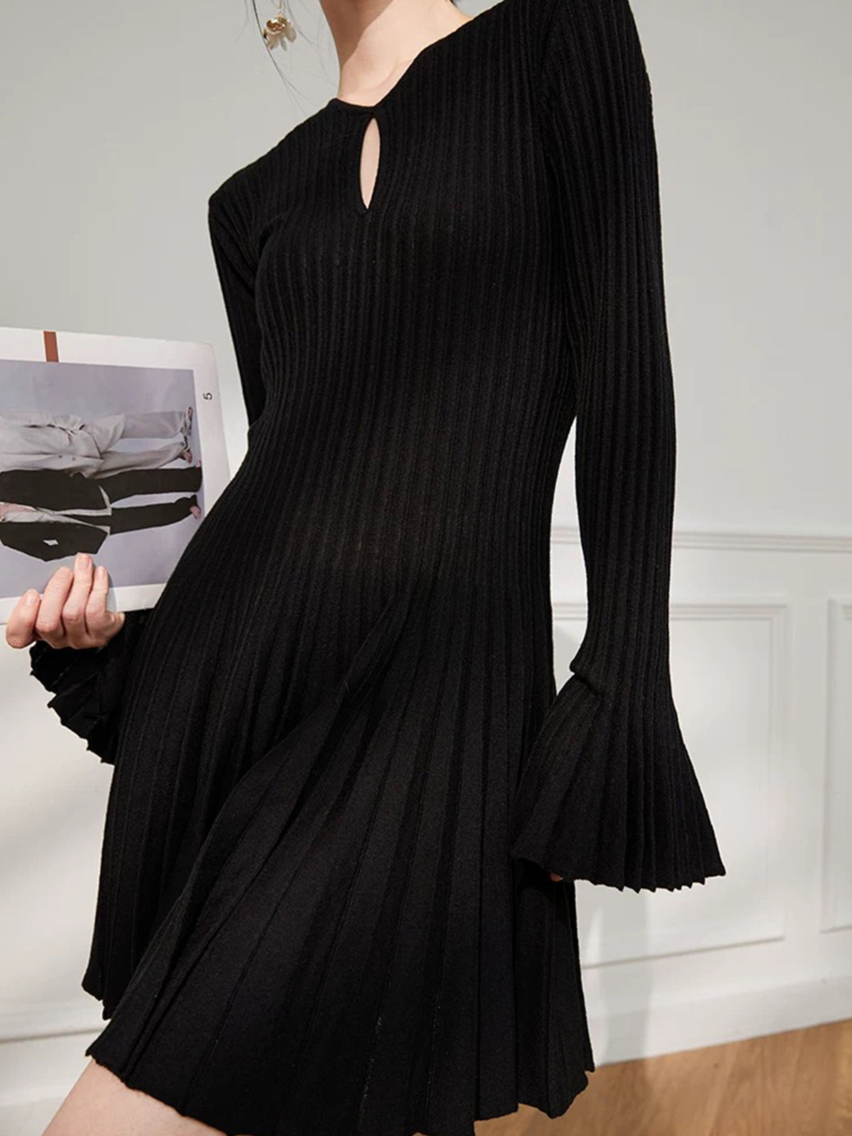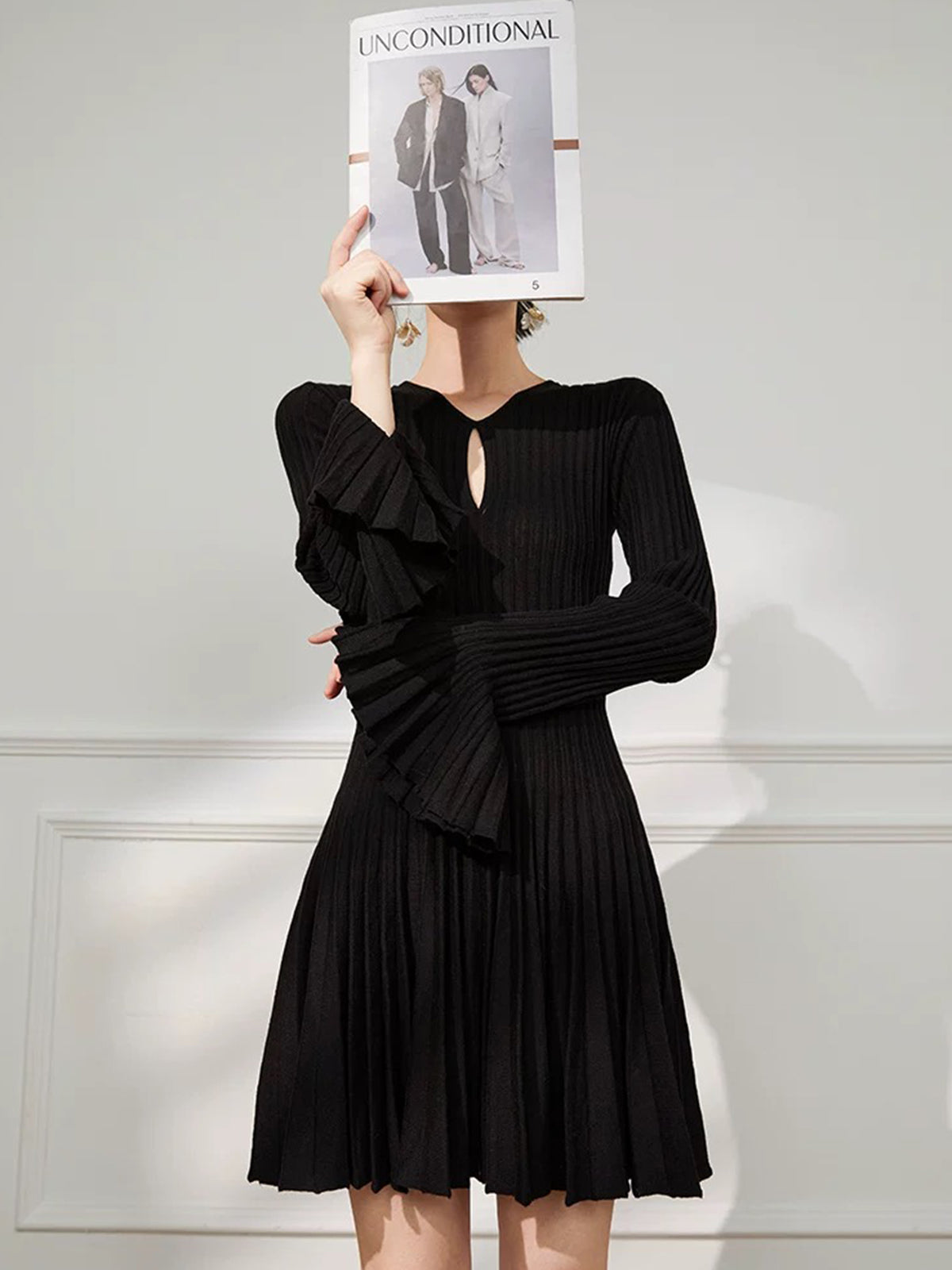 Anahtar Delik Yaka Kabarmış Kol Fırfırlı Elbise
