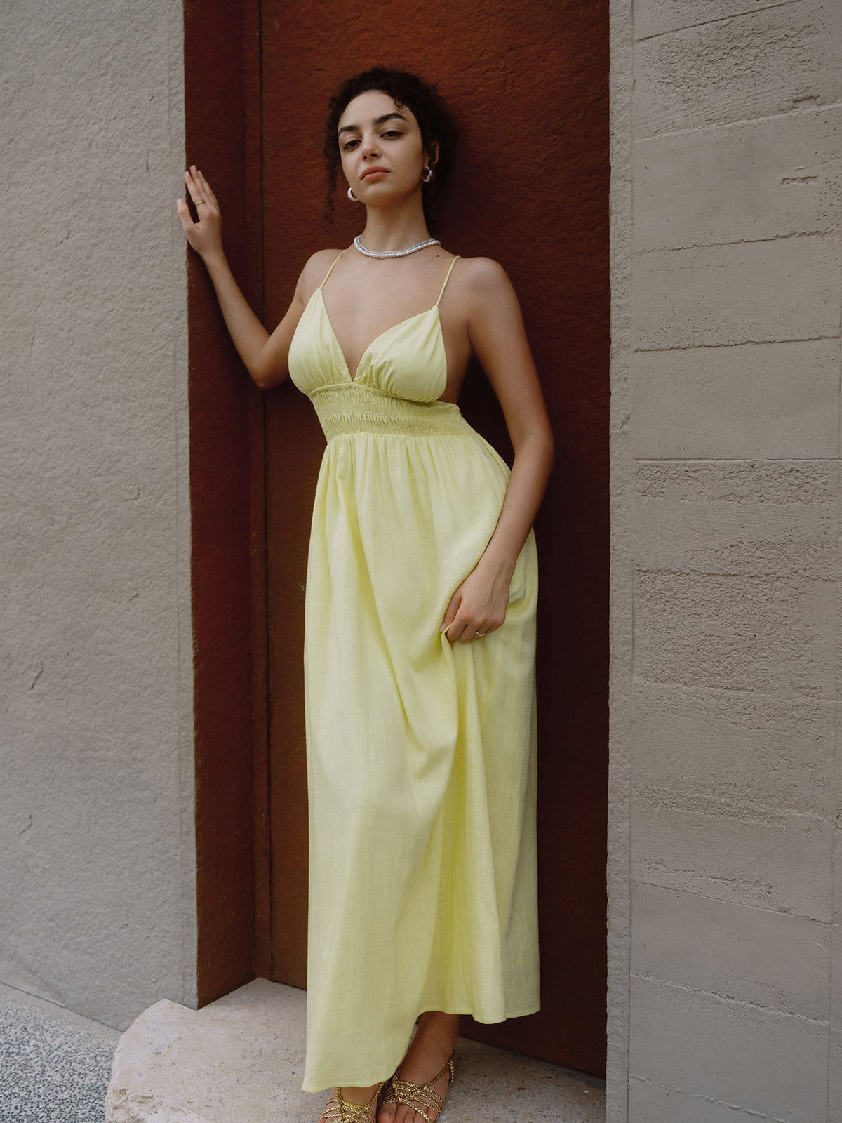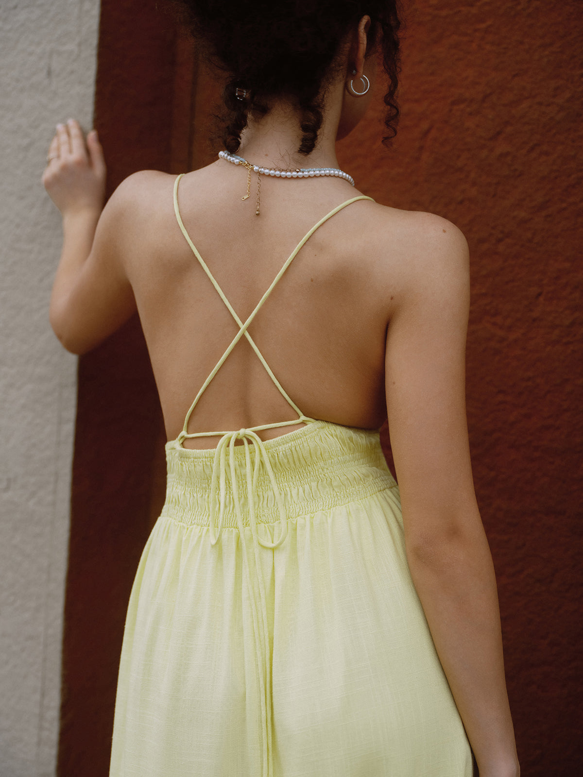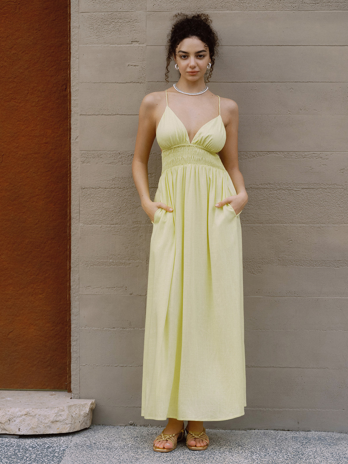 Keten Karışımlı Çapraz Cami Uzun Elbise