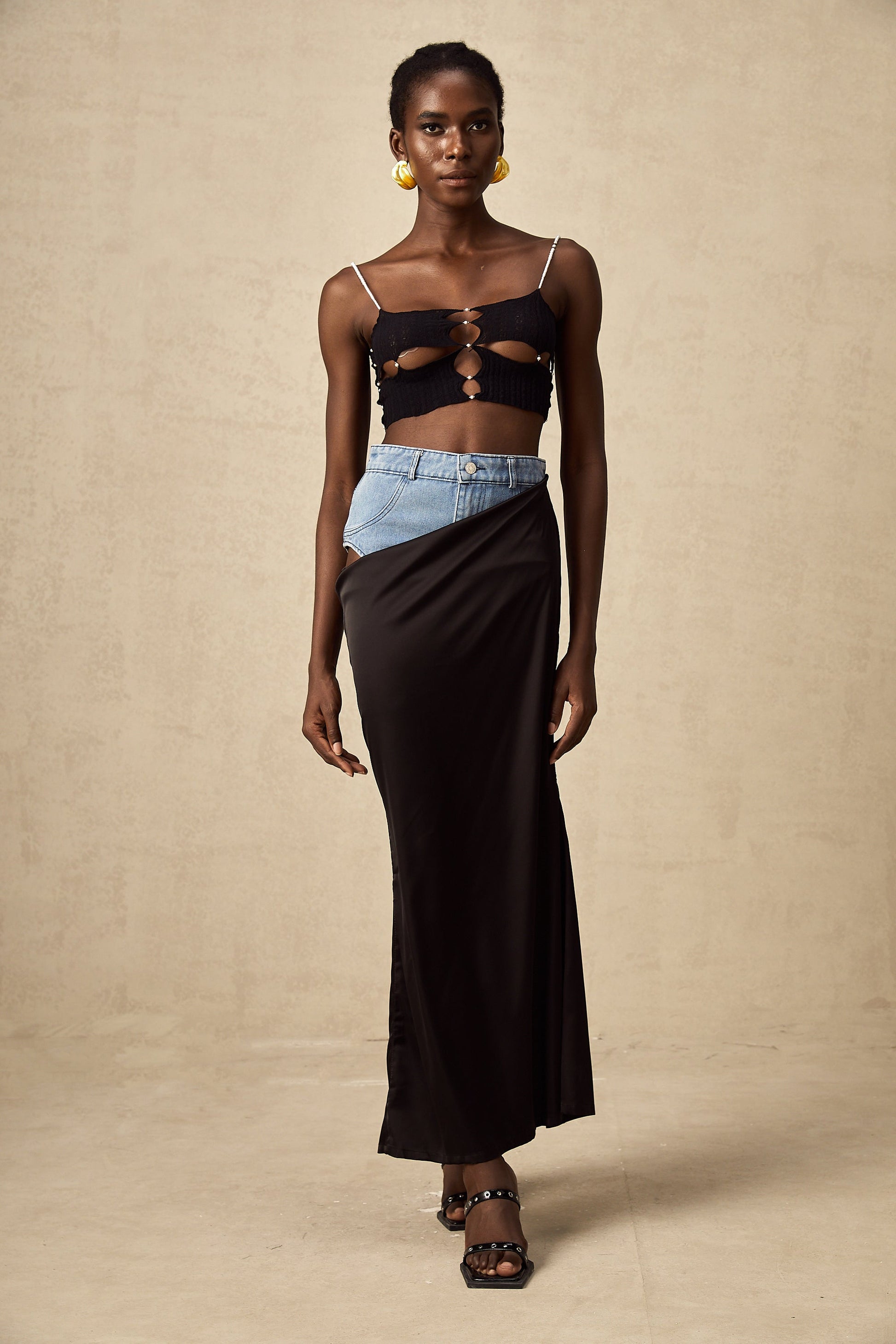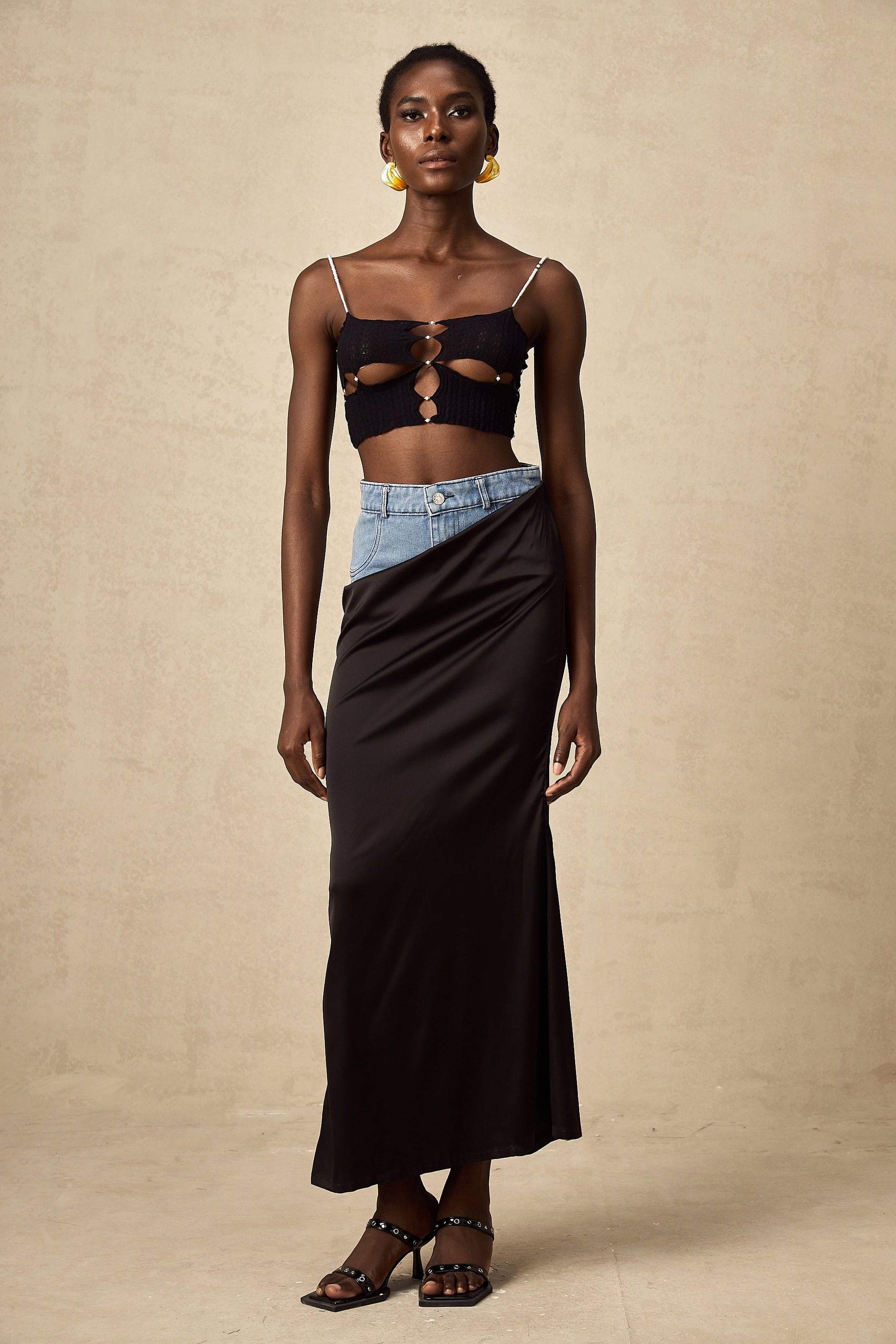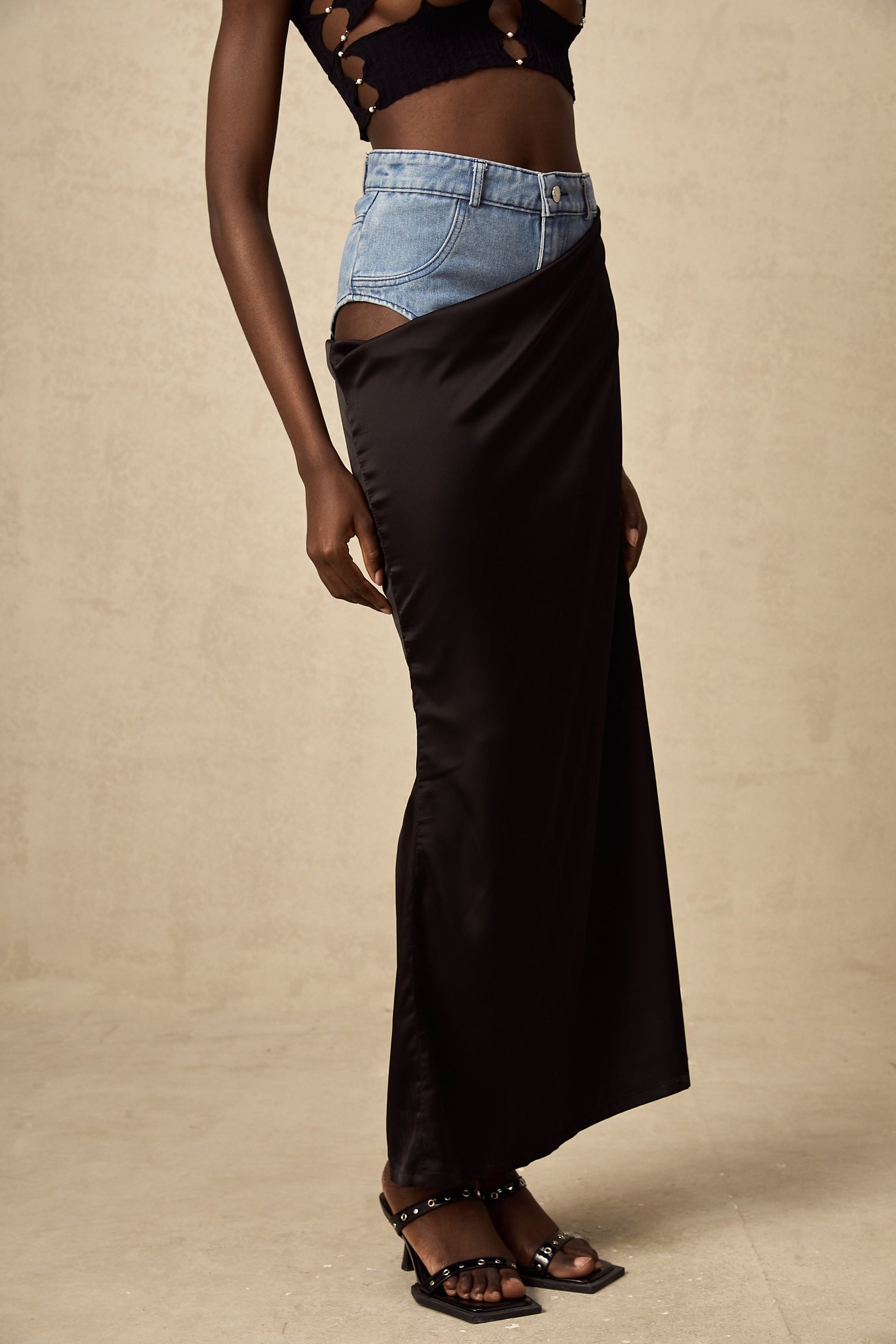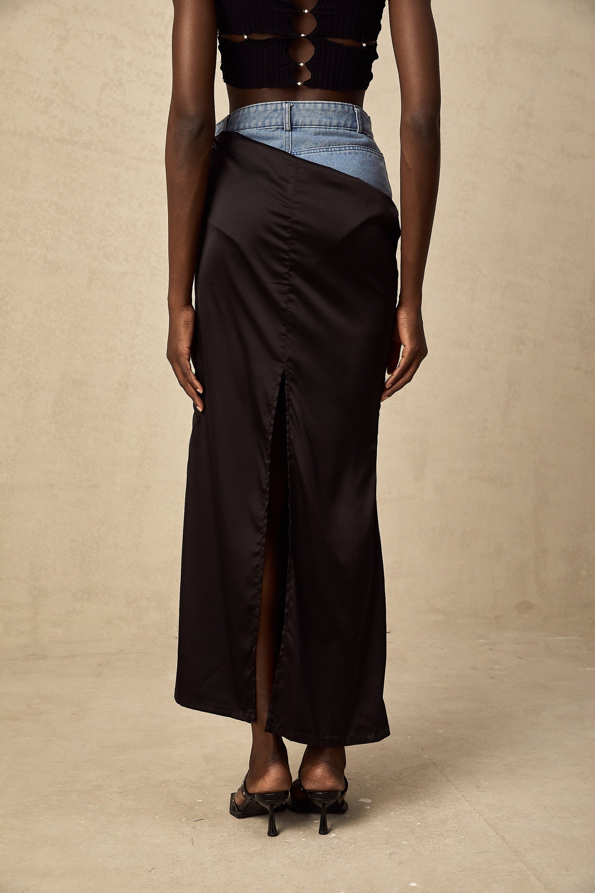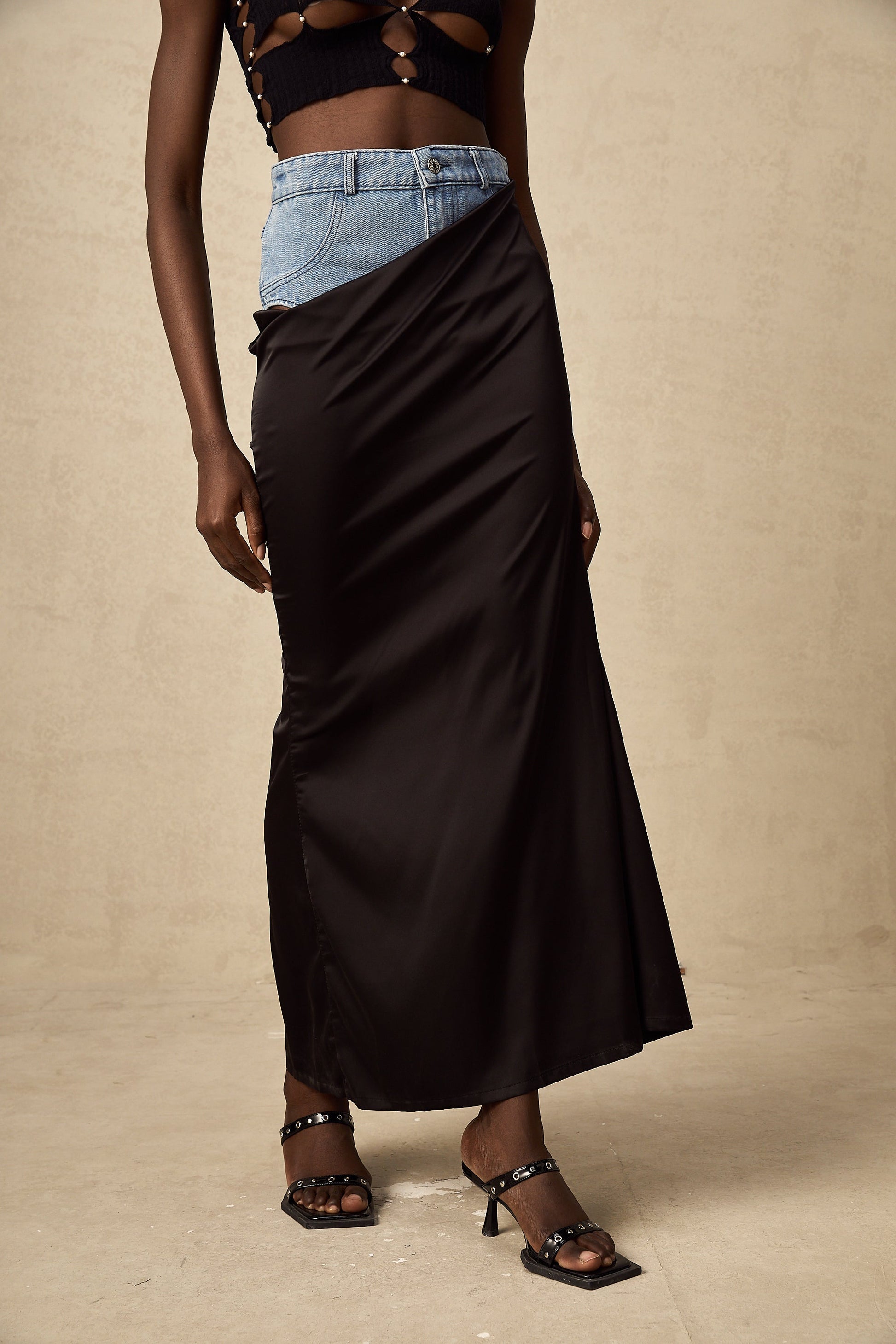 Livia Yırtmaçlı Panelli Saten Maxi Etek