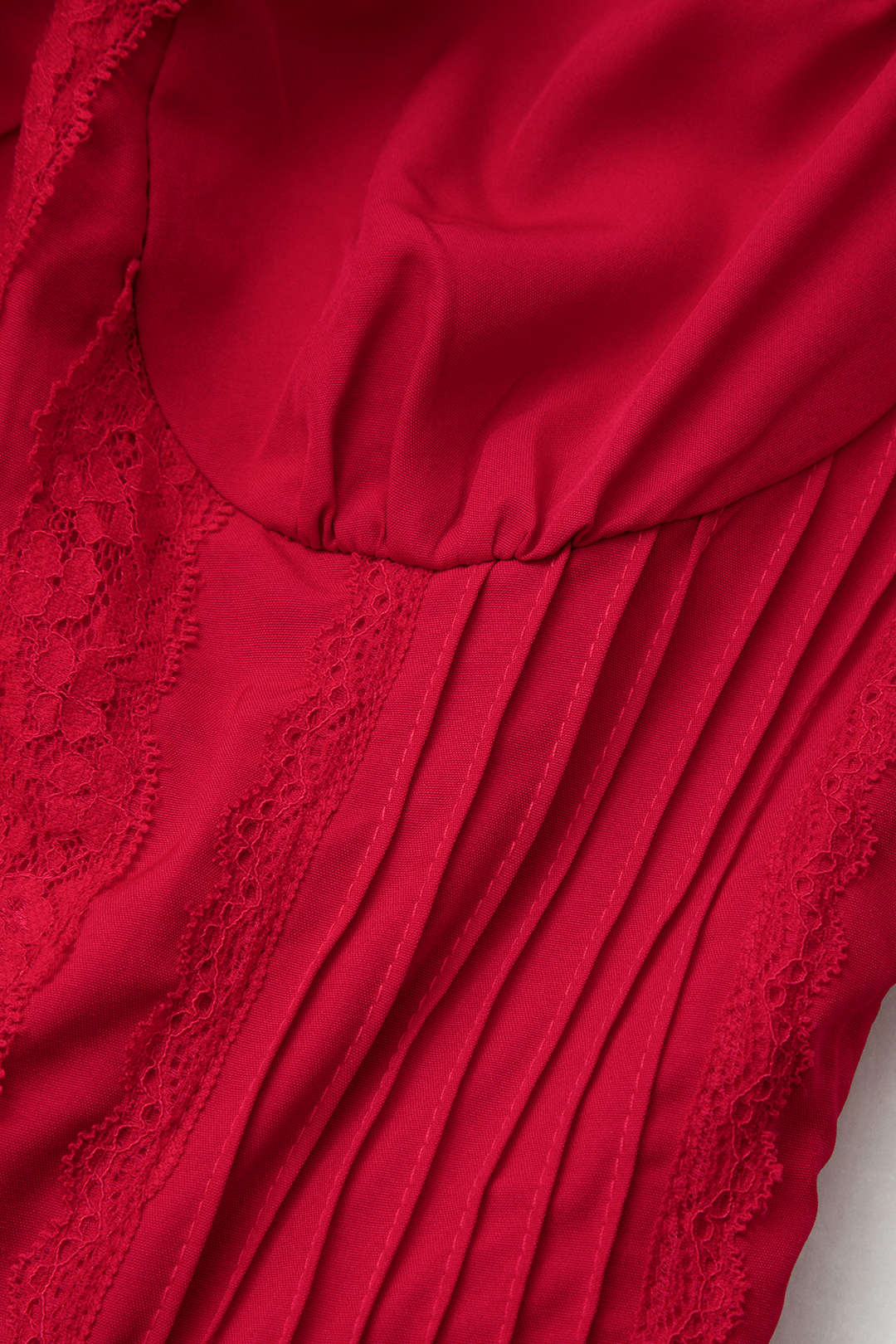 Dantel Detaylı Kare Yaka Kolsuz Plise Mini Elbise