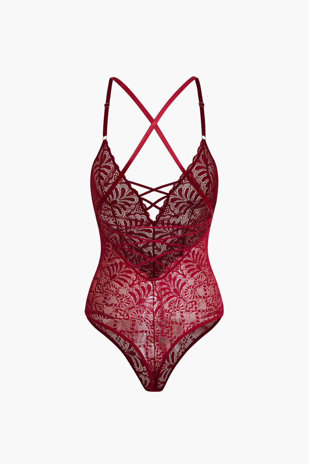Dantel Sırt Dekolteli Çapraz Lingerie Bodysuit