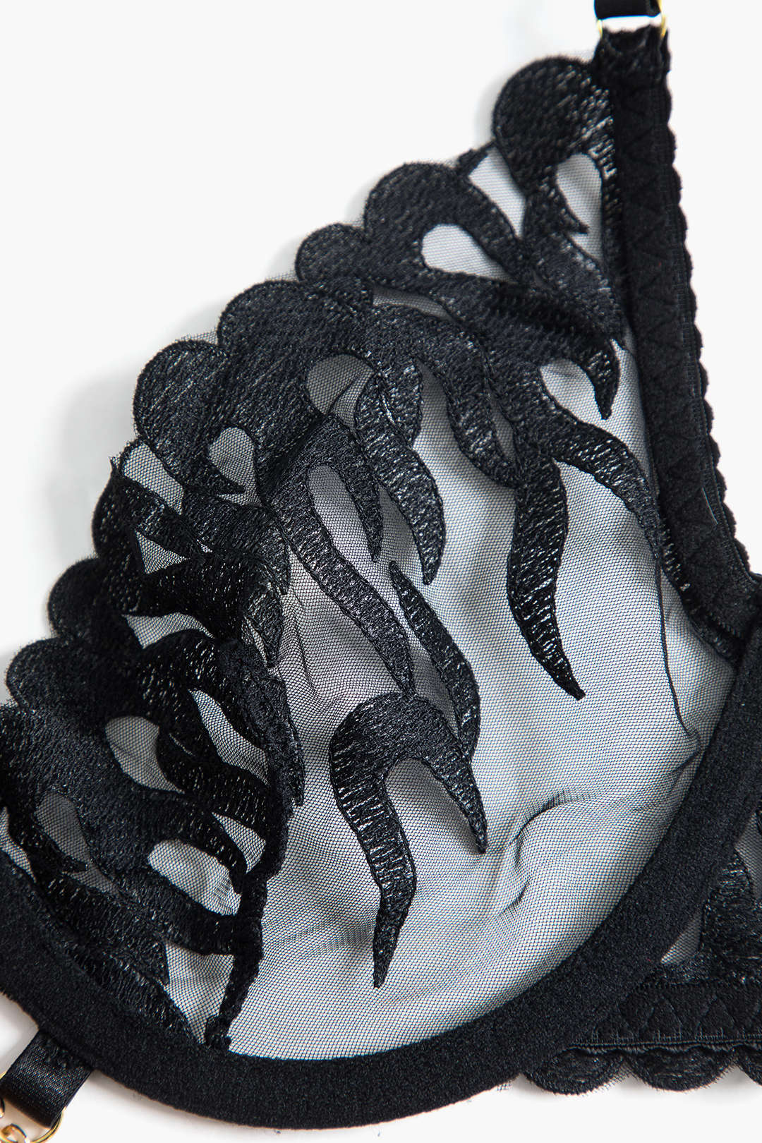 Nakışlı Zincir Detaylı Kesik İç Giyim Garter Seti