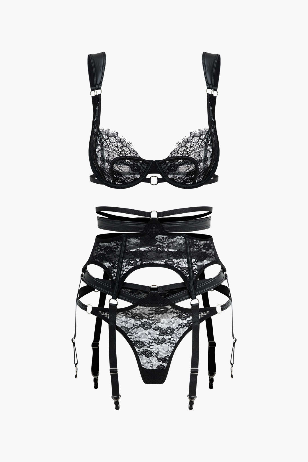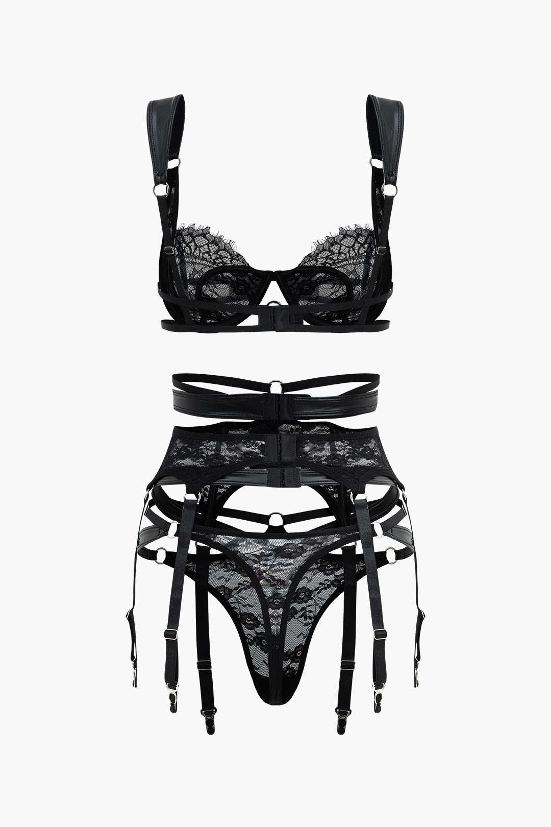 Dantel Şeffaf Kesik Detaylı Sırt Dekolteli Jartiyer Takımı