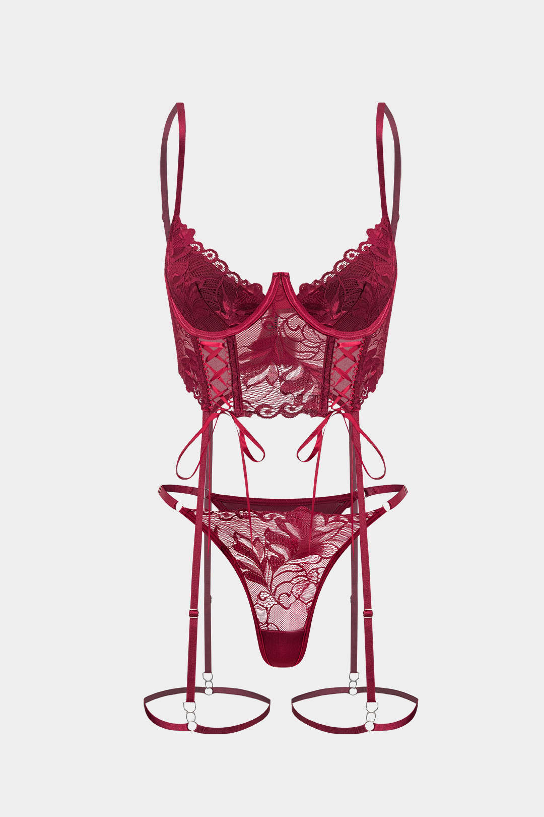 Dantel Çapraz Bağlama Detaylı Sırt Dekolteli İç Giyim Garter Seti