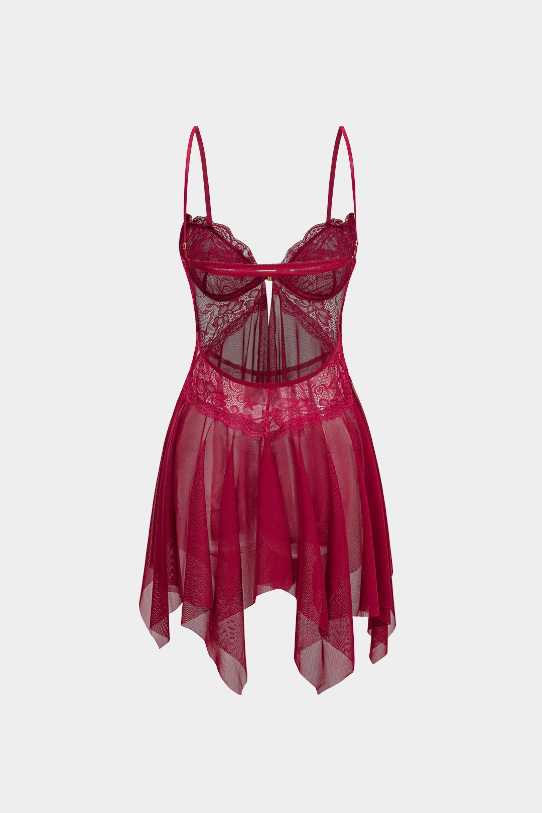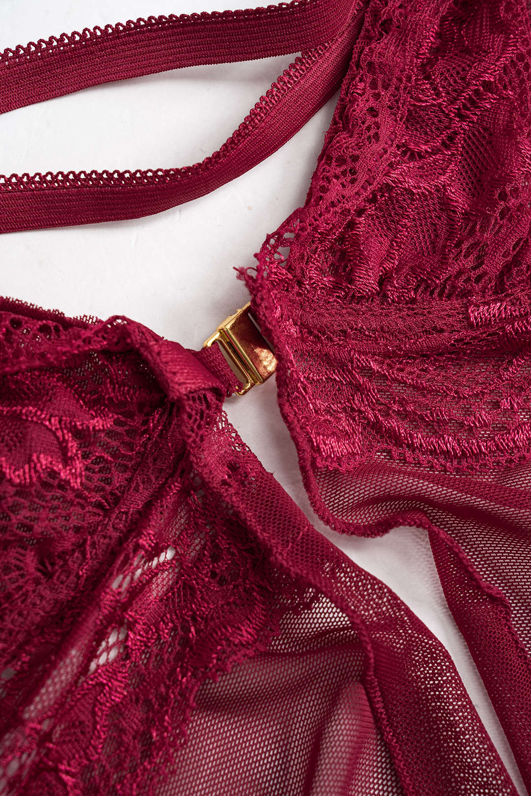 Dantel Şeffaf Bustiyer Slip Gece Elbisesi ve Külot Seti