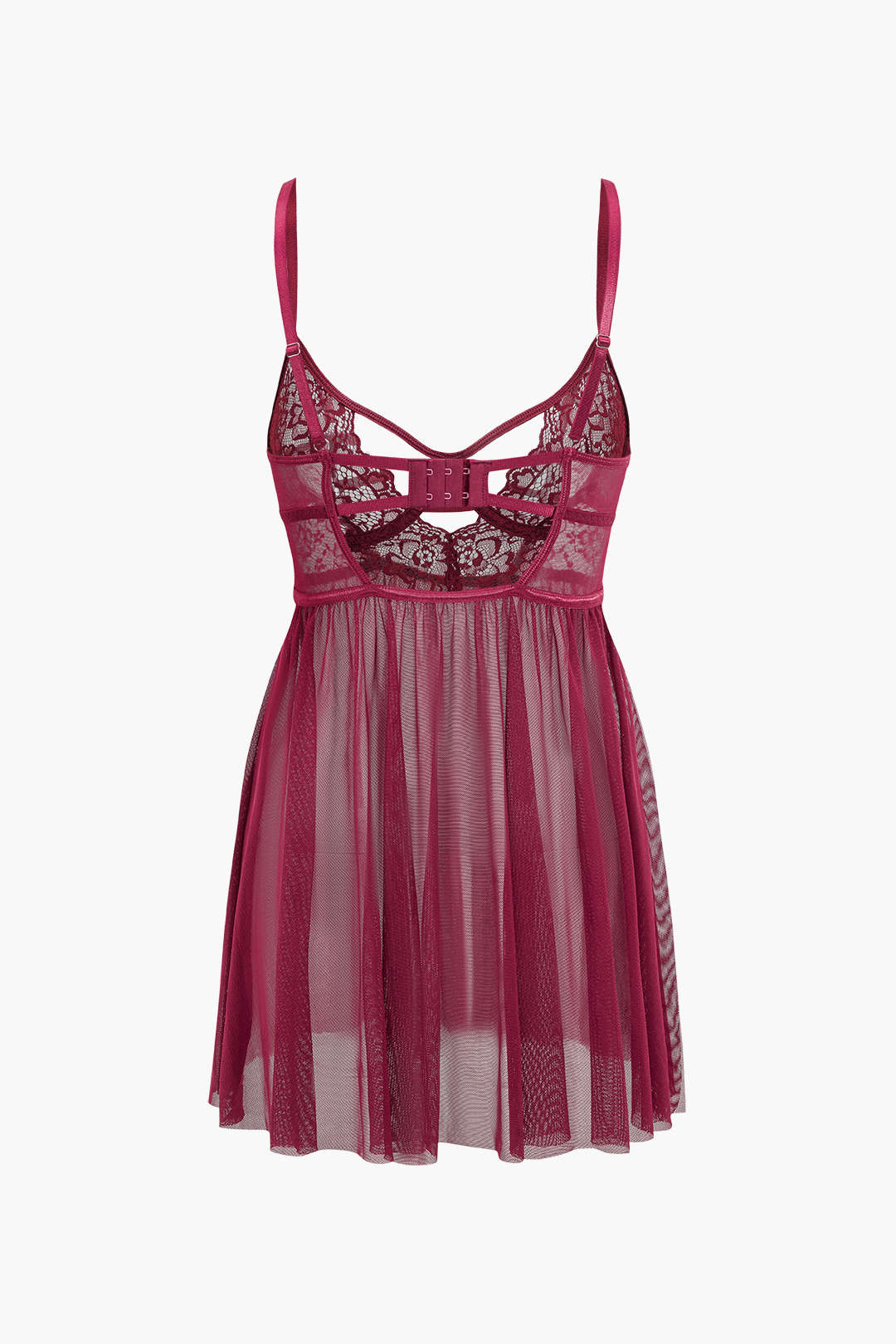 Büstiyer Dekolteli İşlemeli Yan Yırtmaçlı Uyku Giyim Seti