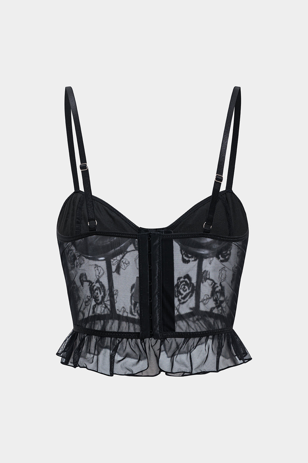 Tül Fırfırlı Nakışlı Korsaj Büstiyer
