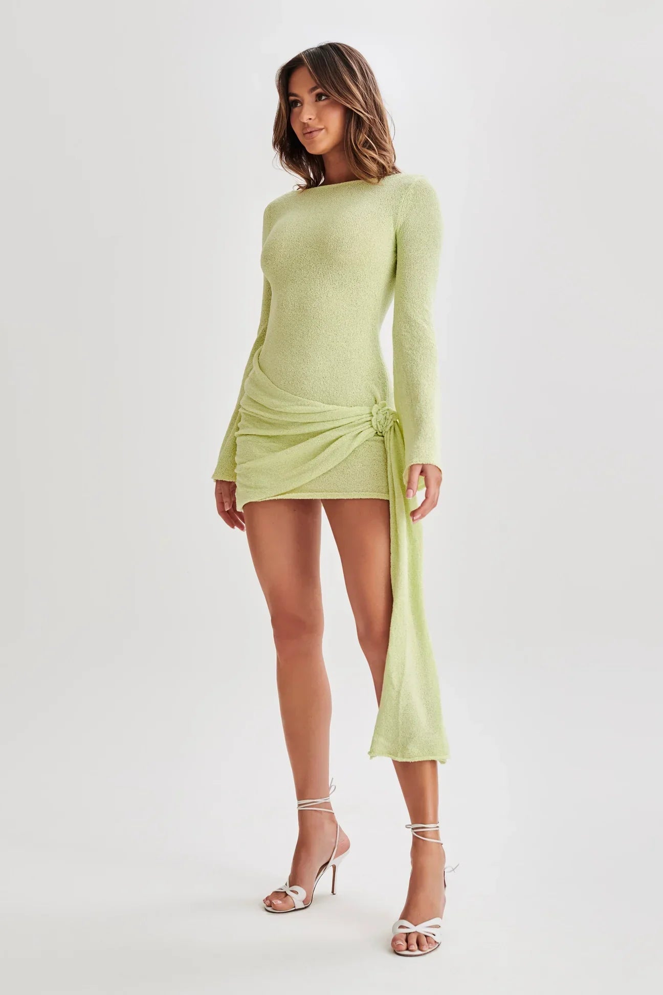 Eddy Renk Bloklu Omuzları Açık Uzun Kollu Kısa Elbise