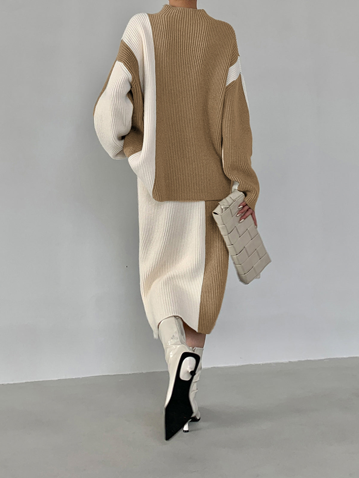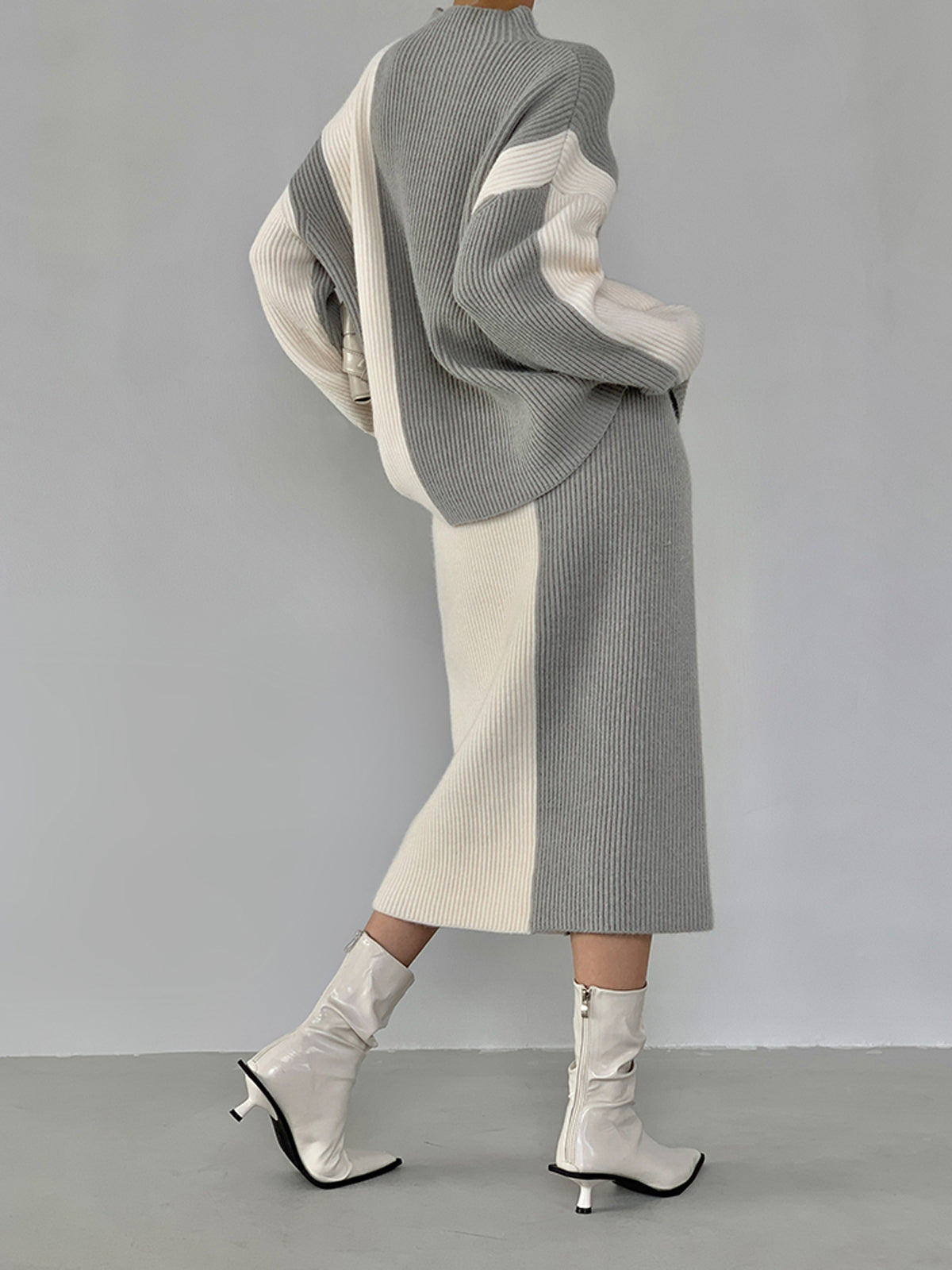 Kontrast Çizgili İki Parça Triko Etek Takım