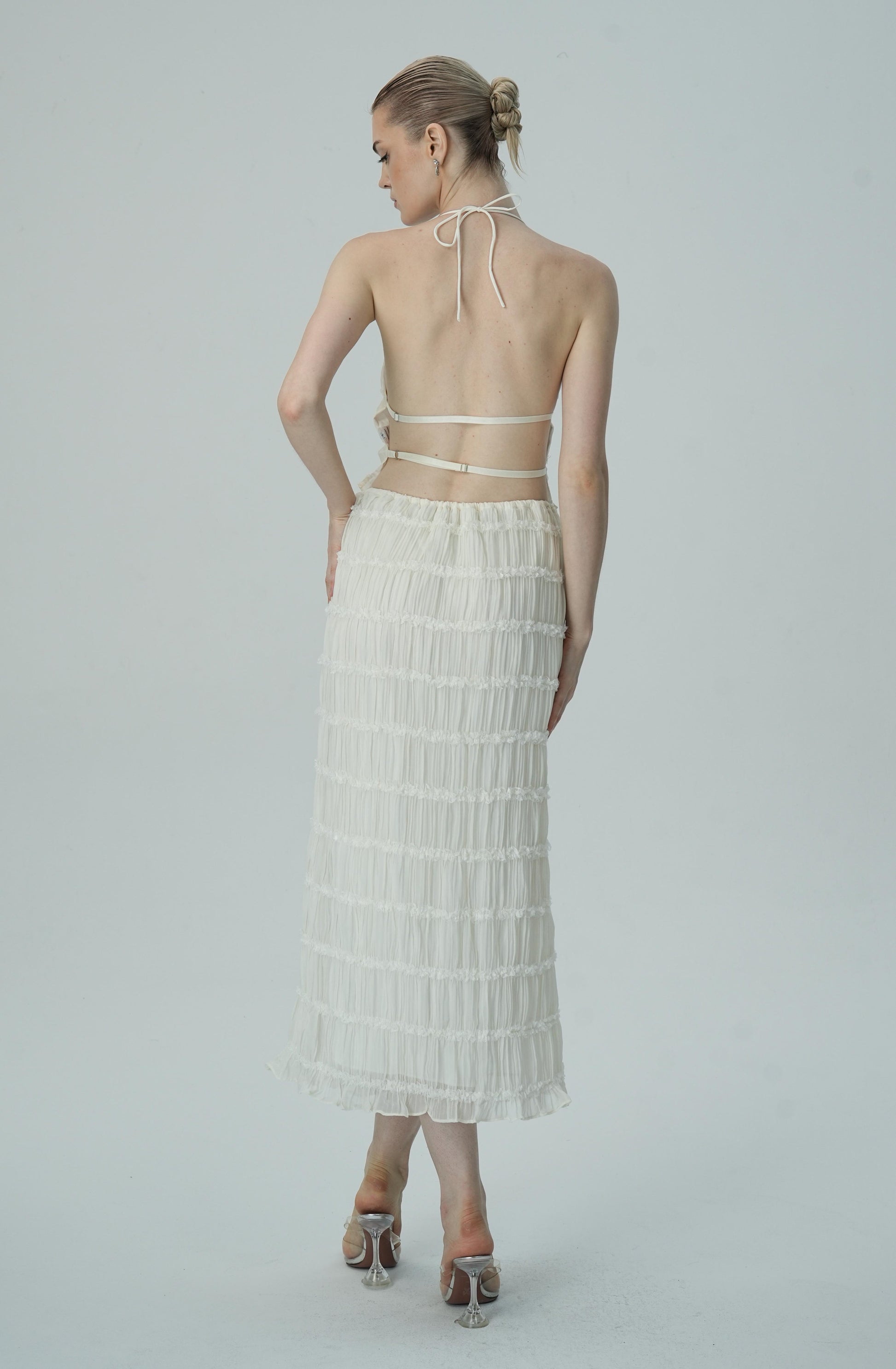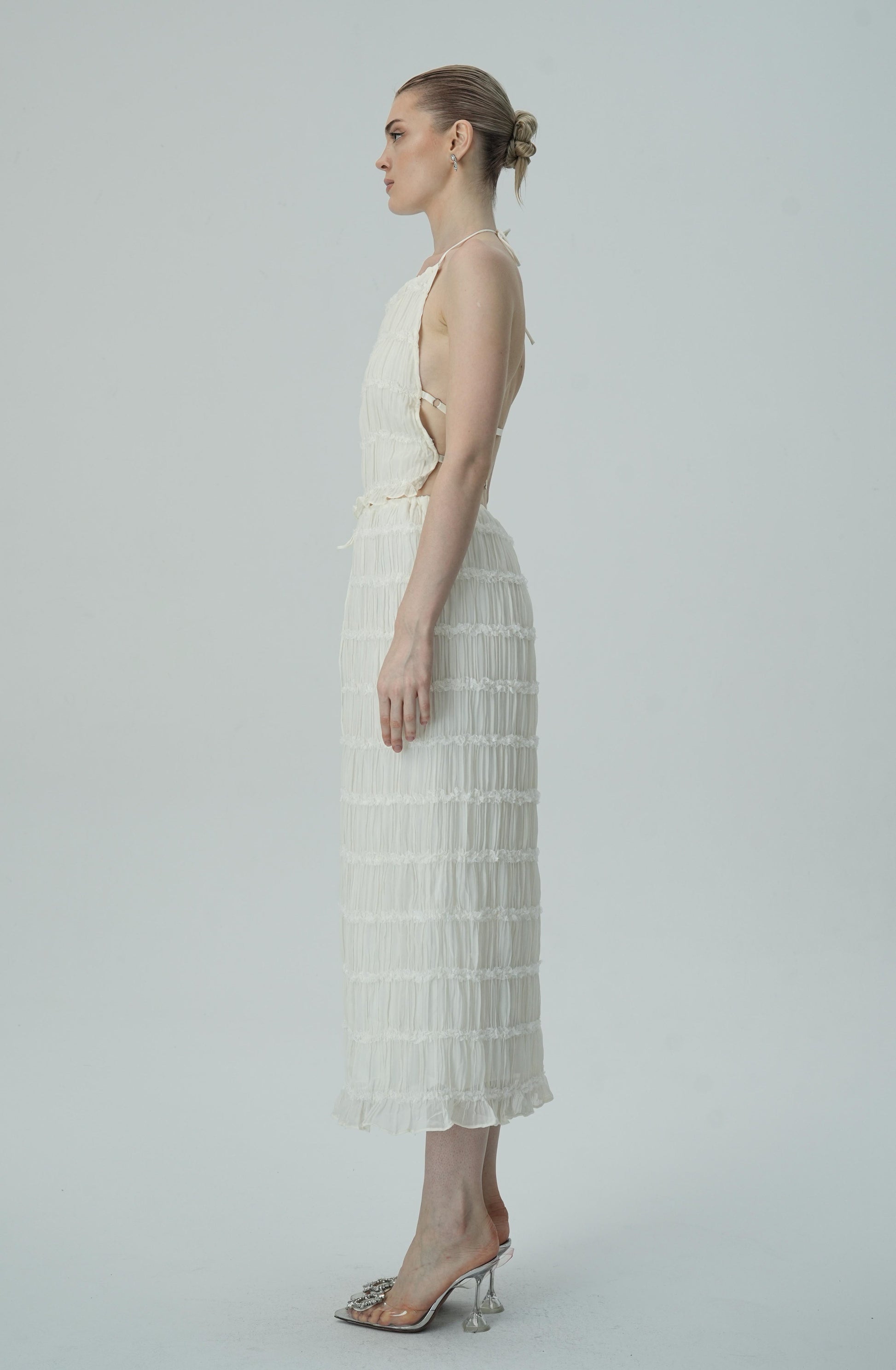 29% İndirimInès Beyaz Kristal Süslemeli Midi Elbise