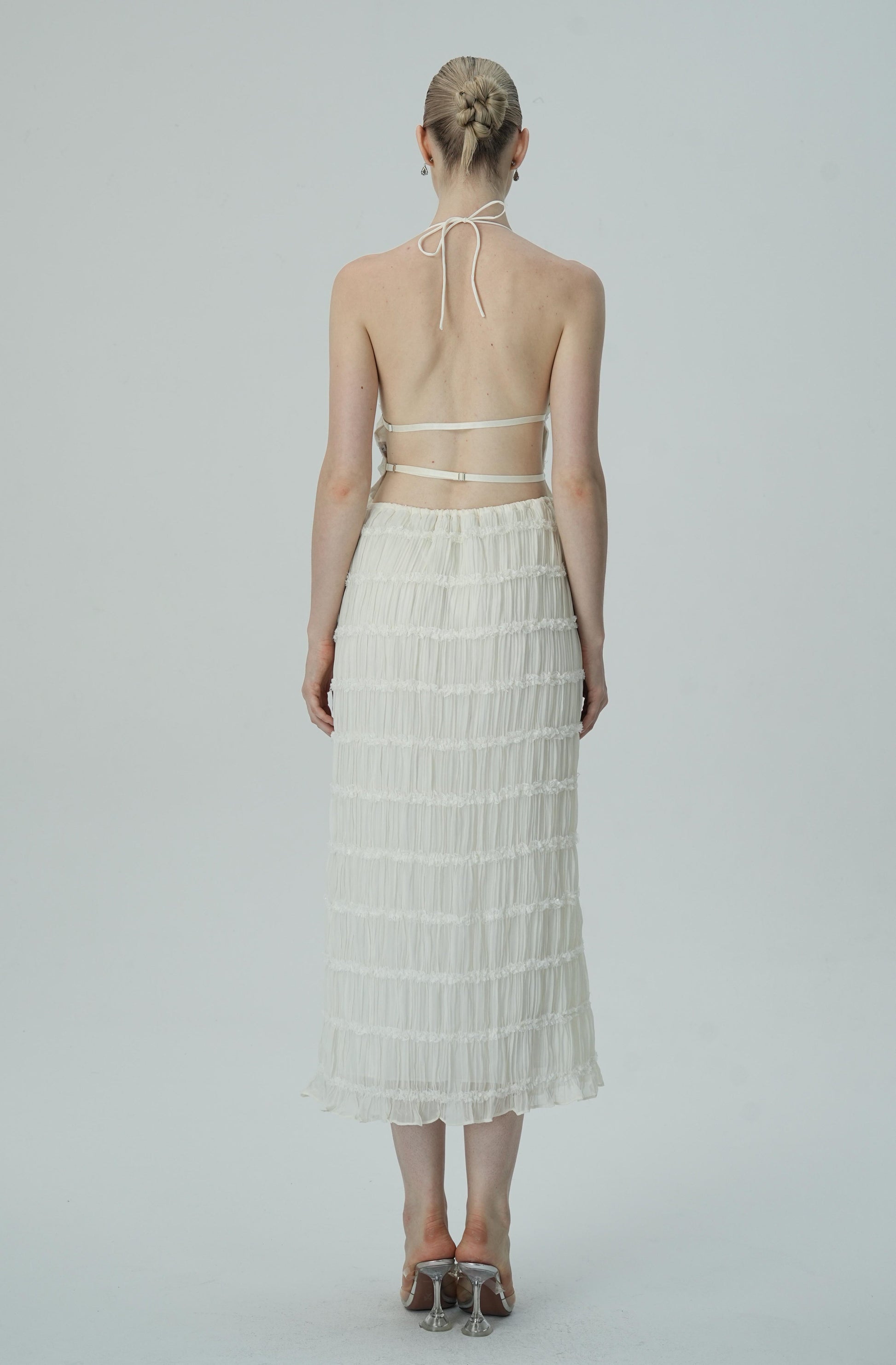 35% İndirimBaskı V Yaka Halter Sırtı Açık Uzun Elbise