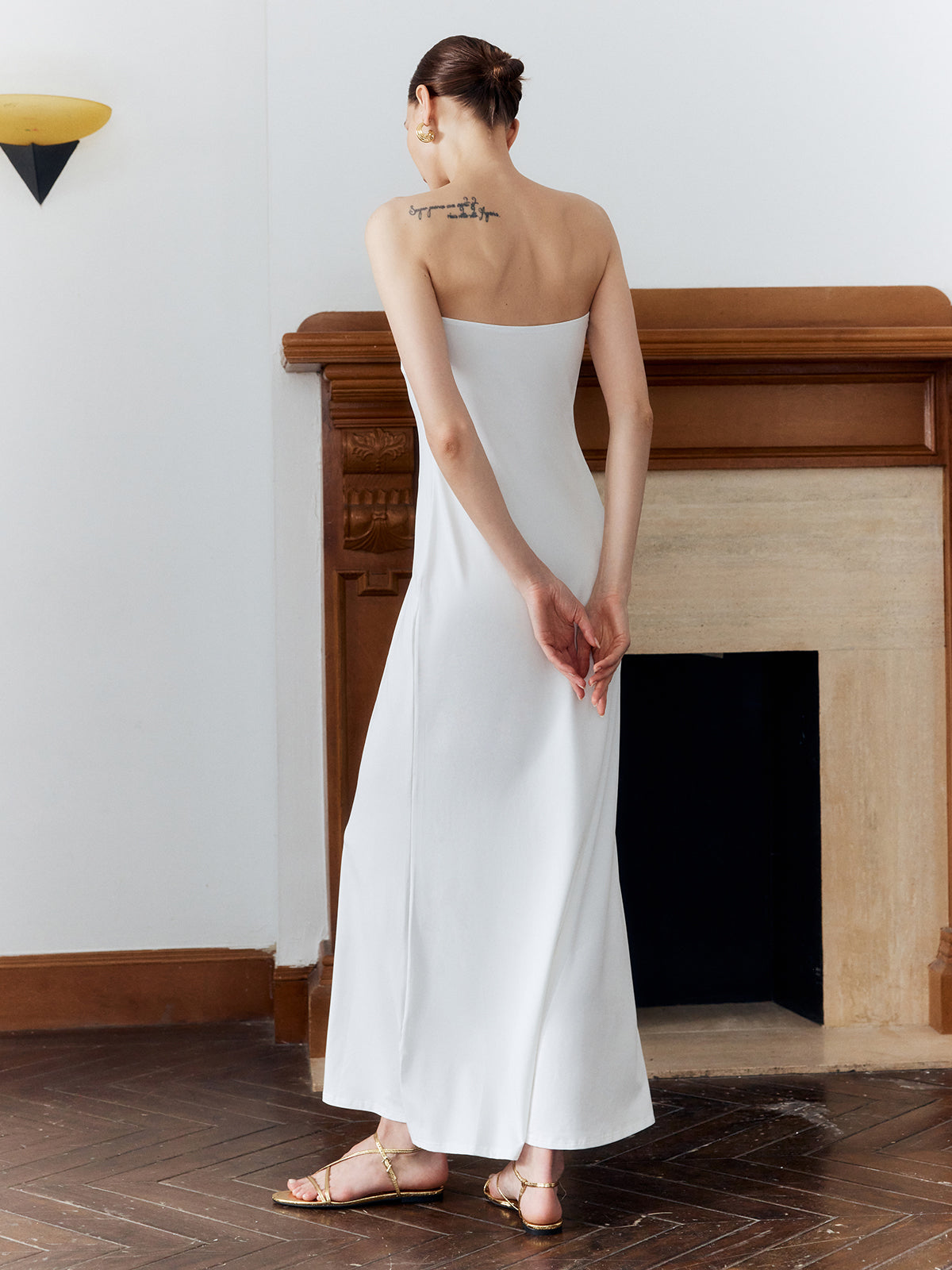 Kapalı Omuz Kesimli Solid Uzun Elbise