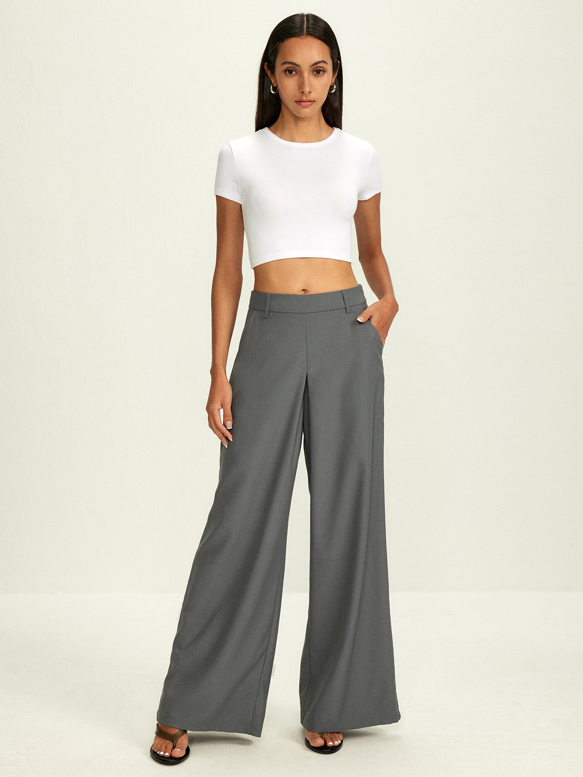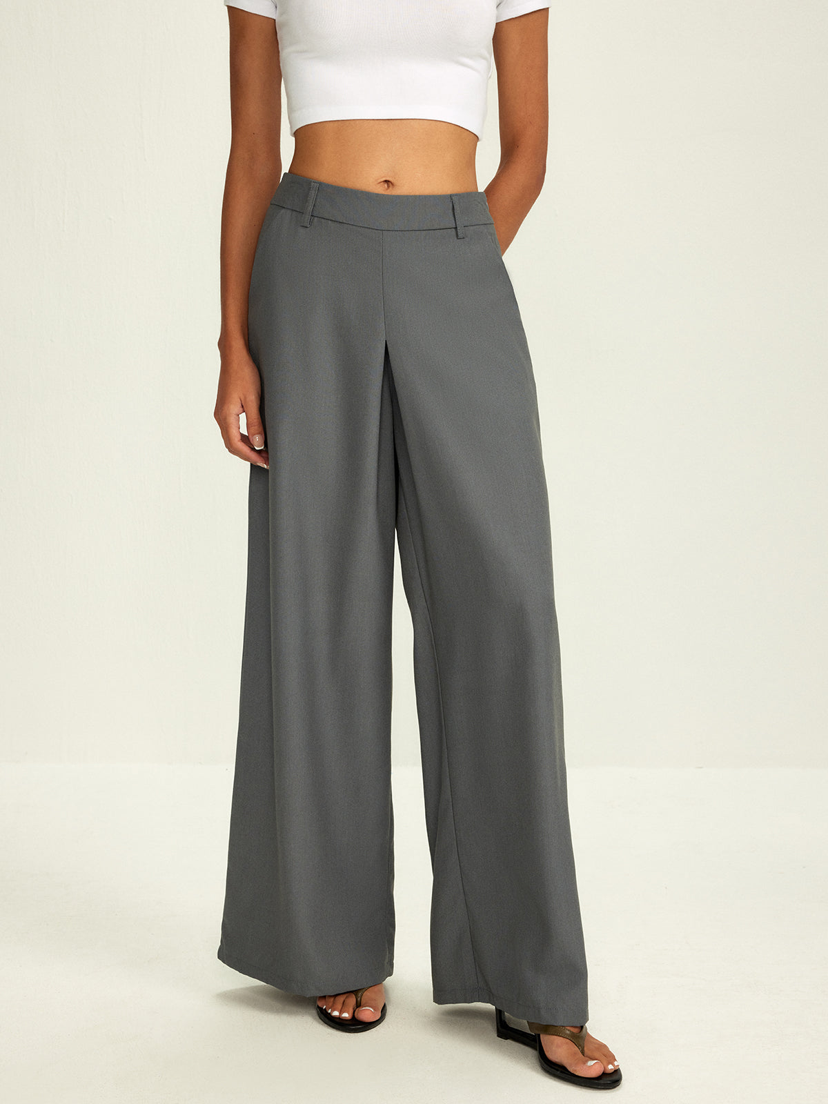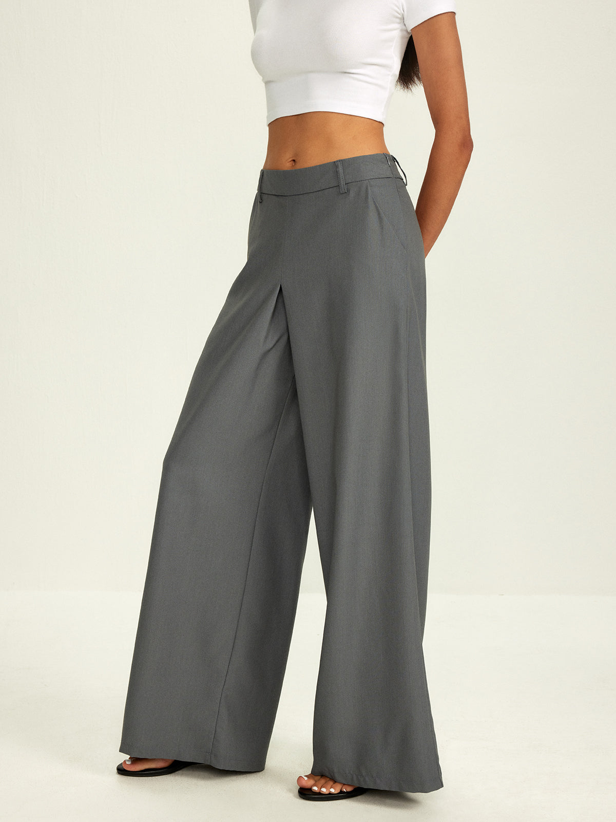 Düz Cepli Takım Elbise Geniş Paça Pantolon