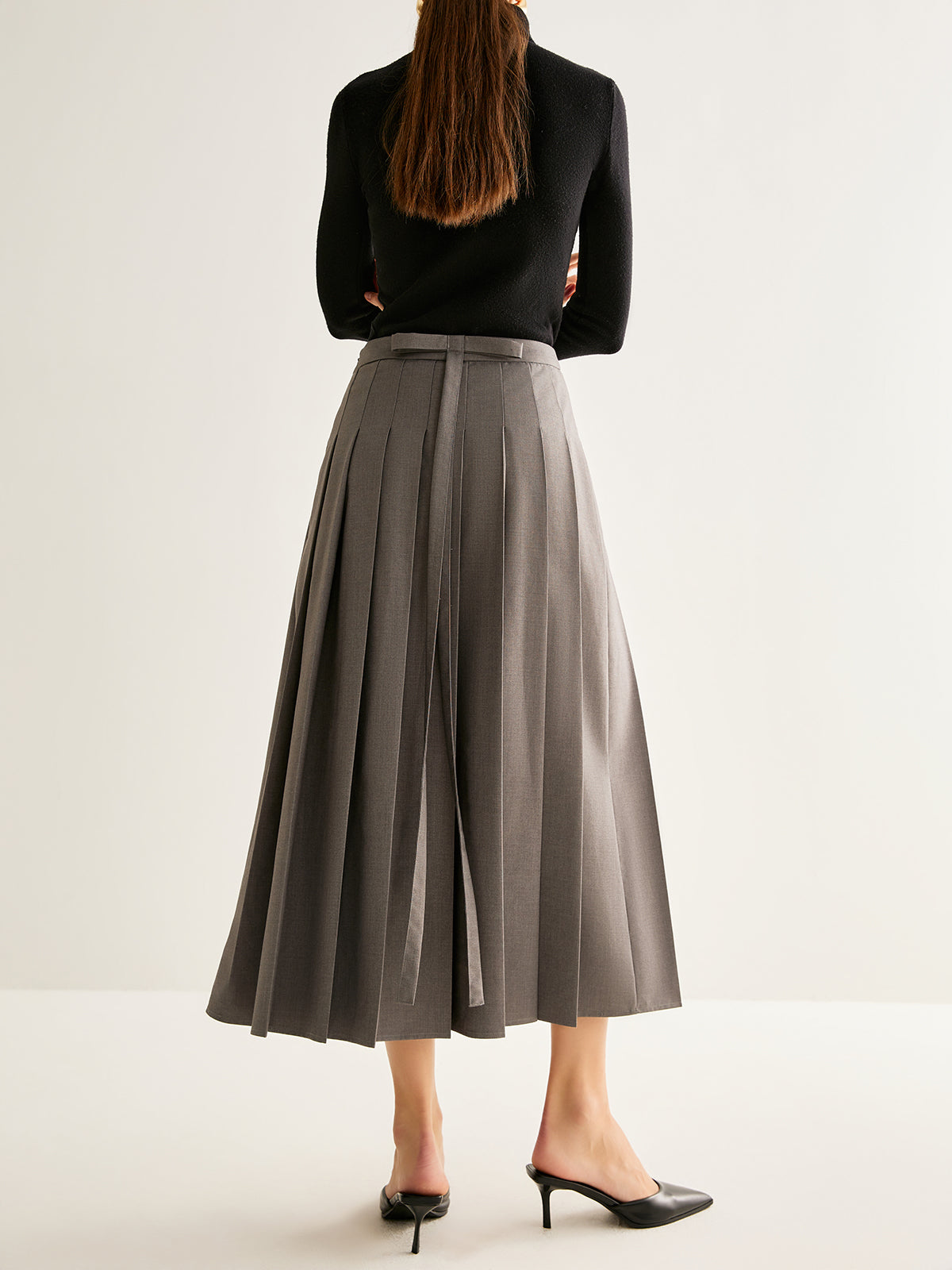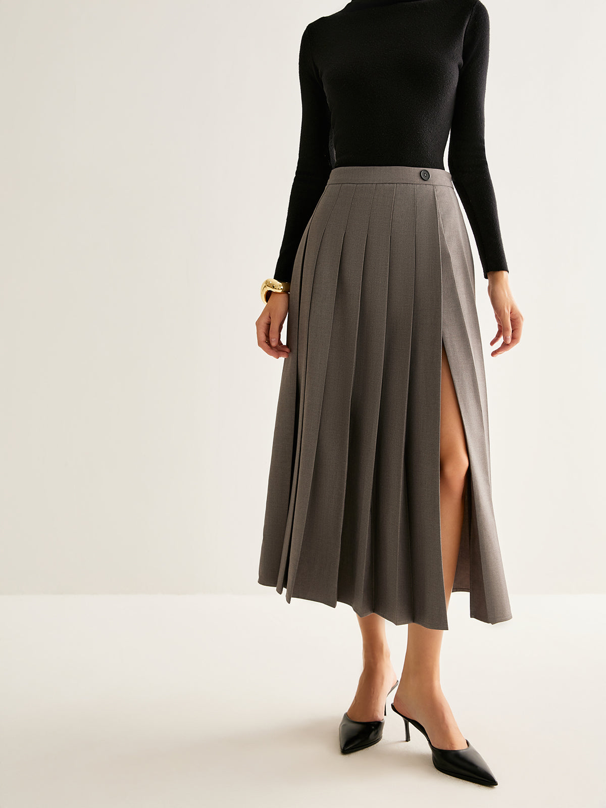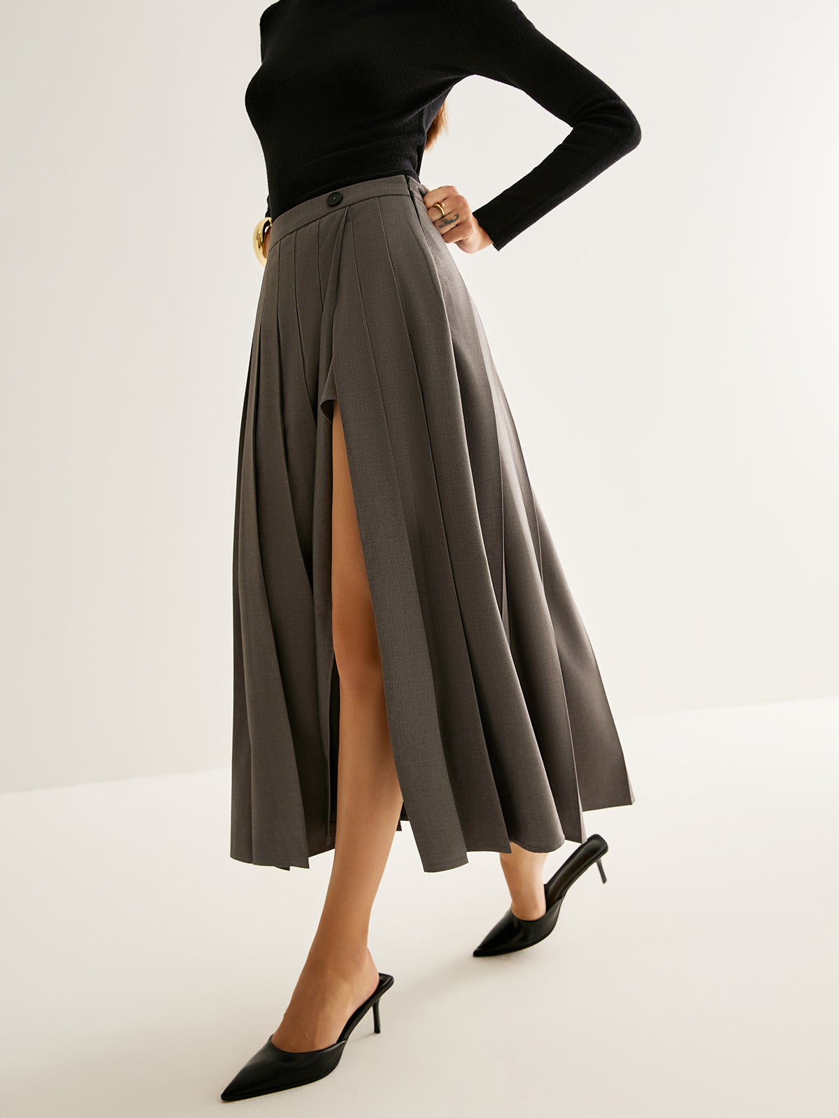 Pliseli Yırtmaçlı Fermuarlı Etek