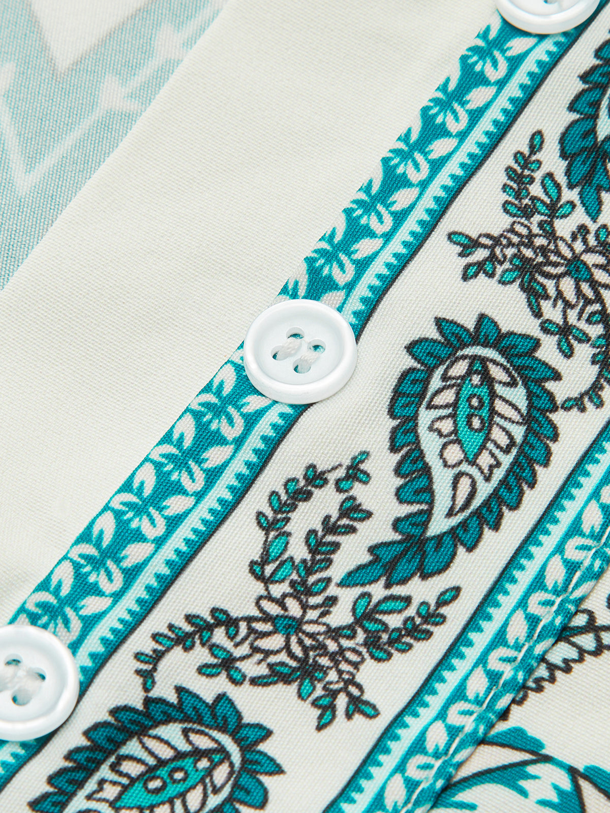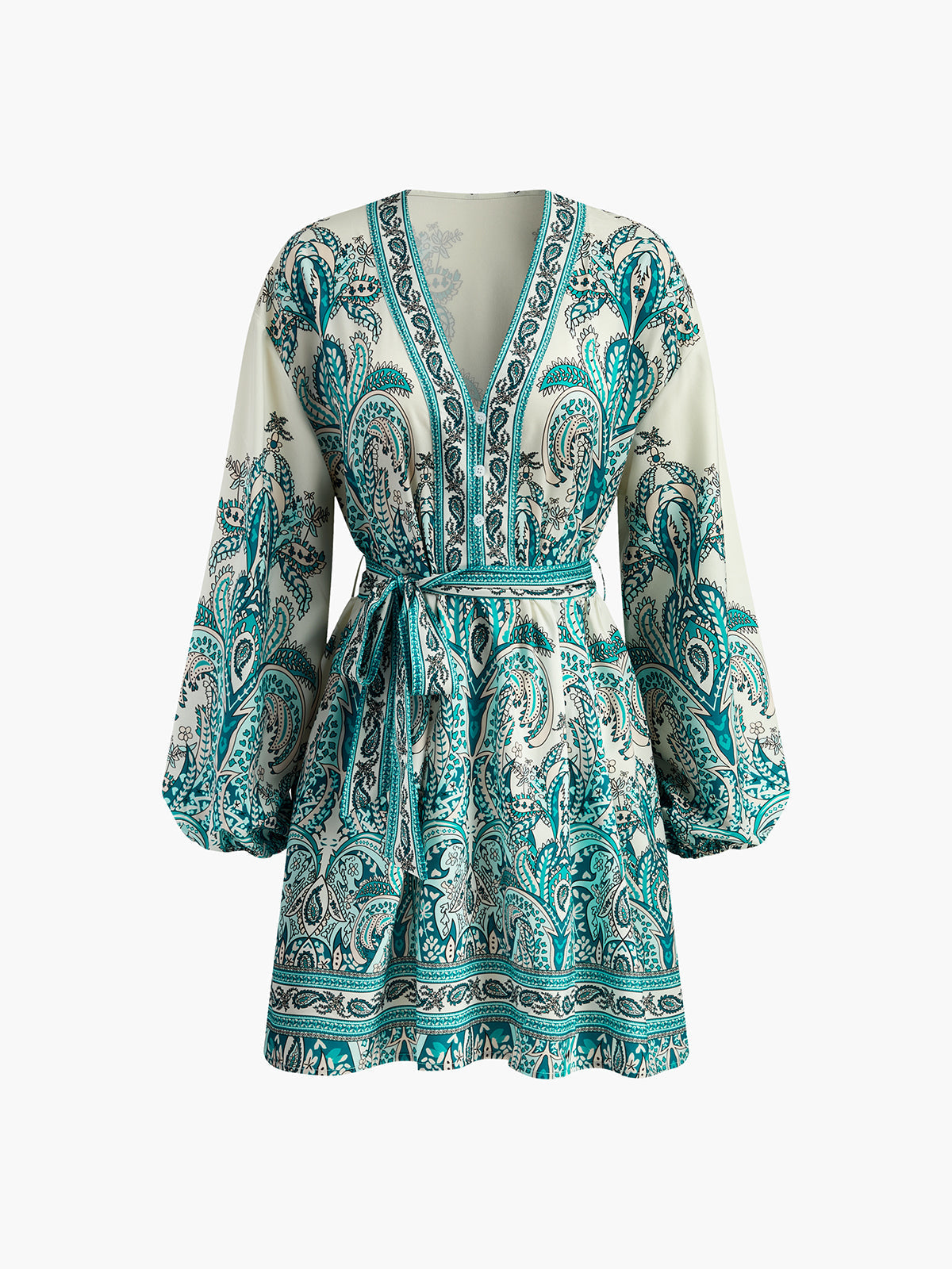 Baskılı Düğmeli V Yaka Uzun Kollu Elbise