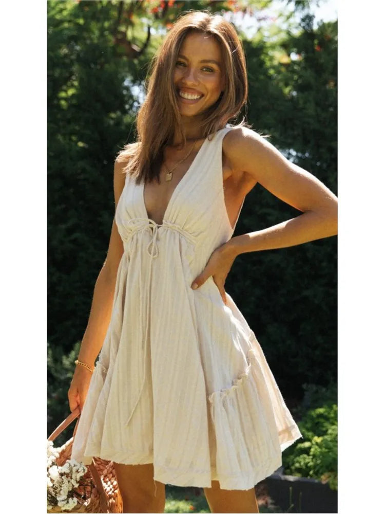 Saf Pamuk Sırtı Açık Kısa Elbise