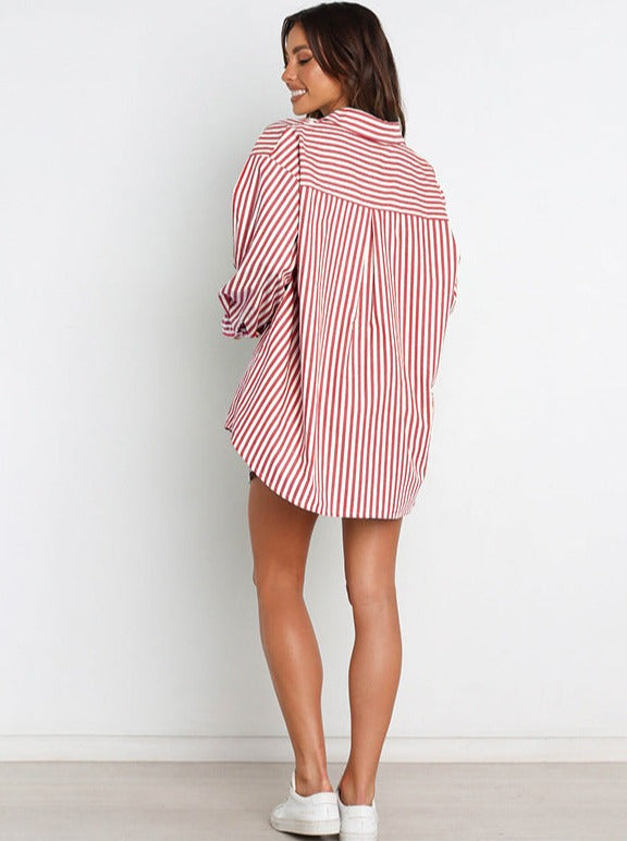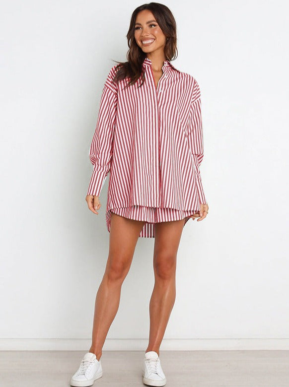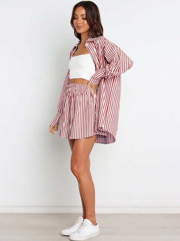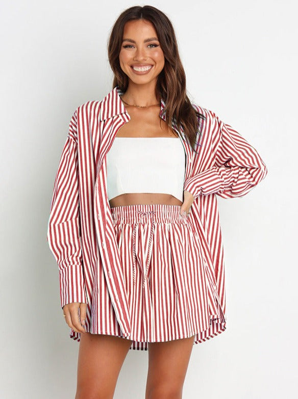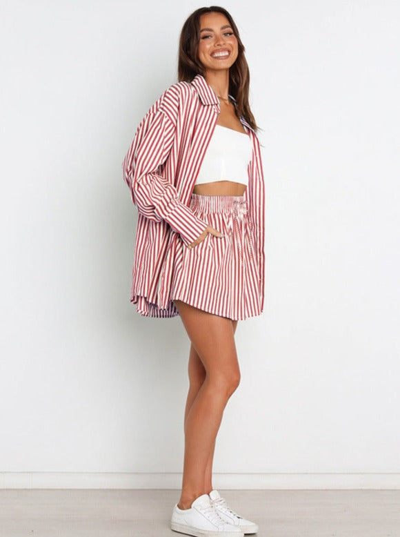 Kırmızı Çizgili Uzun Kollu ve Şortlu Takım