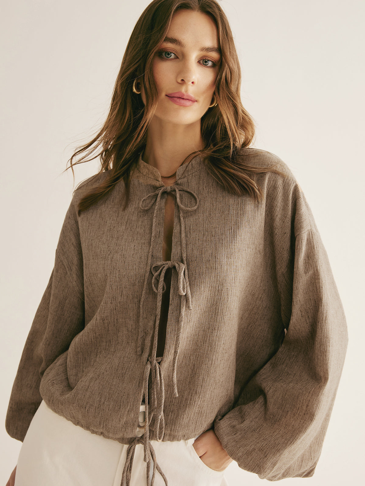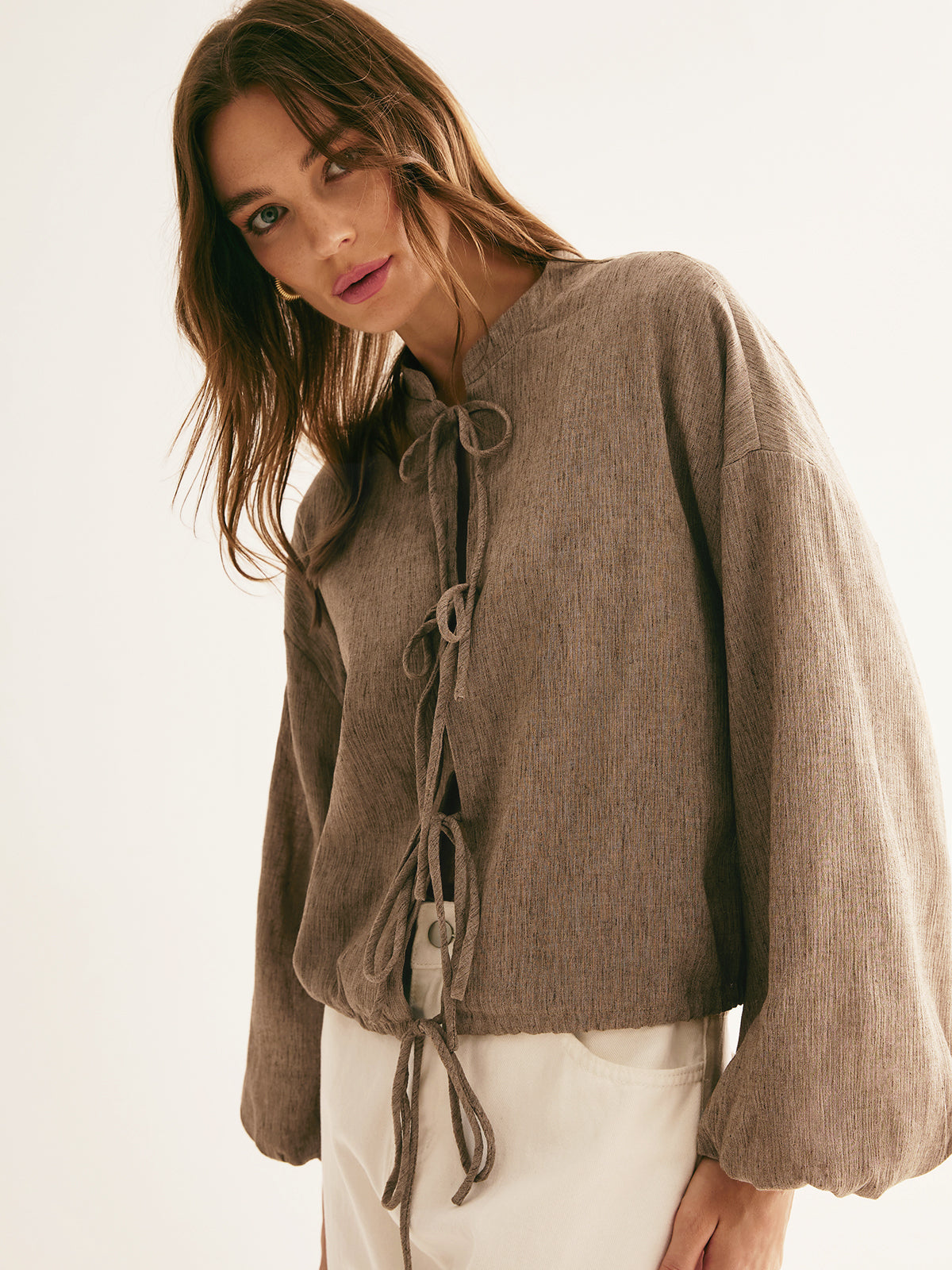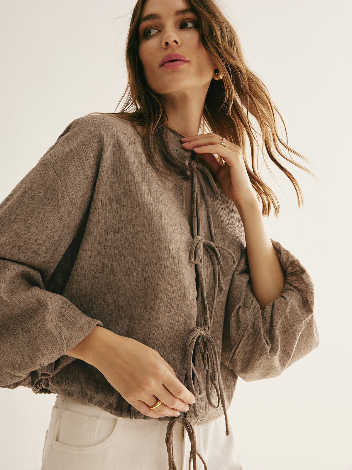 Retro İpli Bağlama Bol Bluz