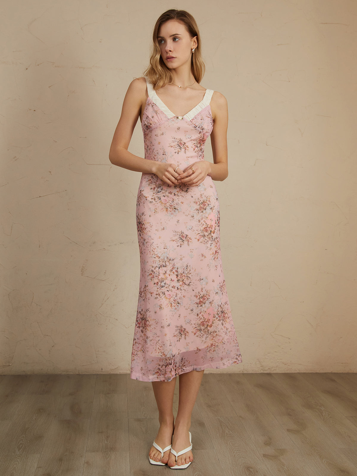 Romantik Çiçek Desenli Midi Elbise