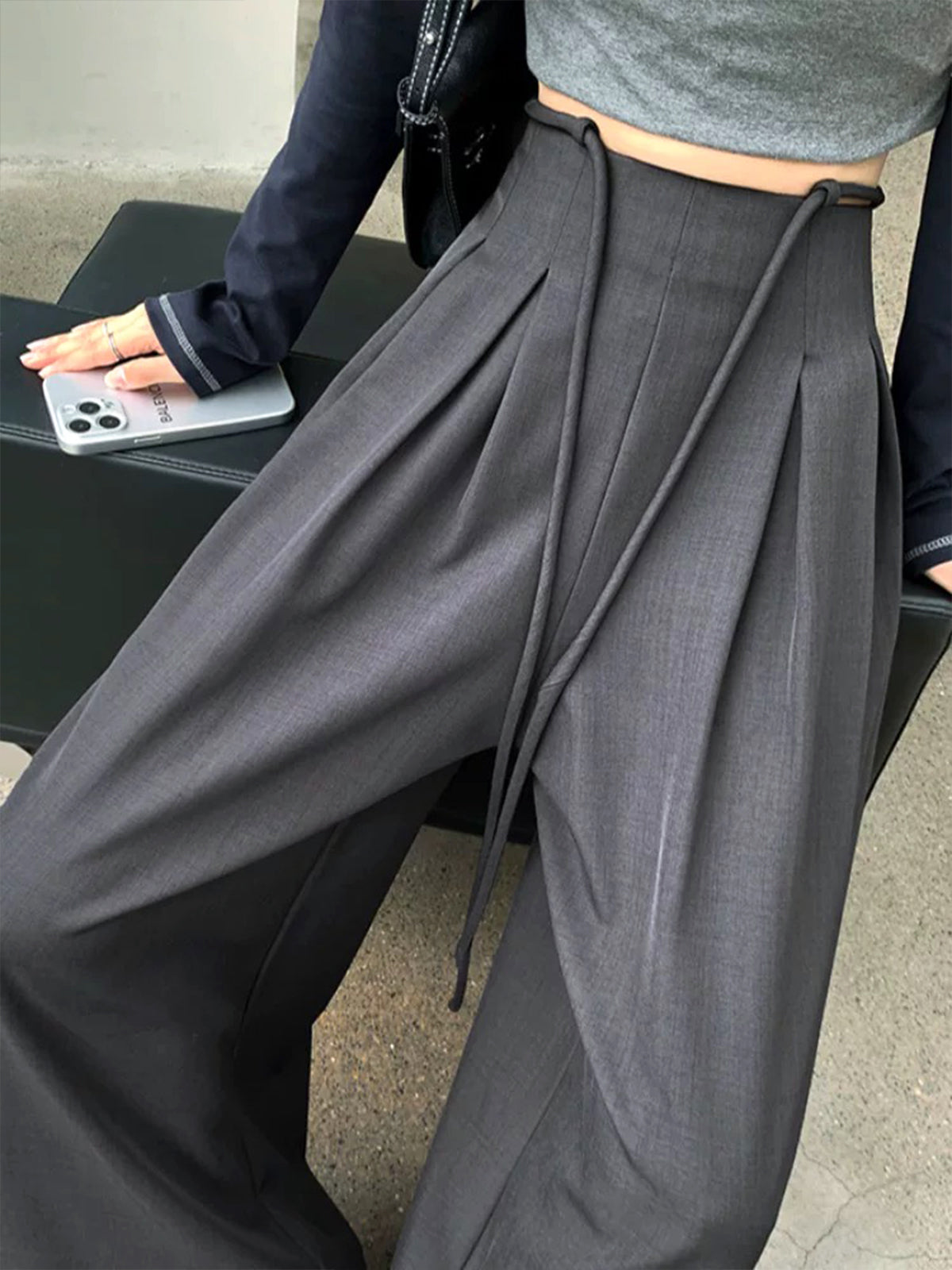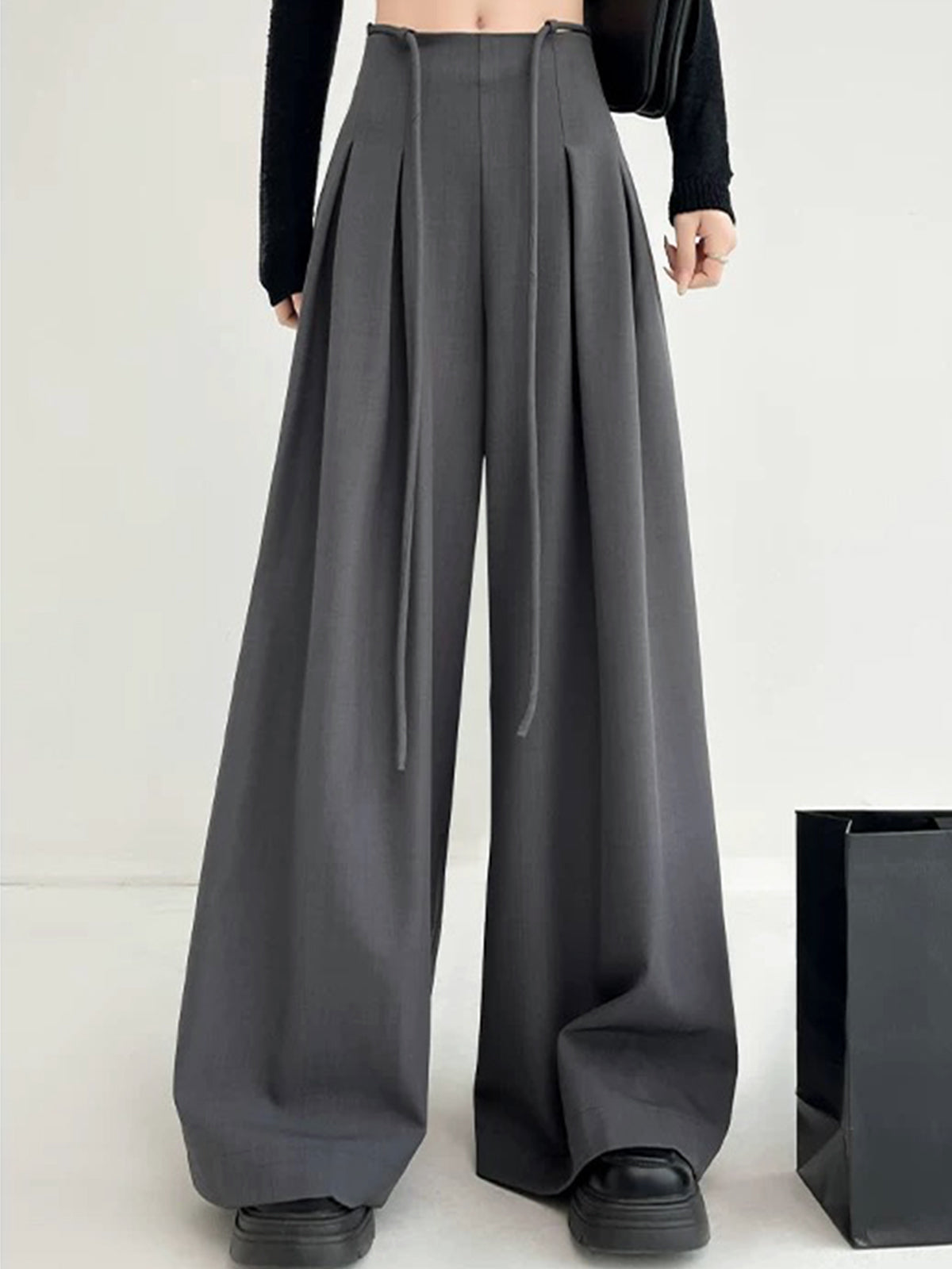 Kordonlu Plise Geniş Paça Pantolon