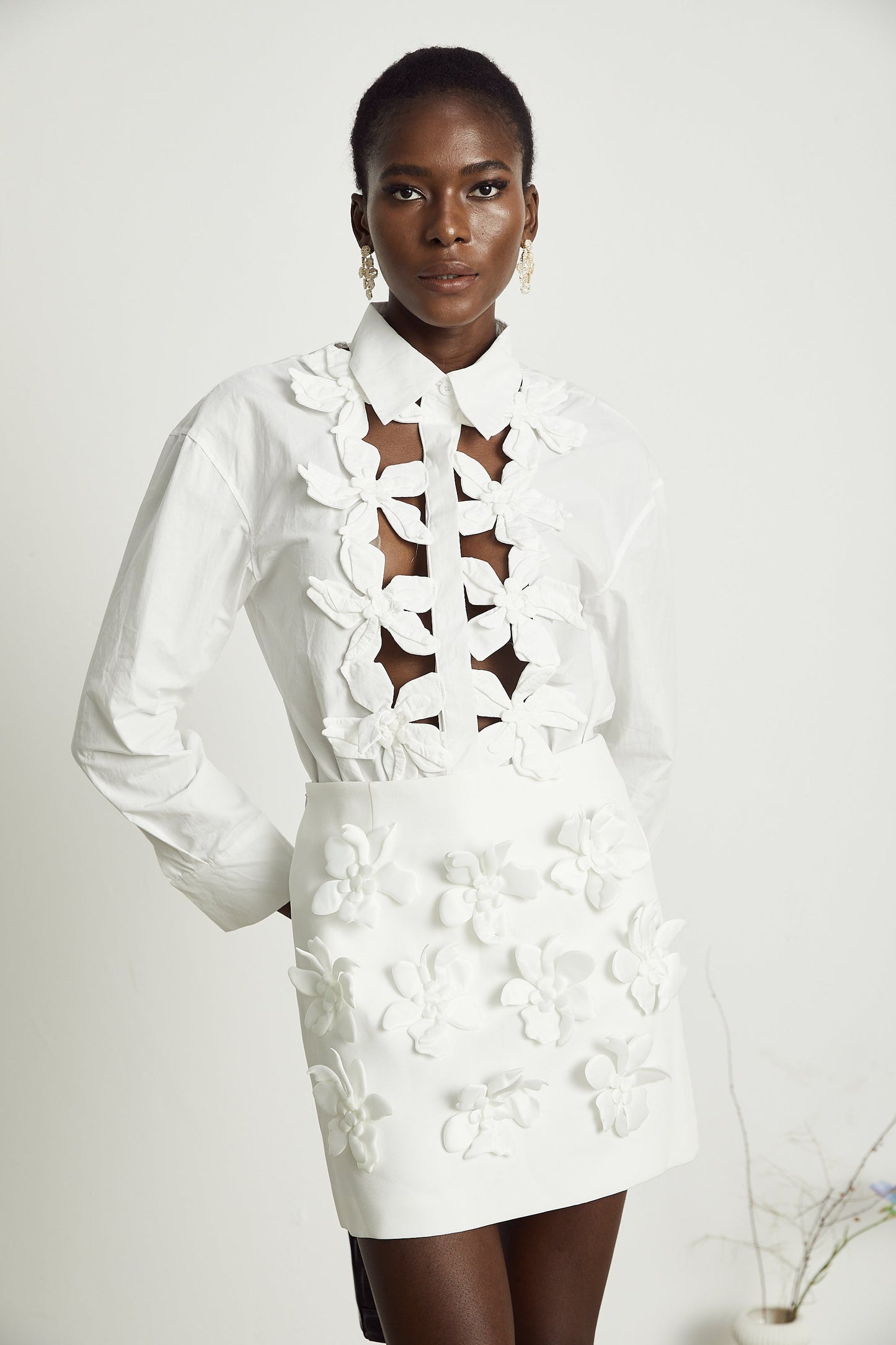 Rosalie Beyaz Çiçekli Kesim Gömlek